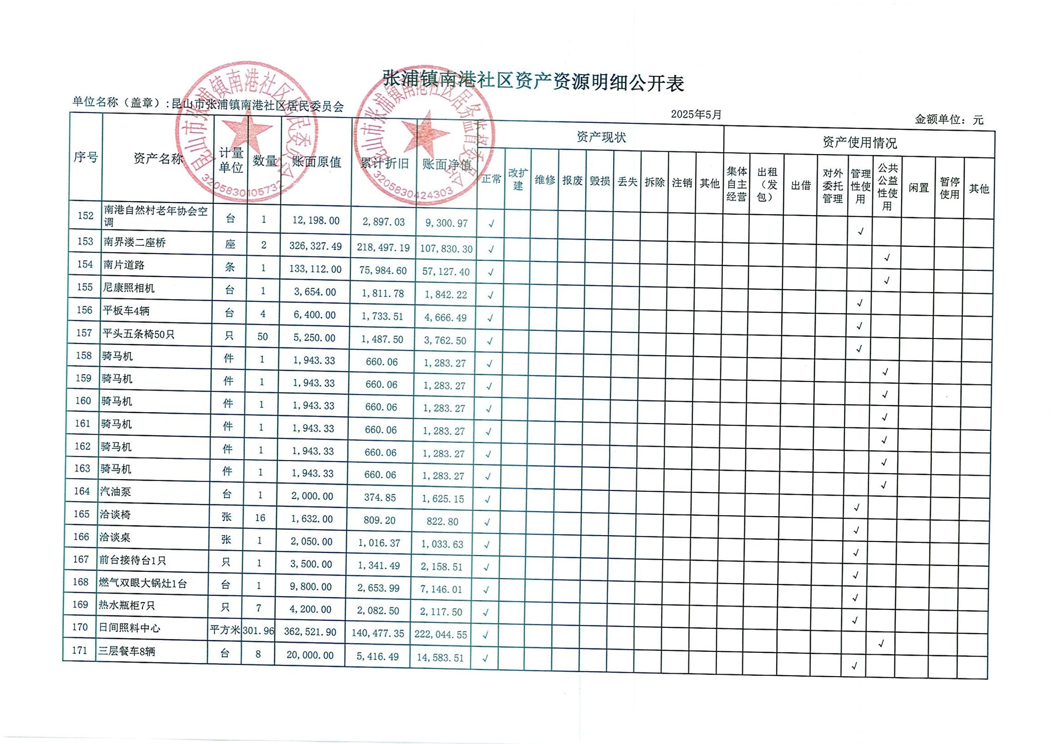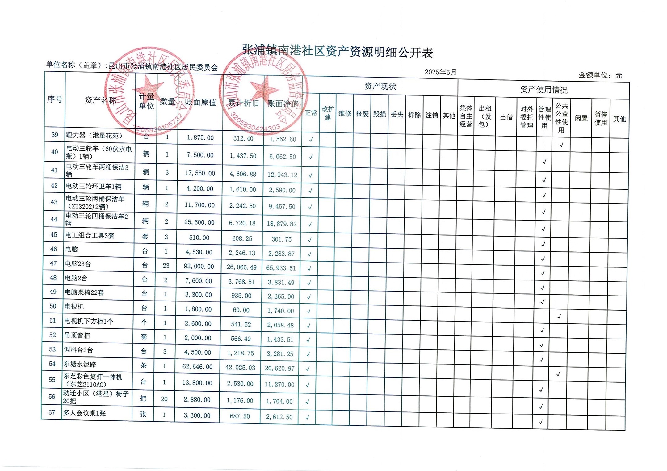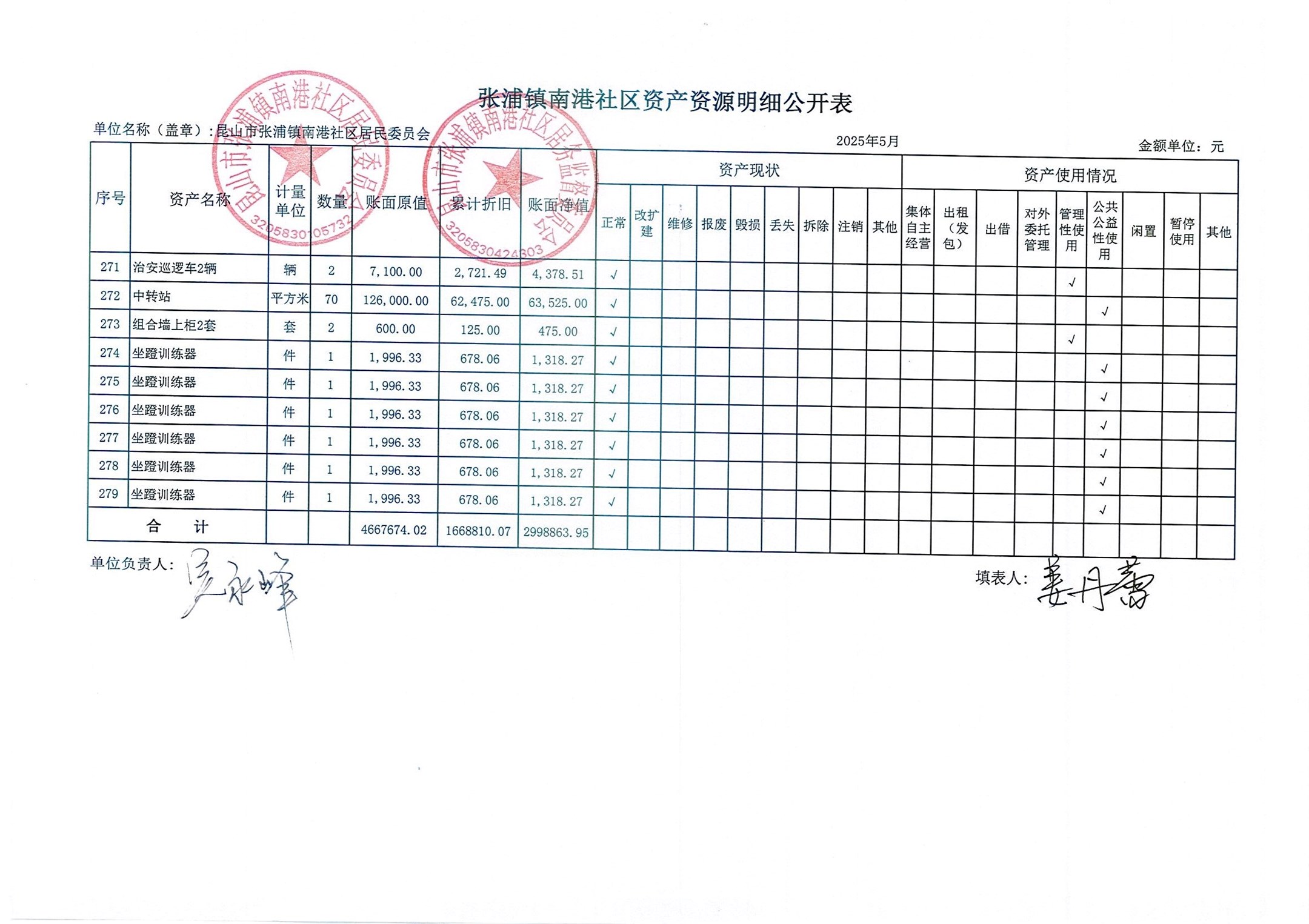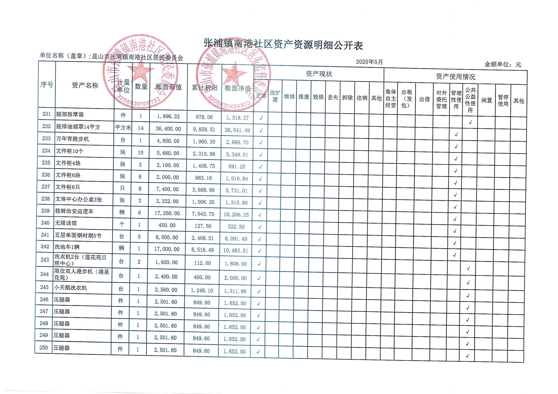 南港社區(qū)居委會2025年5月財務公開(定期公開)