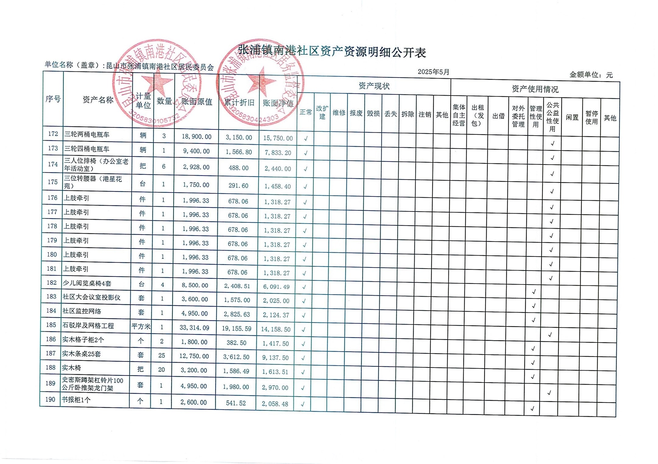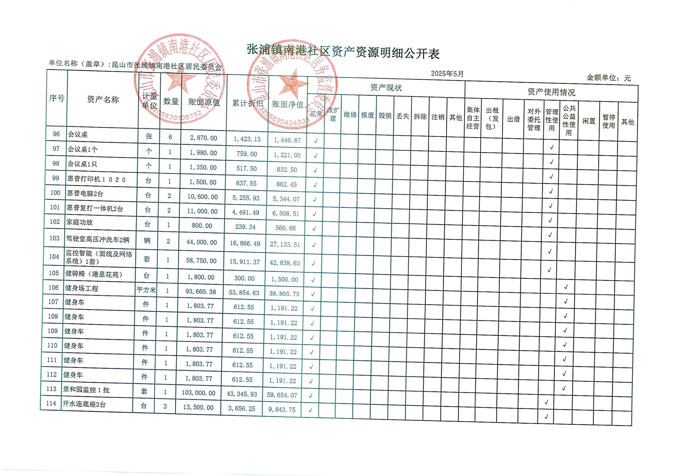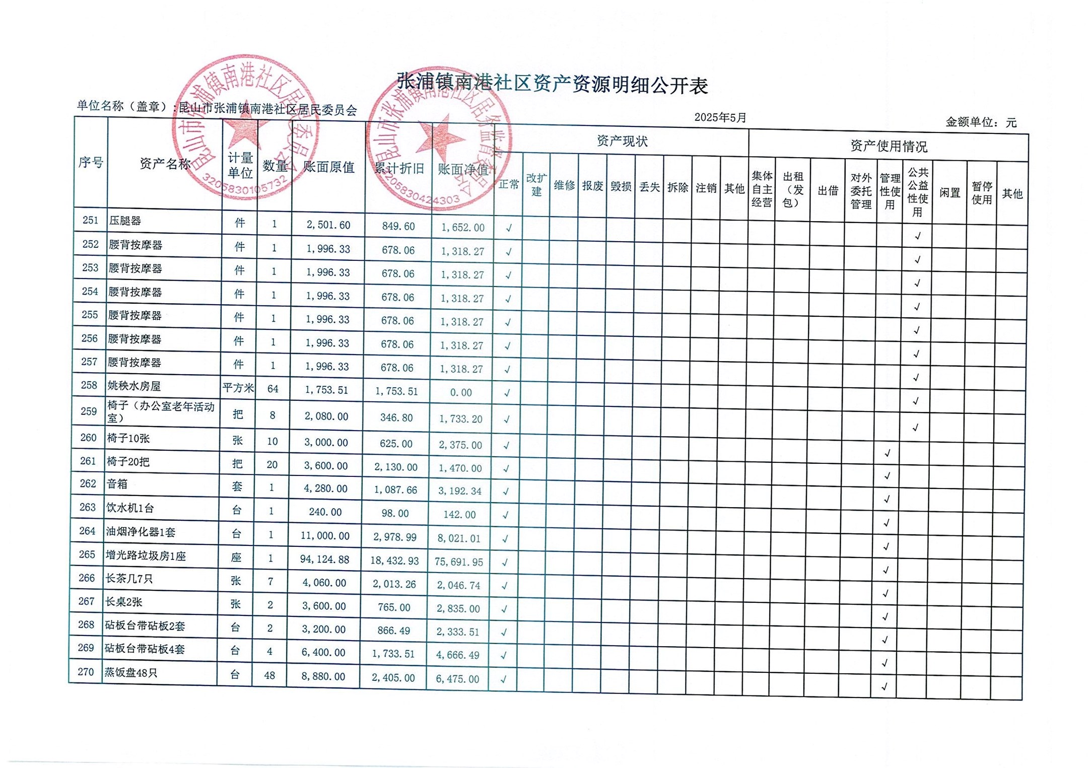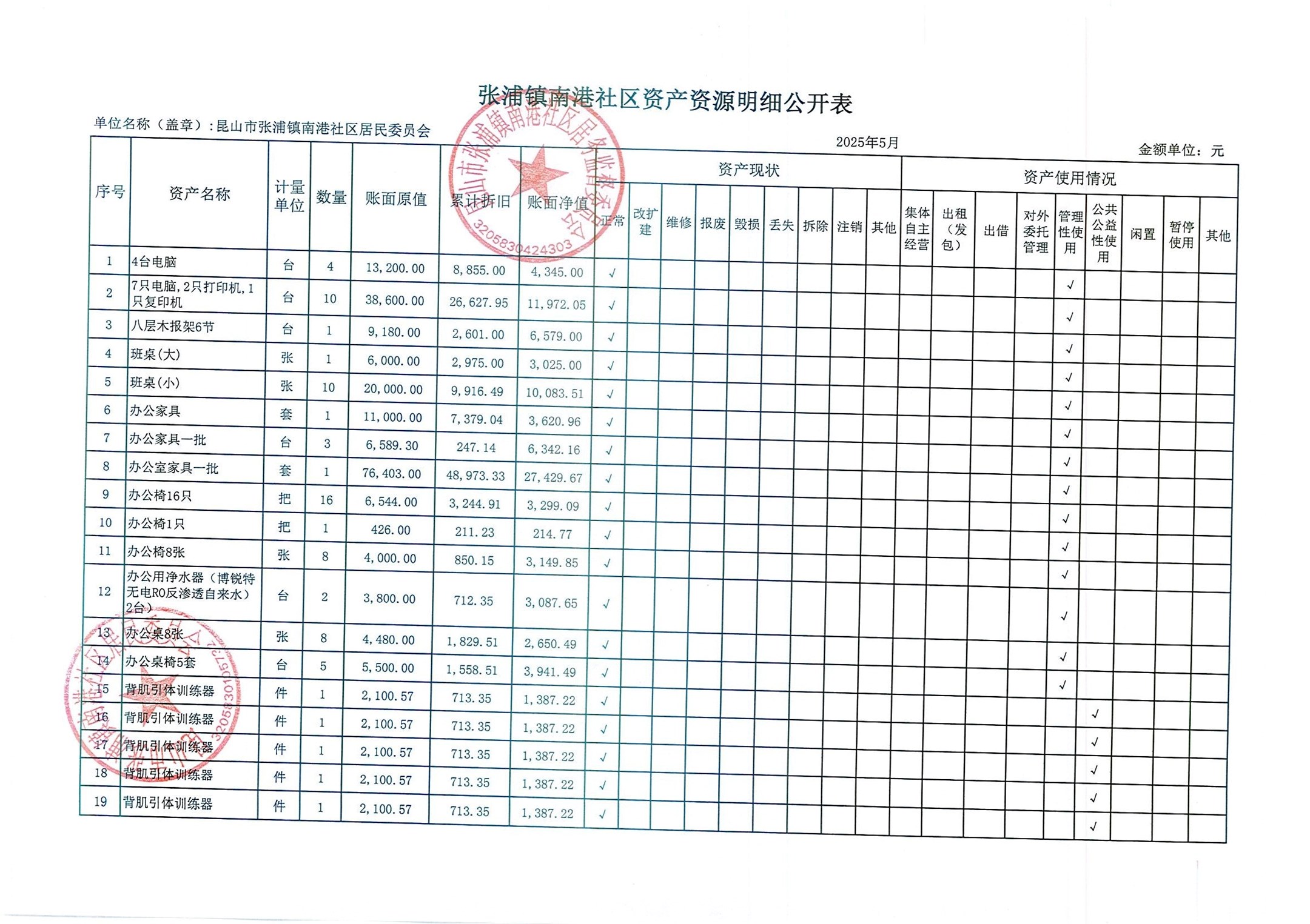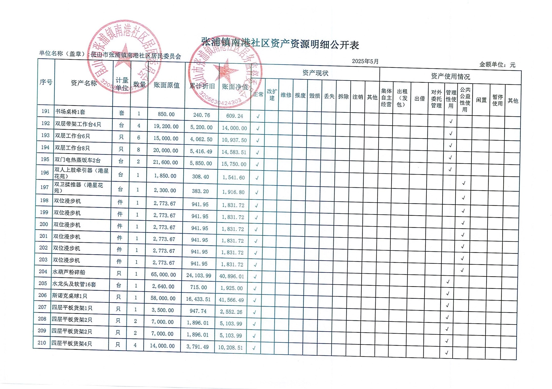 南港社區(qū)居委會2025年5月財務公開(定期公開)