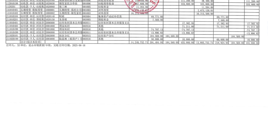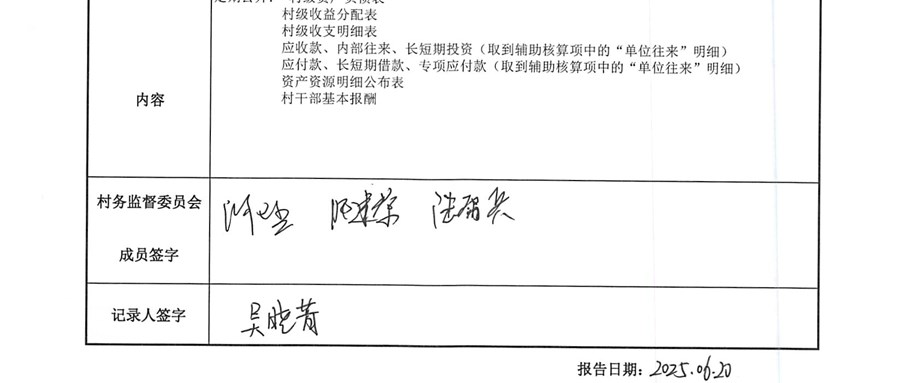 2025年周家浜村股份經(jīng)濟合作社6月份財務(wù)公開