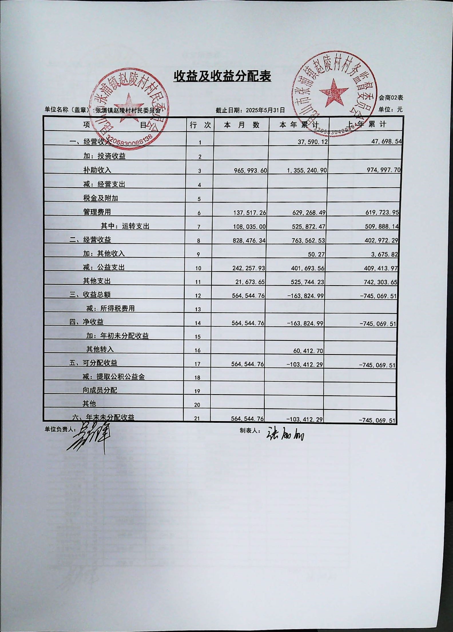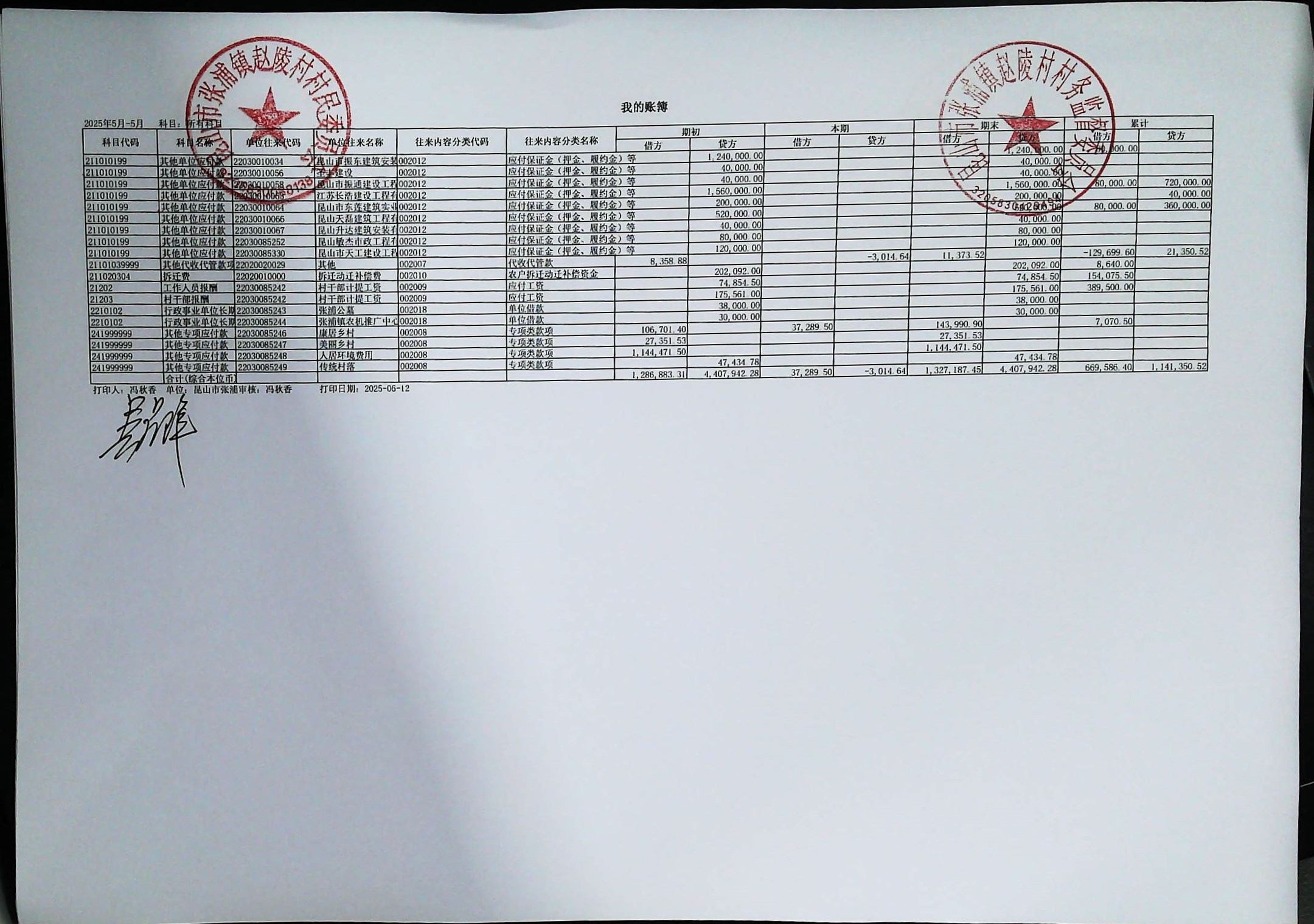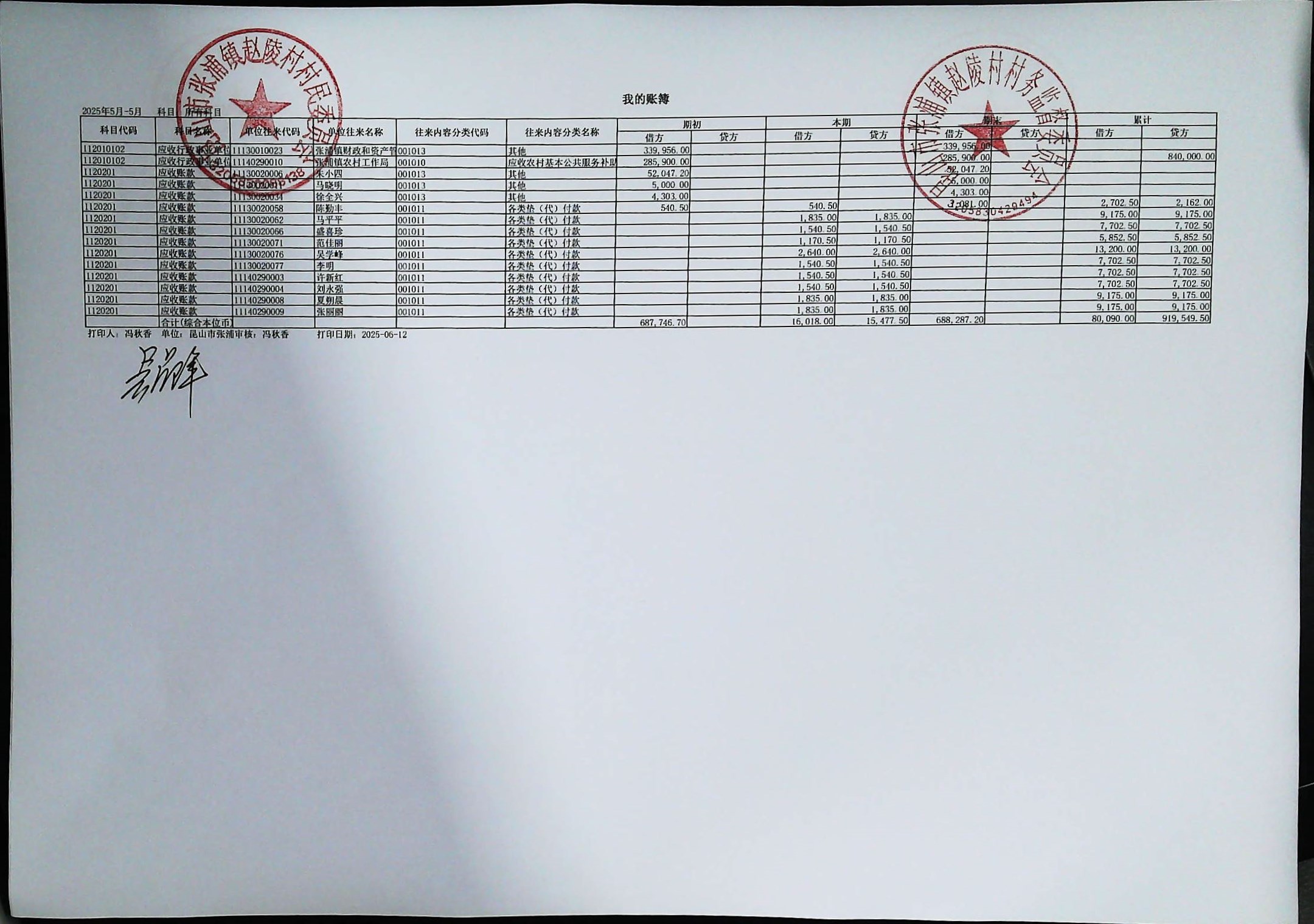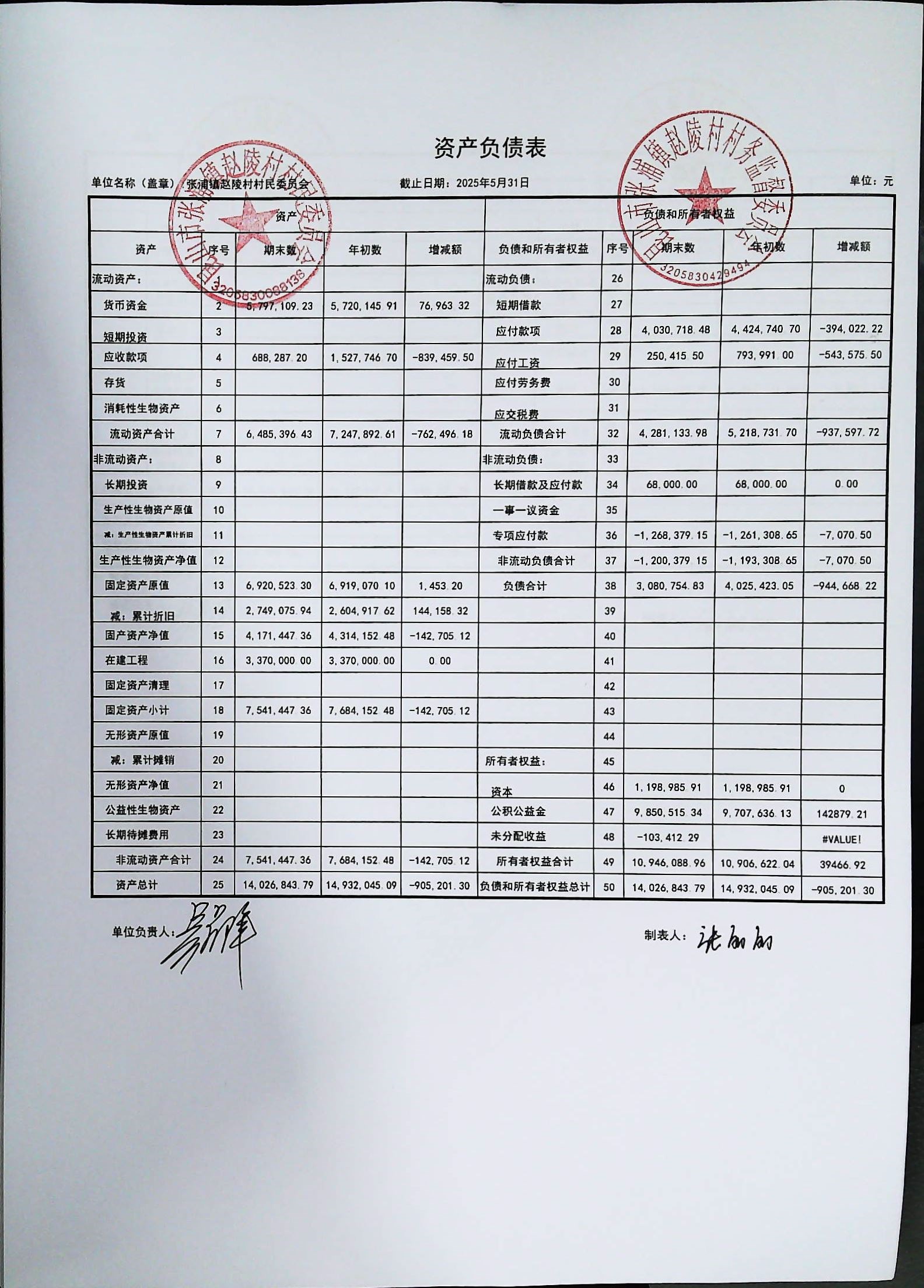 趙陵村2025年度5月份財(cái)務(wù)公開