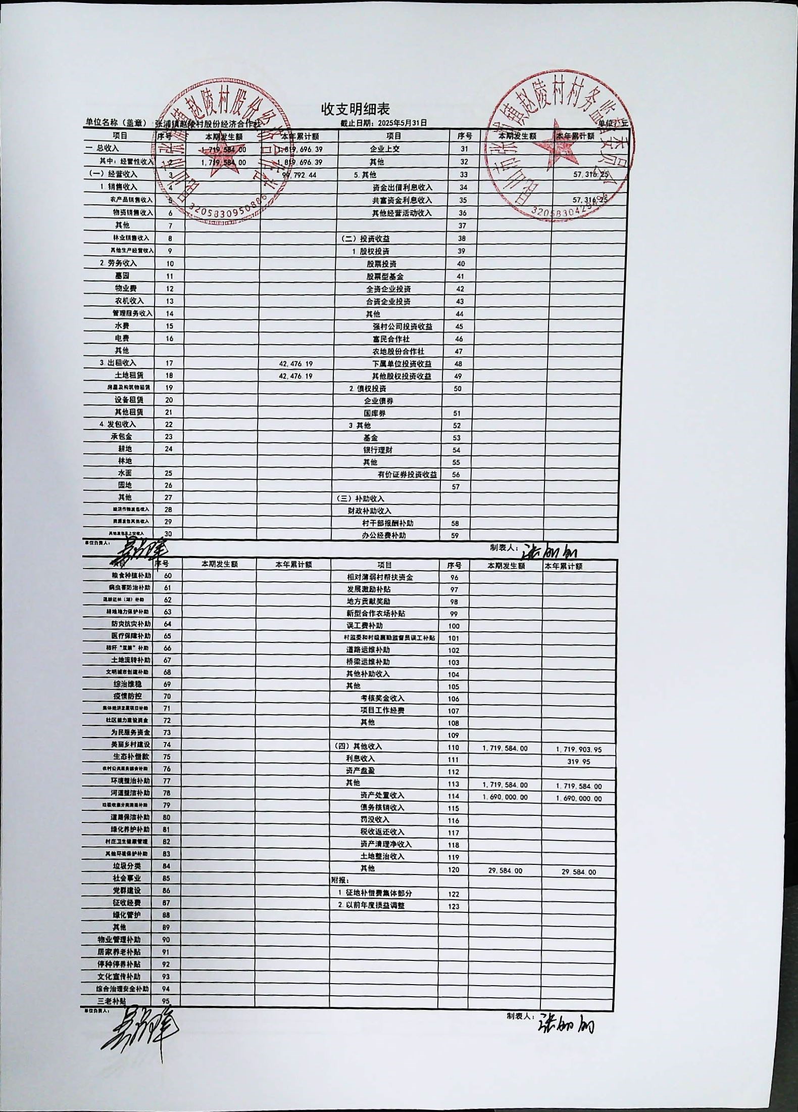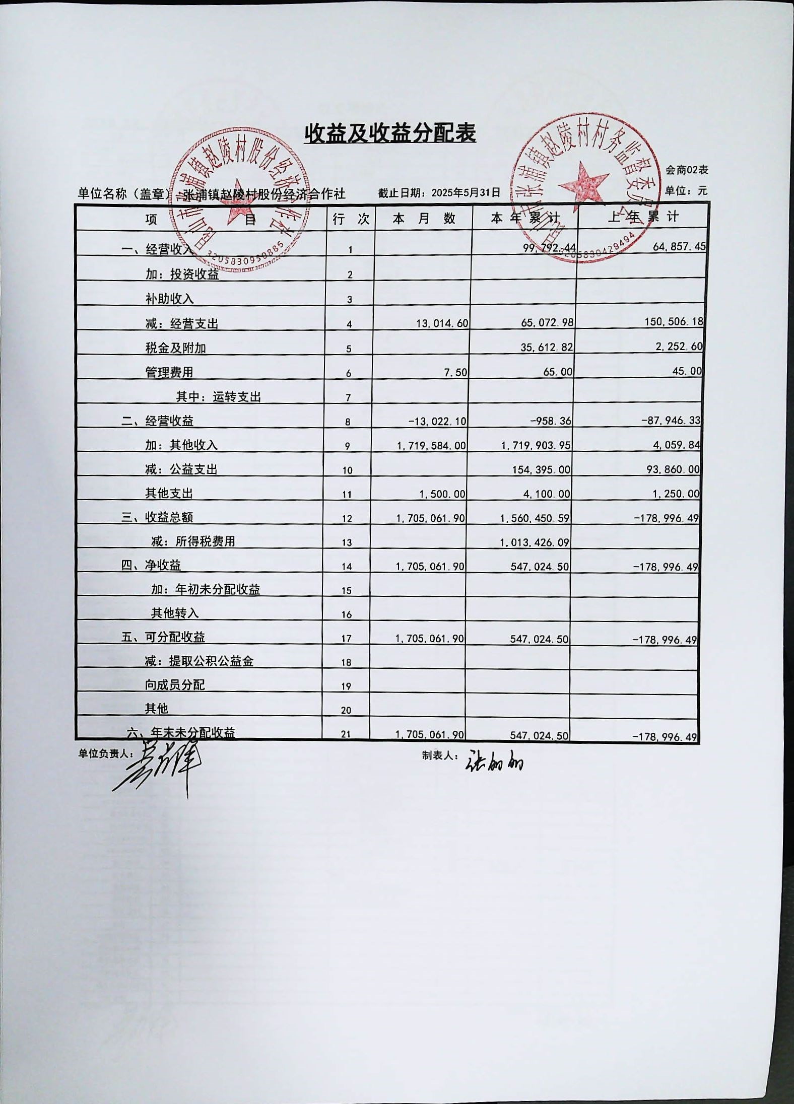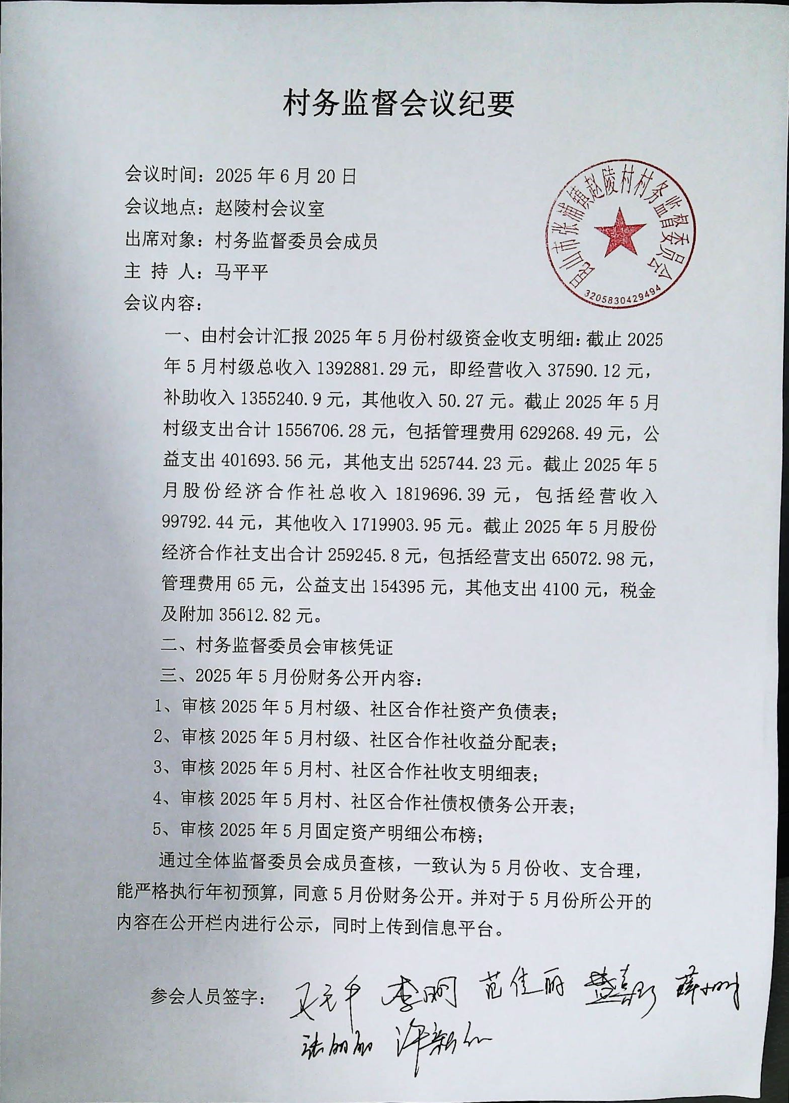 趙陵村2025年度5月份財(cái)務(wù)公開