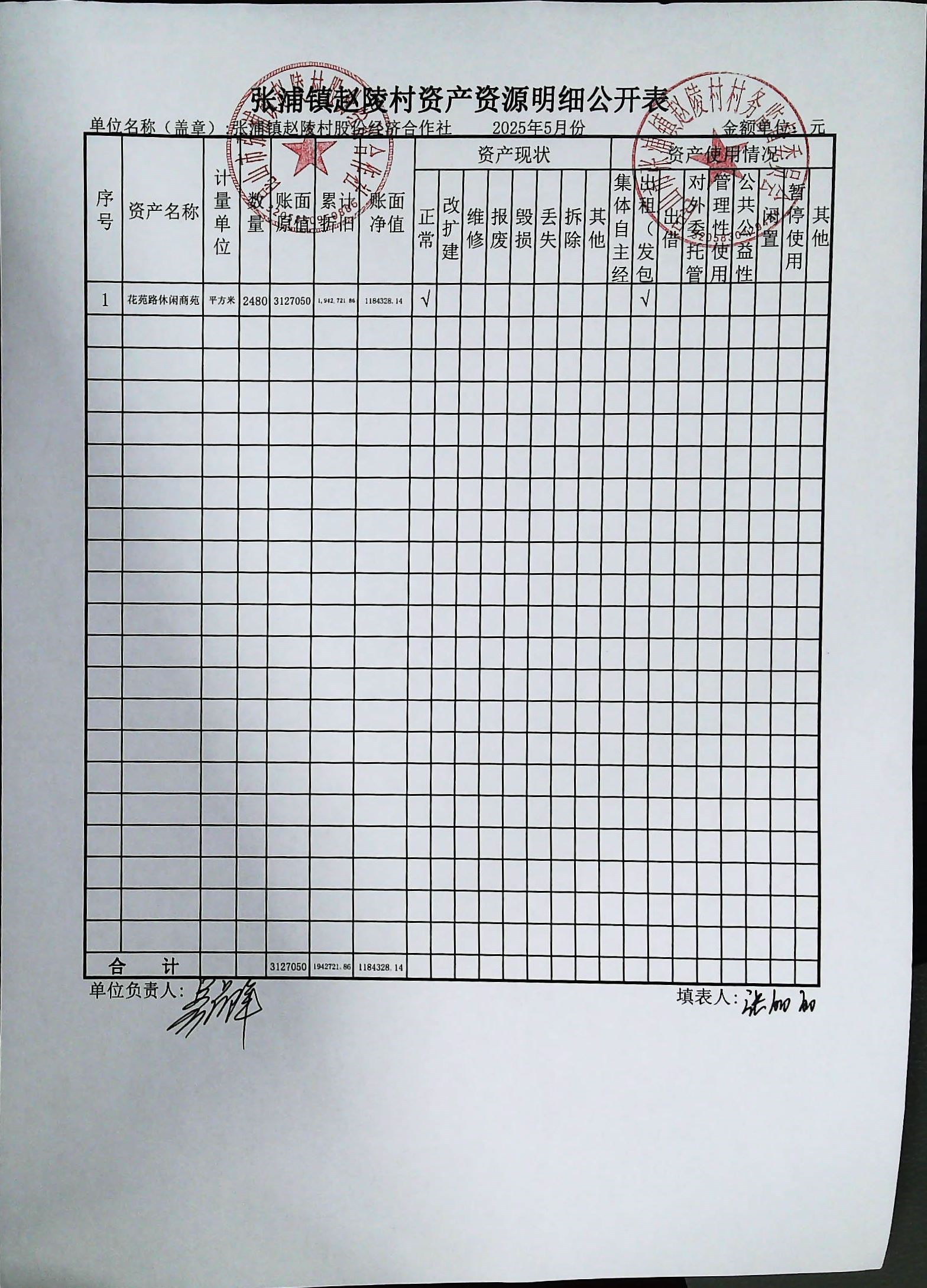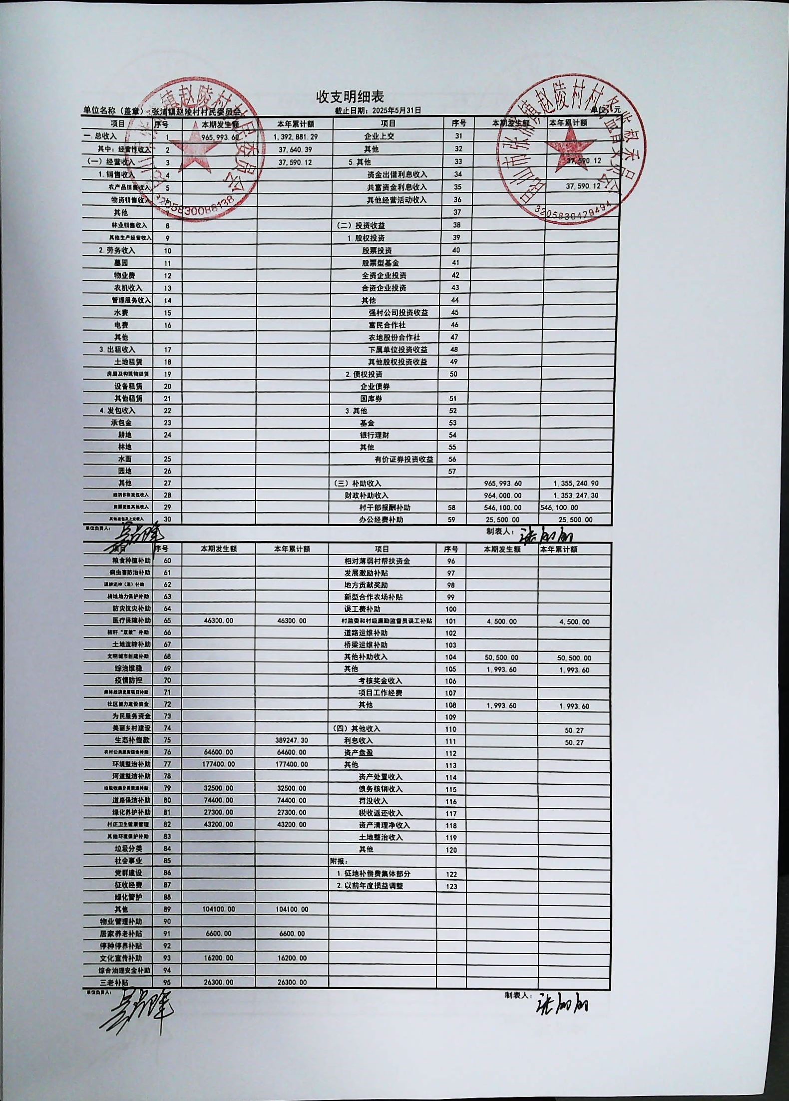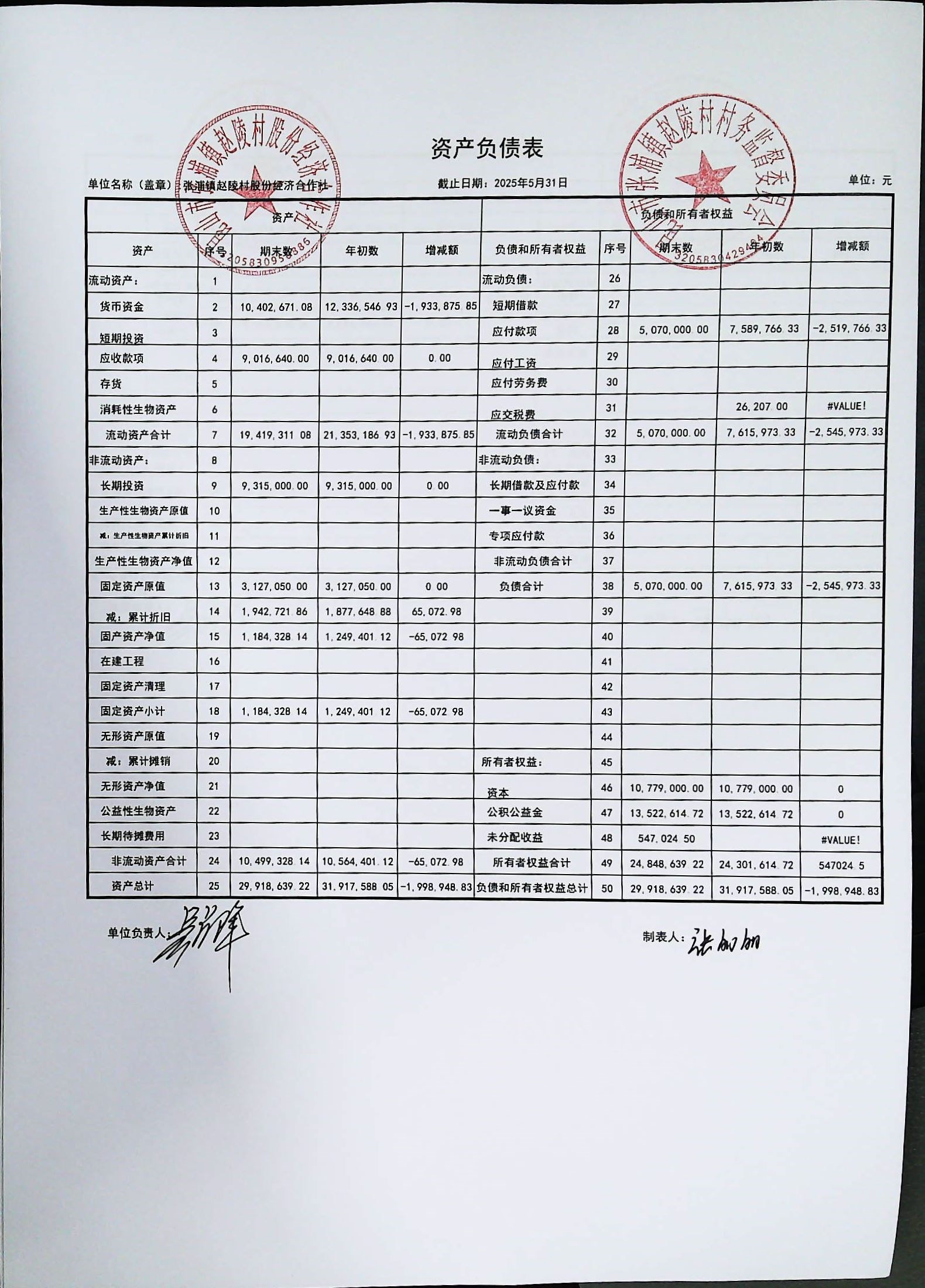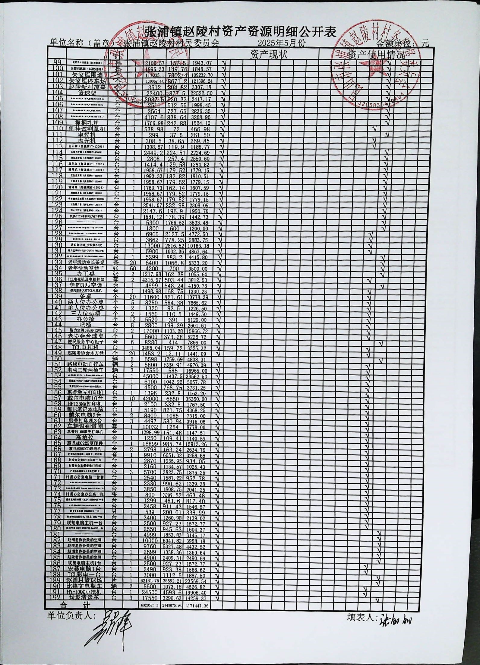 趙陵村2025年度5月份財(cái)務(wù)公開