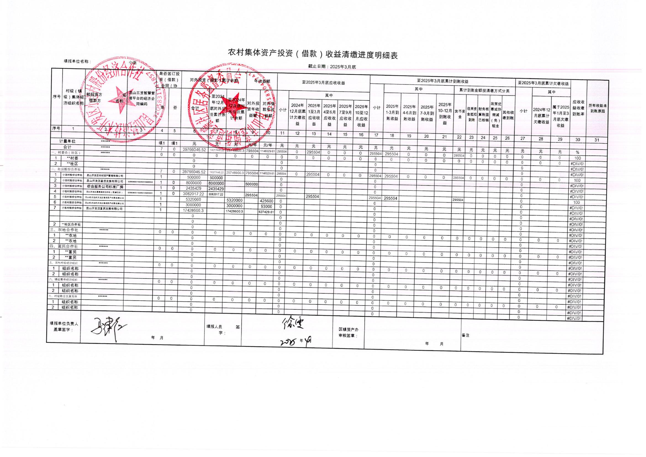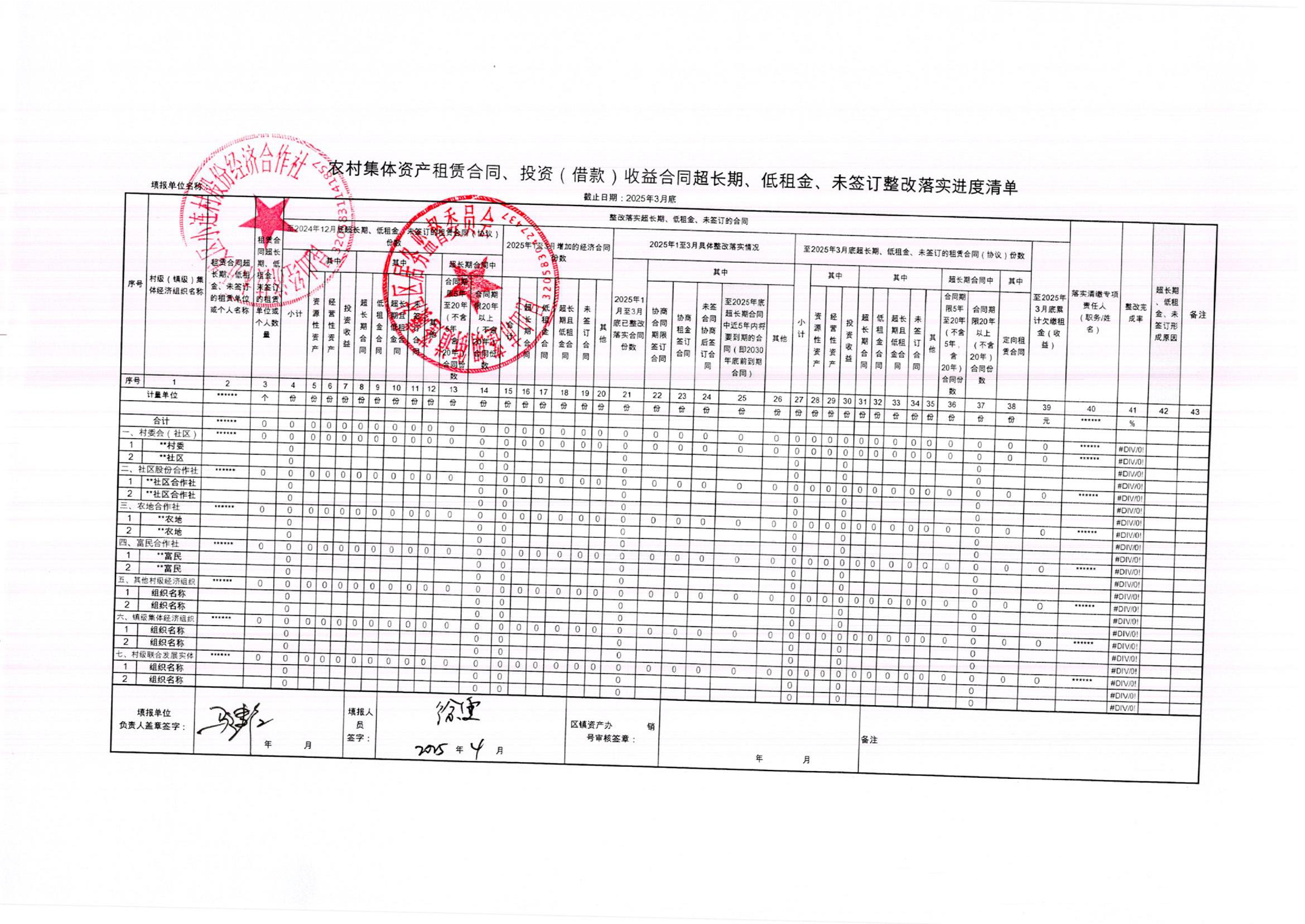 2025年1季度農村集體資產經濟合同收繳進度調查表