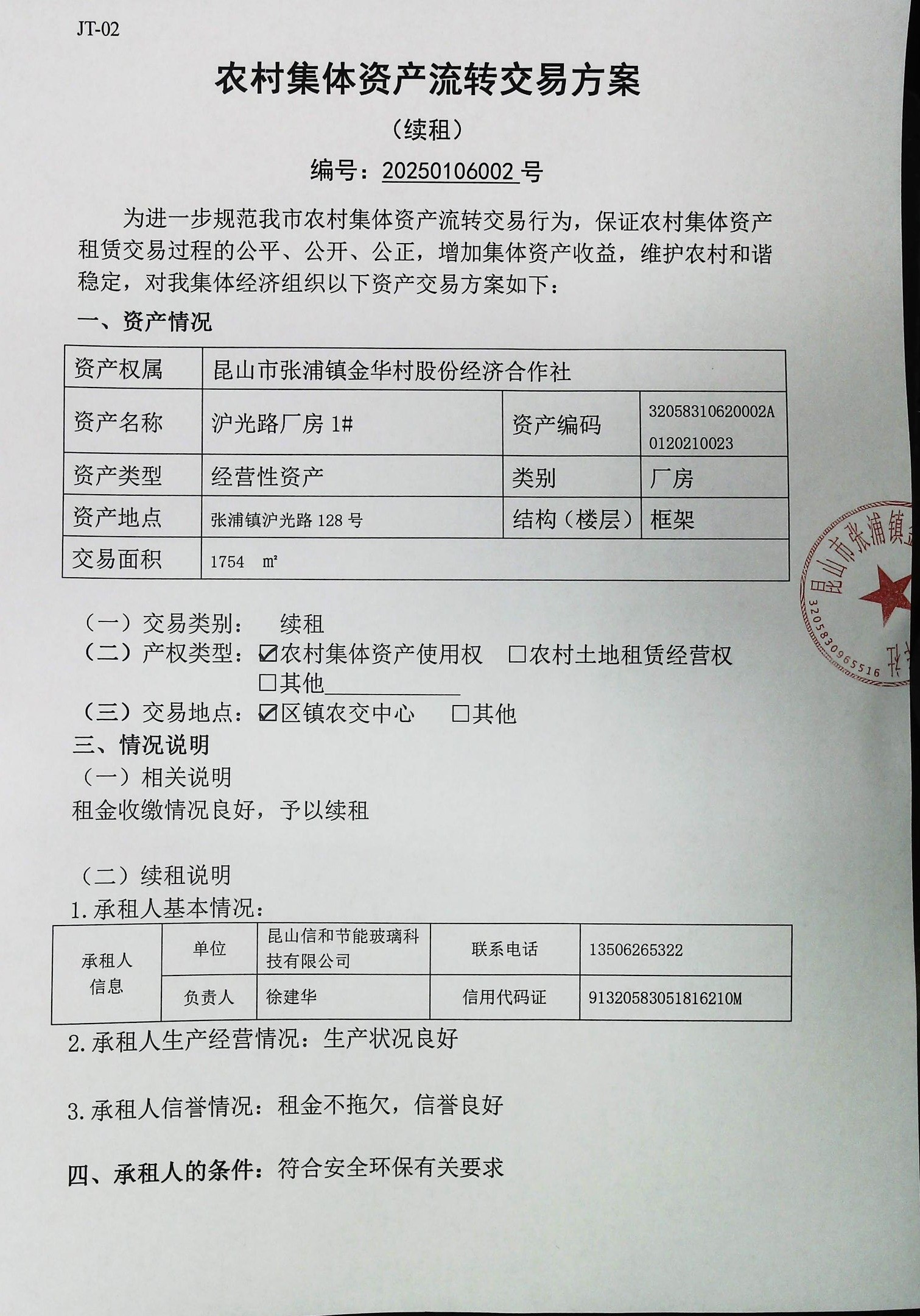 滬光路廠房1#續(xù)租(昆山信和節(jié)能玻璃科技有限公司)