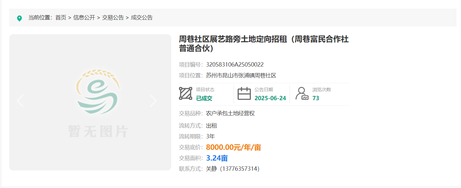 周巷社區(qū)展藝路旁土地定向招租結果公示