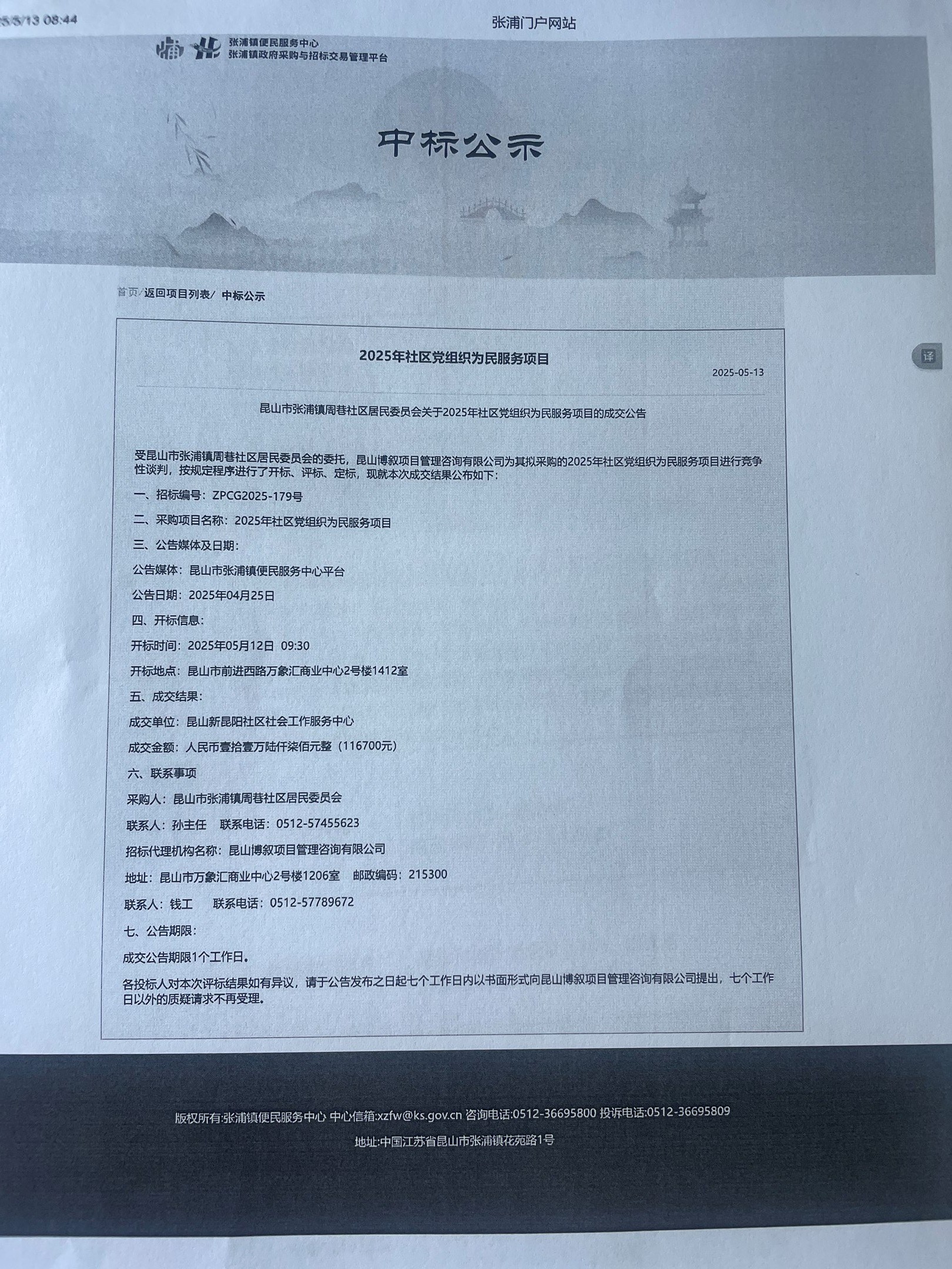 2025年周巷 社區(qū)黨組織為民服務(wù)項(xiàng)目成交公告