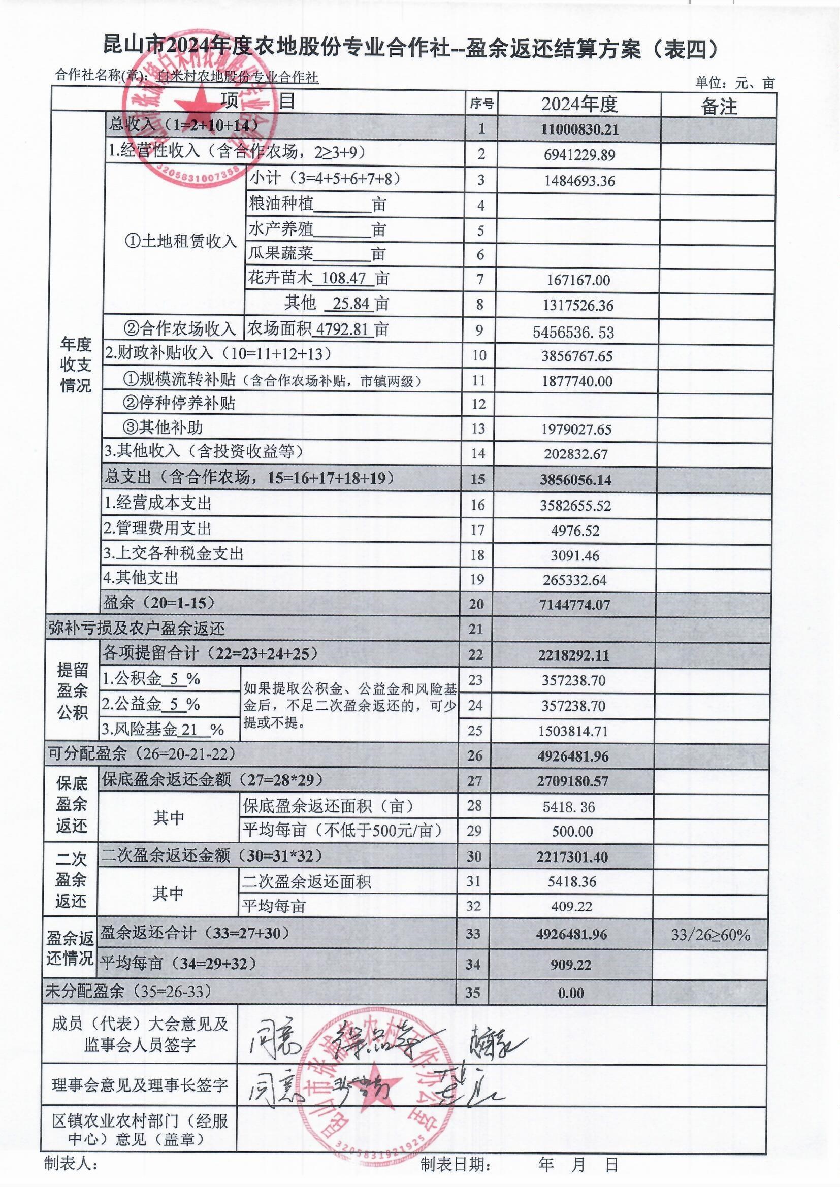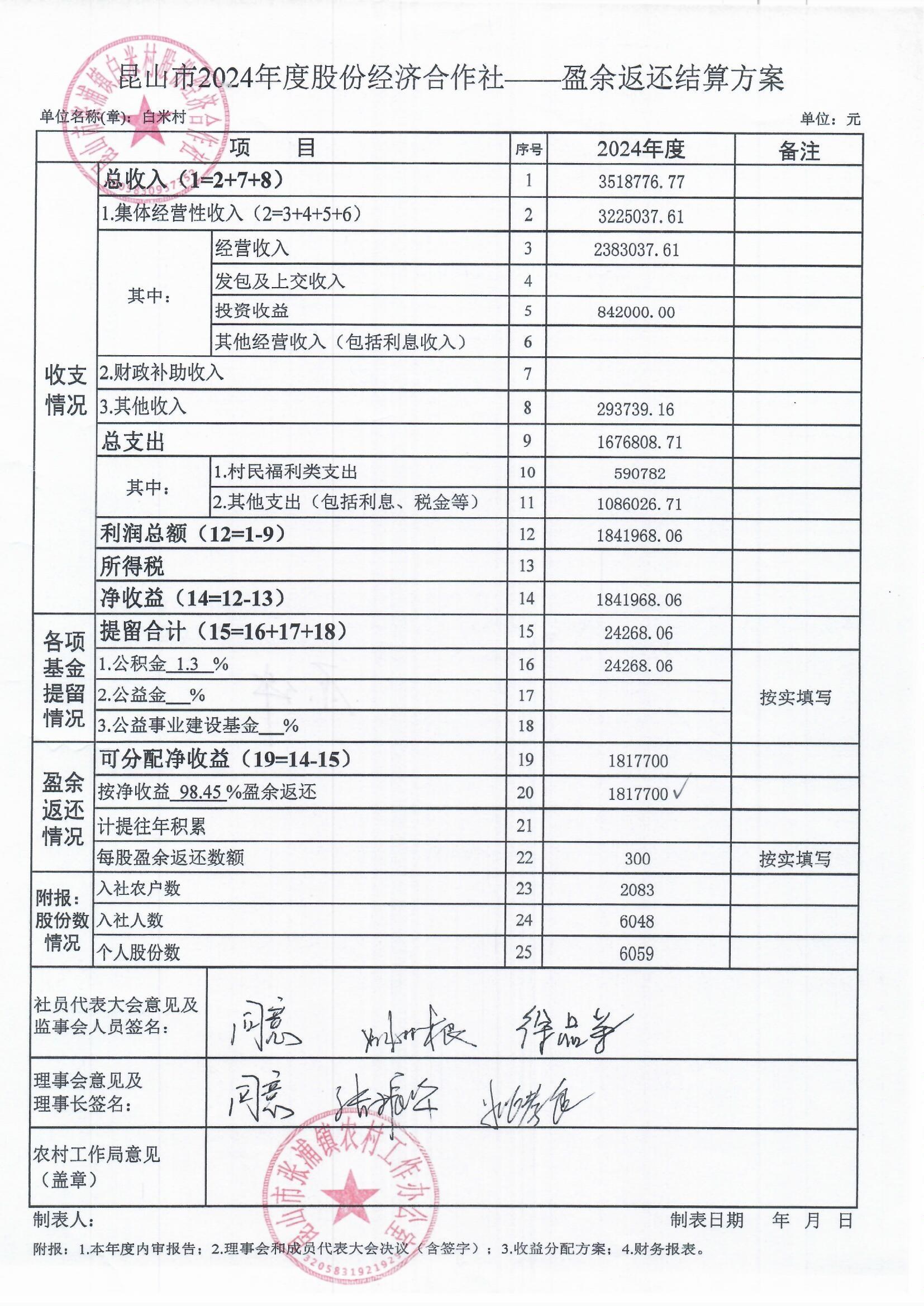 2024年白米村股份經(jīng)濟(jì)合作社和農(nóng)地專業(yè)合作社盈余返還結(jié)算方案