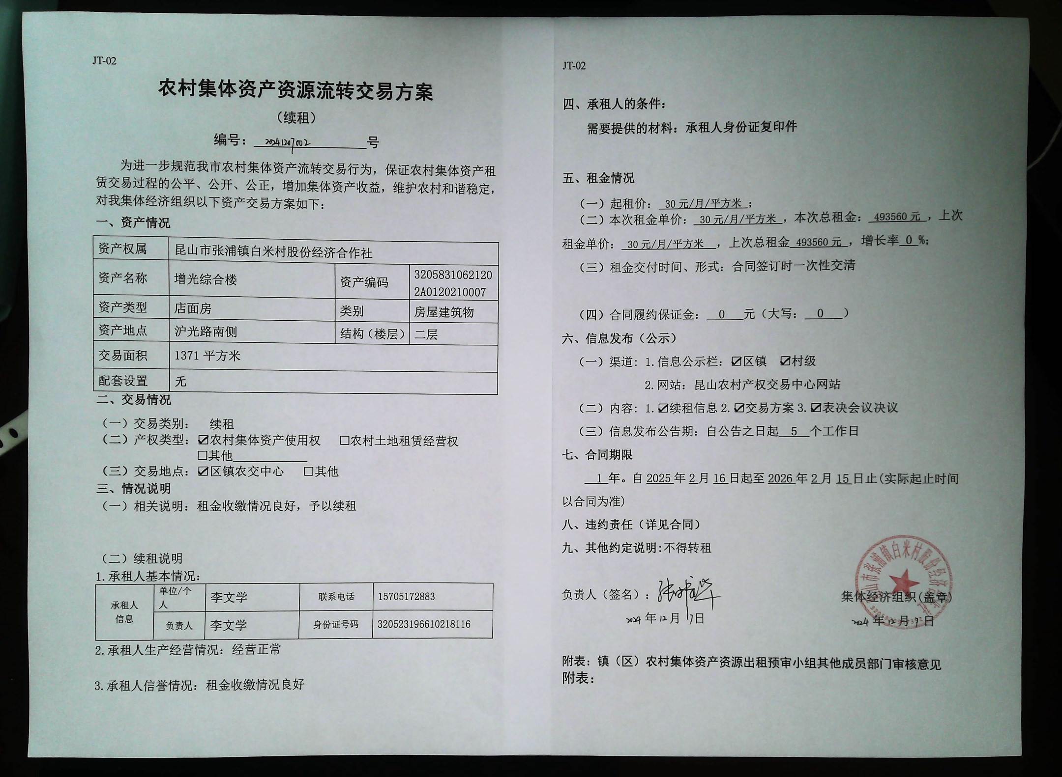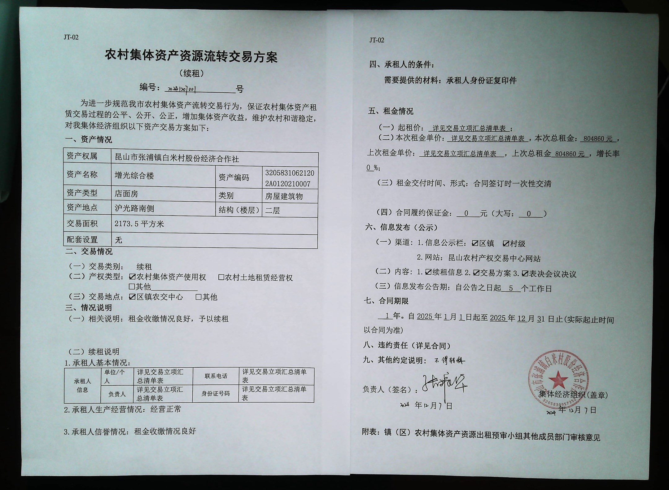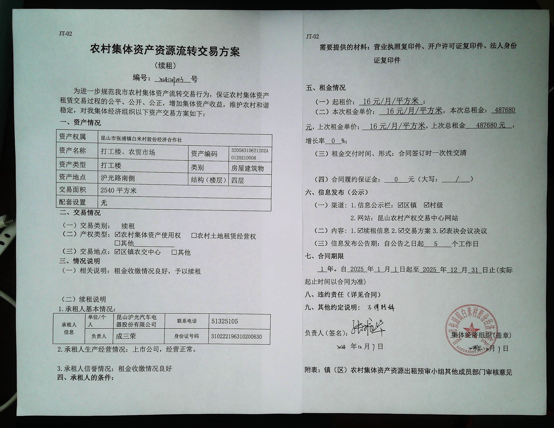 白米村股份2025年增光綜合樓續(xù)租等產(chǎn)權(quán)交易項目公示
