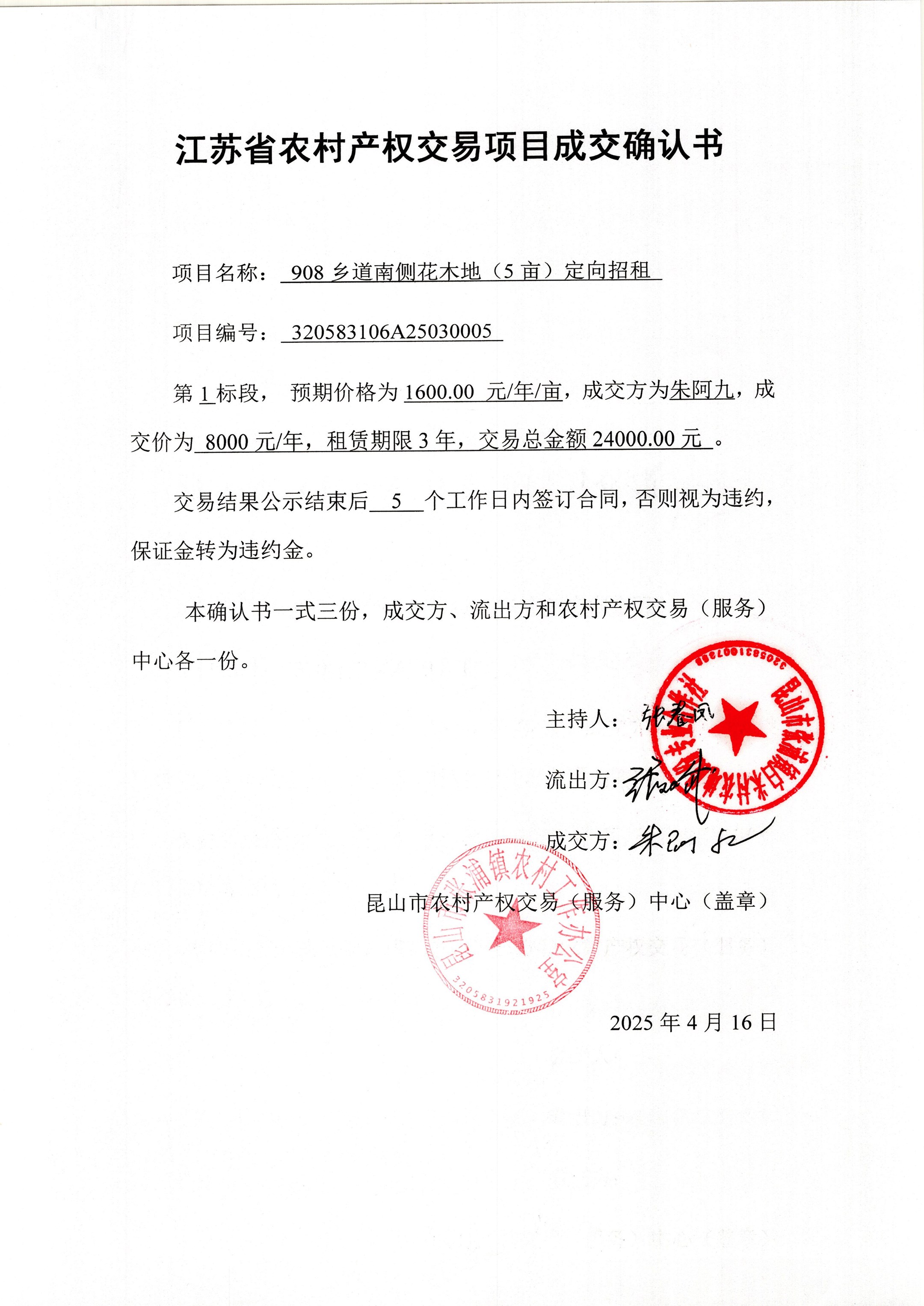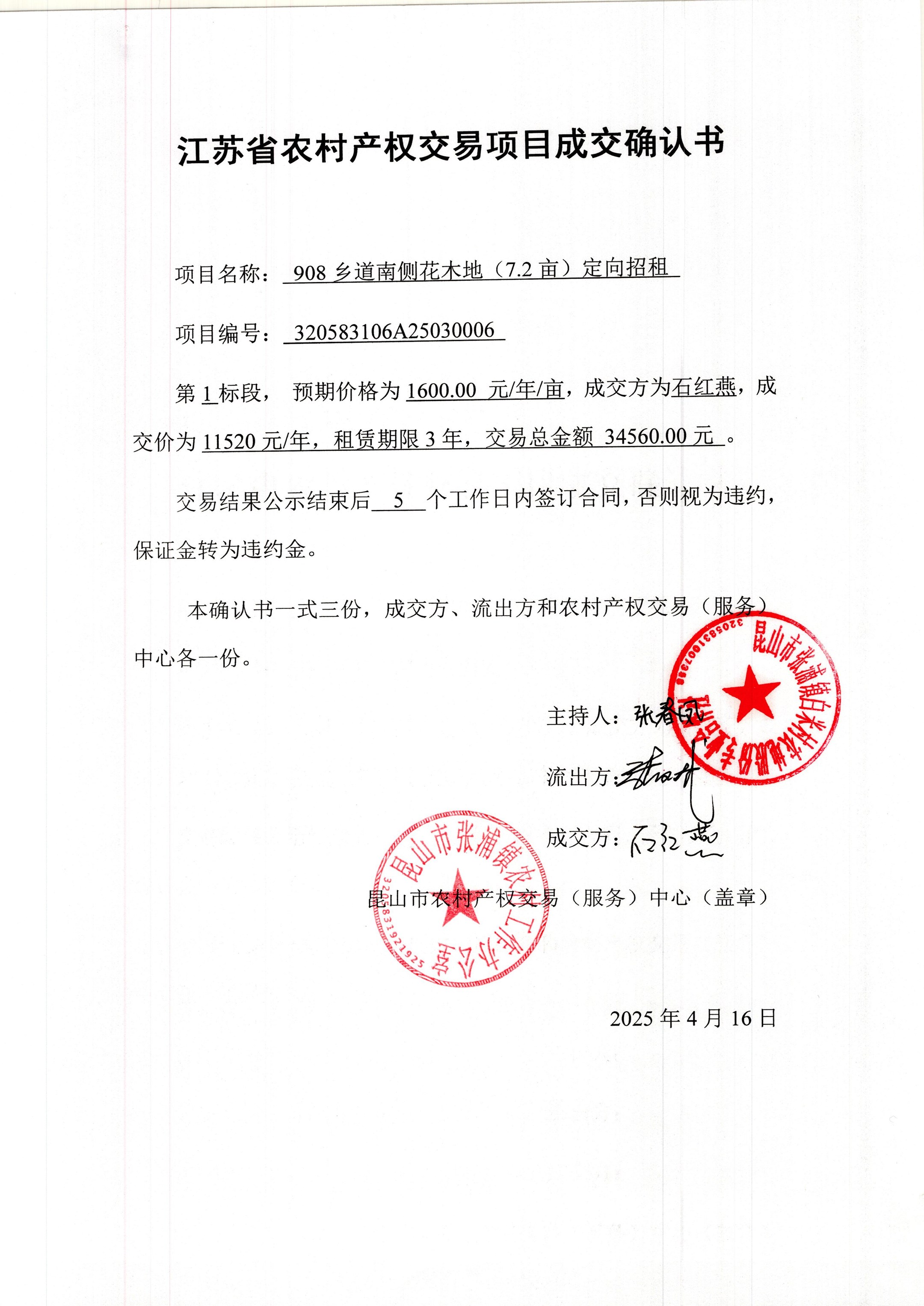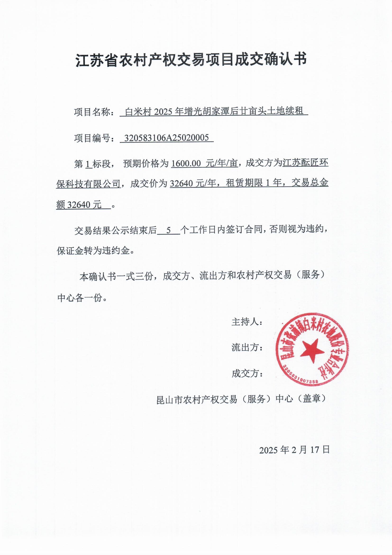 白米村農(nóng)地2025年胡家潭后土地續(xù)租等項目成交公示