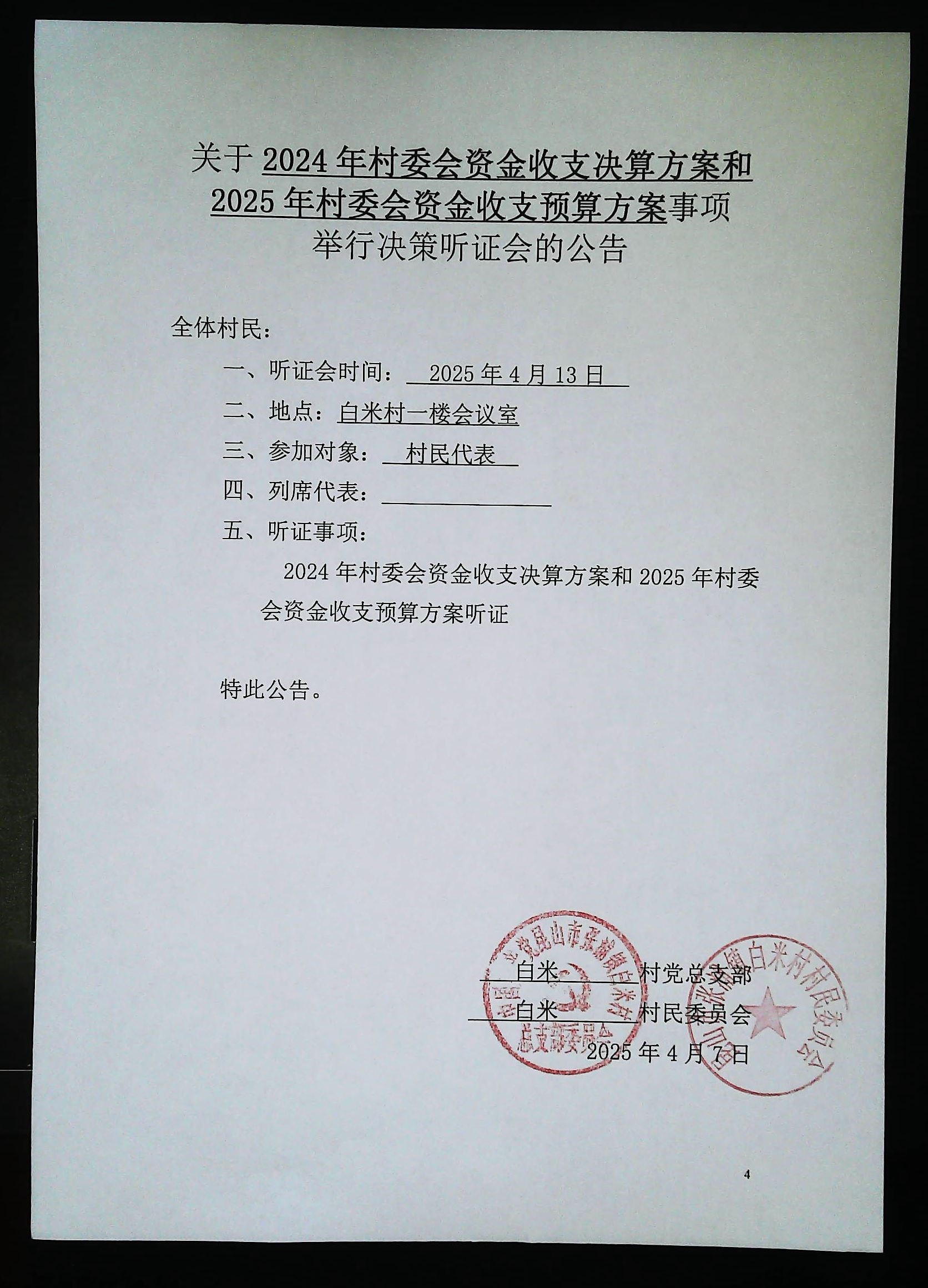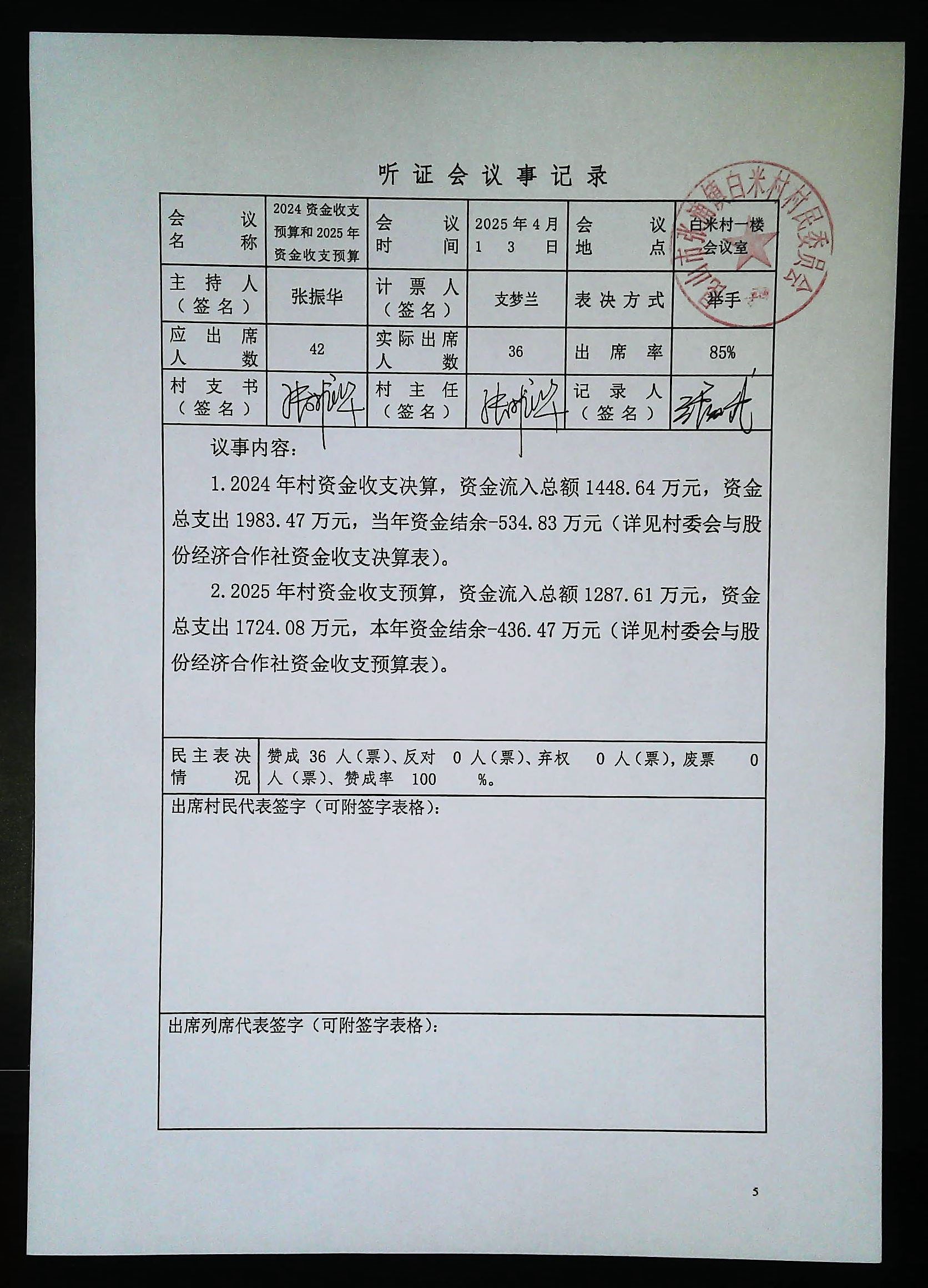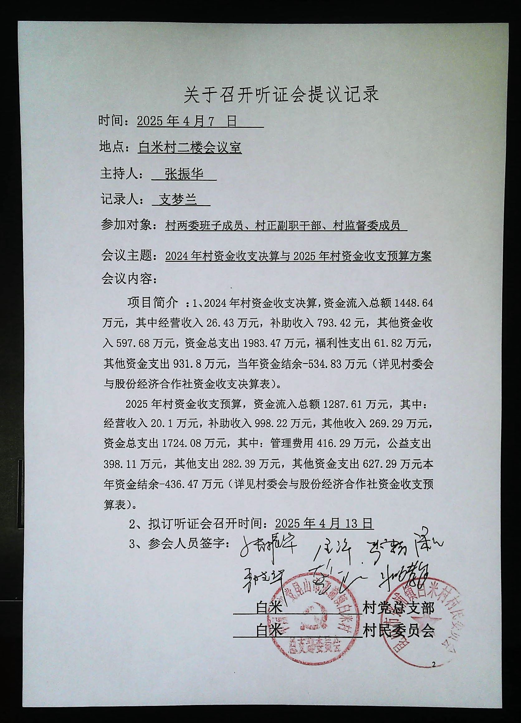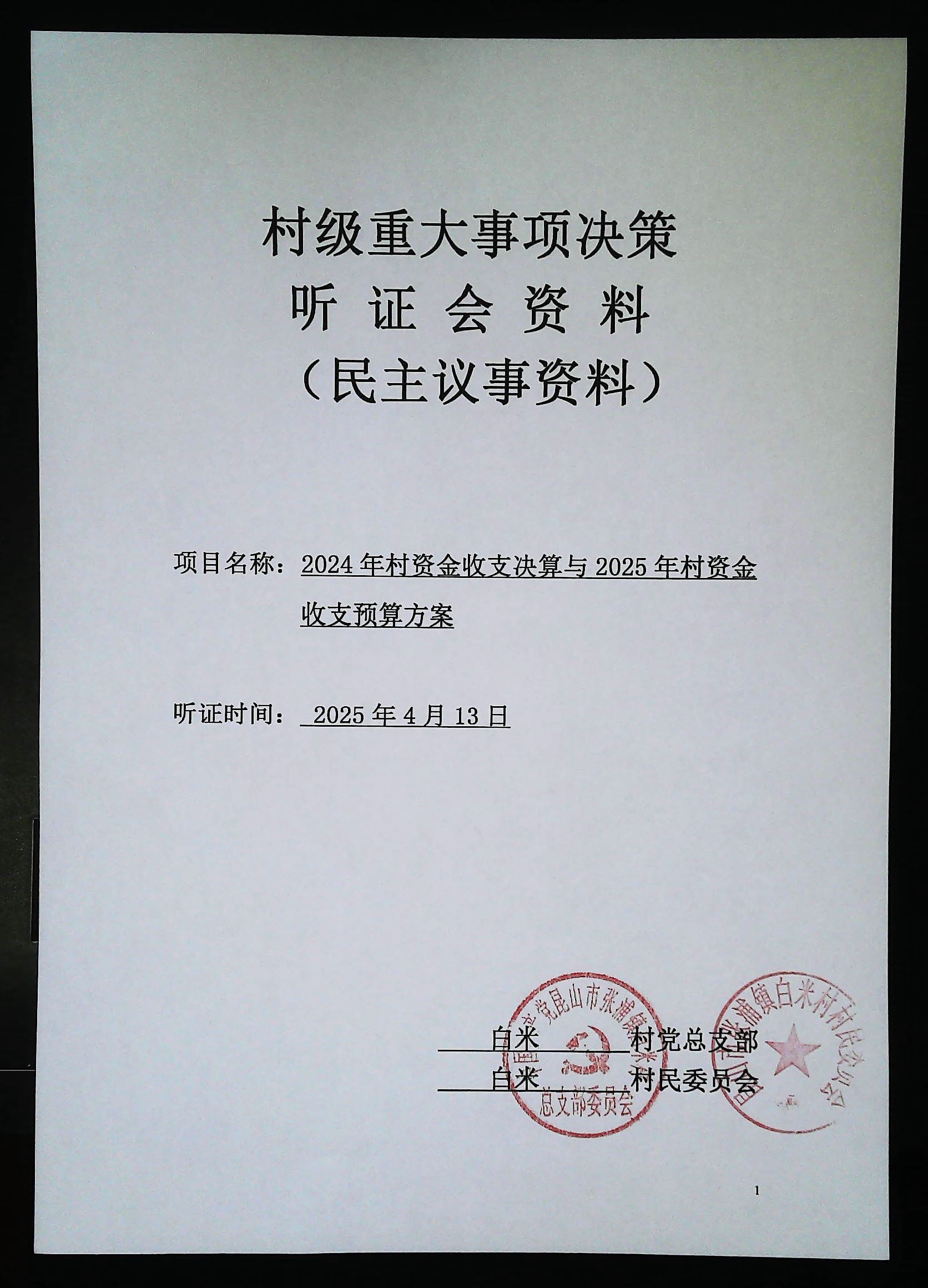 2024年白米村資金收支決算與2025年收支預(yù)算方案聽證會