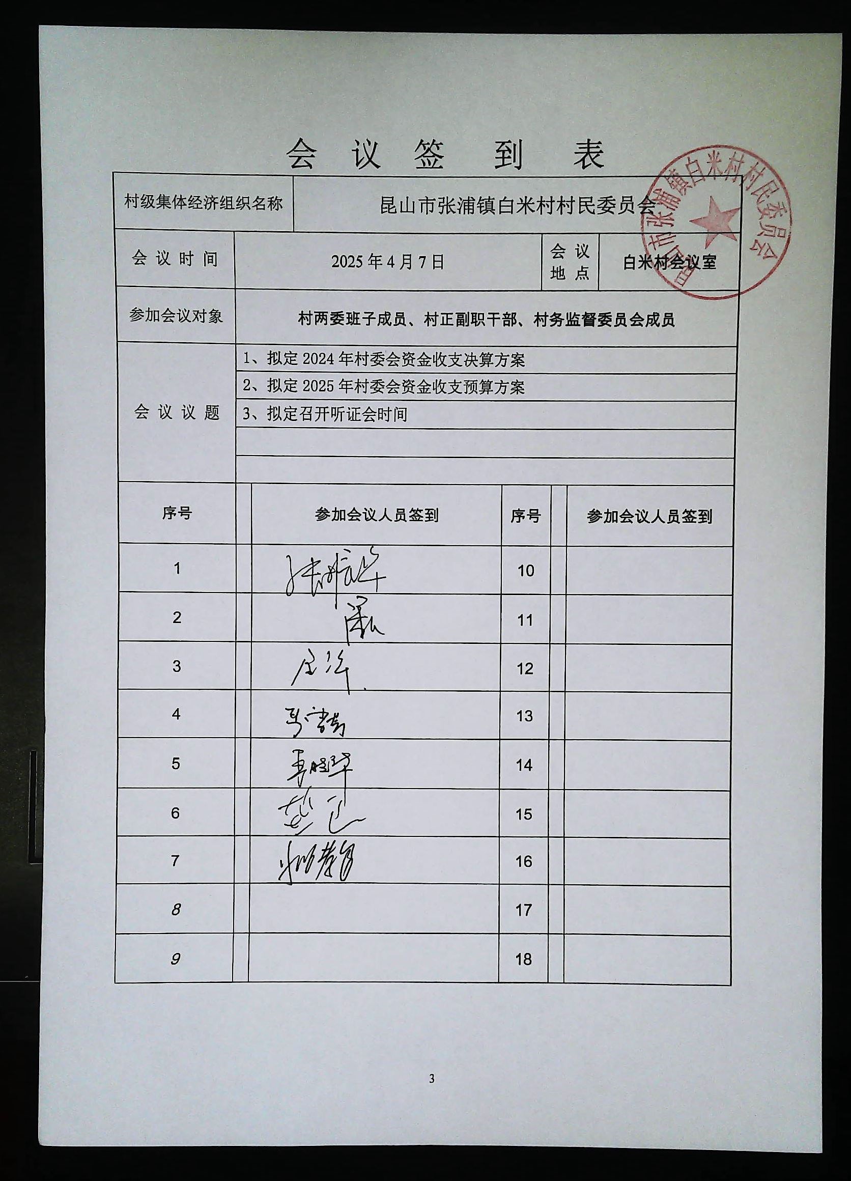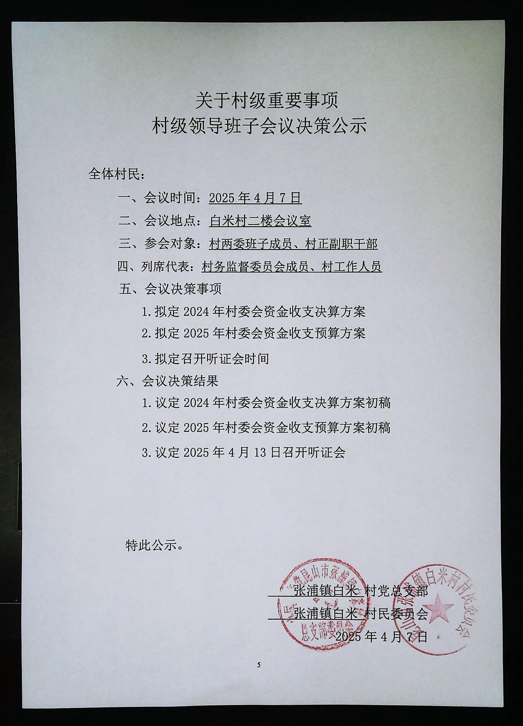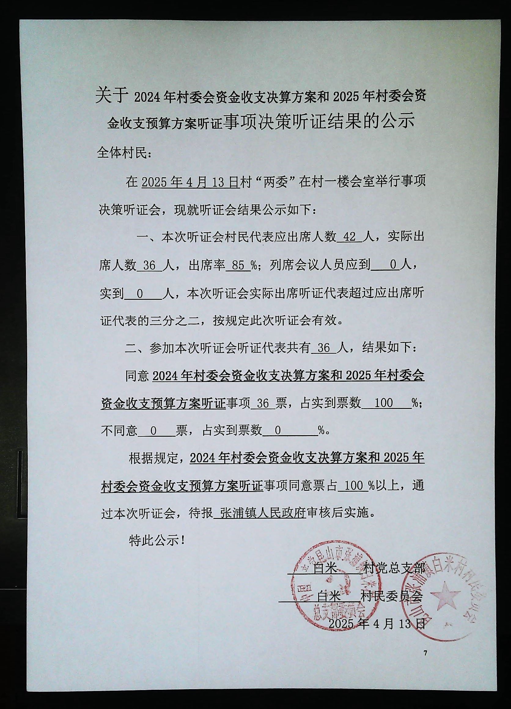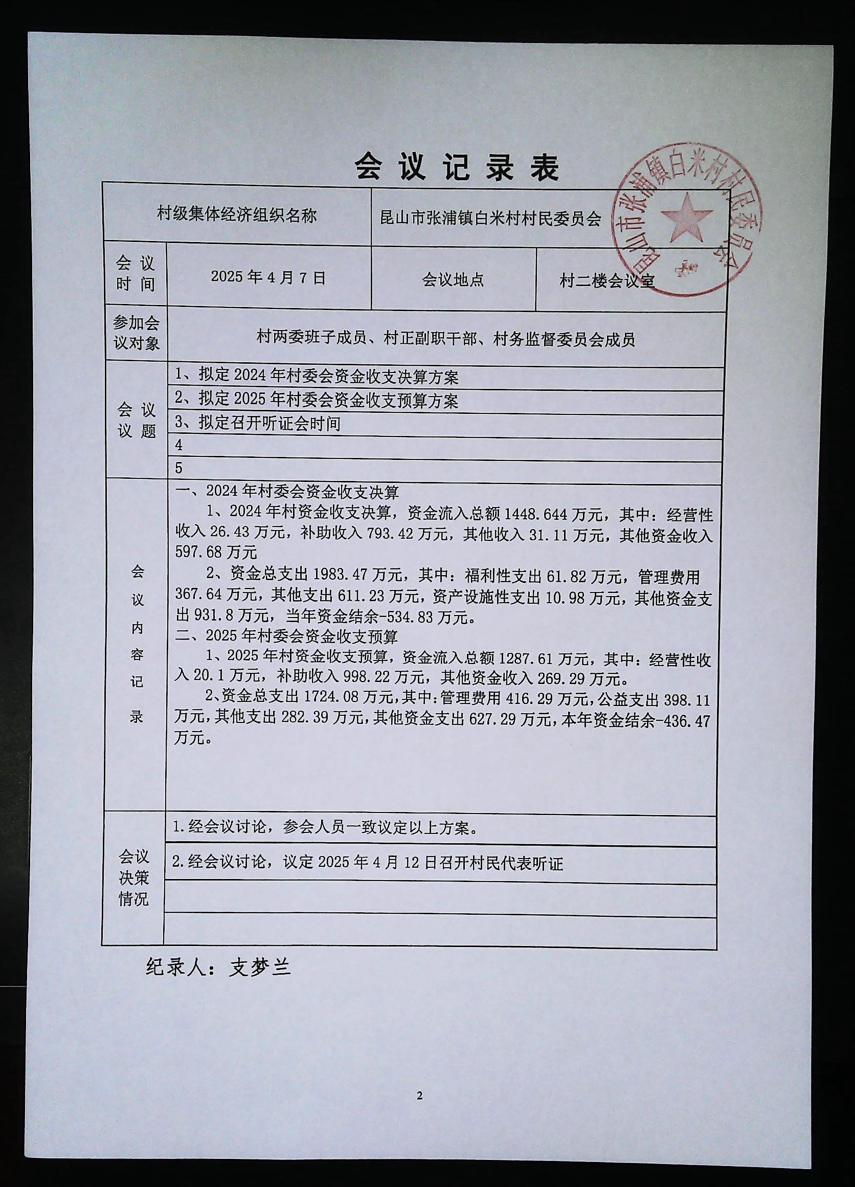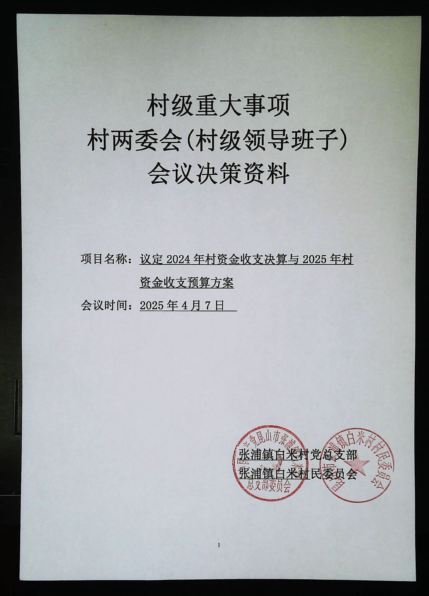 2024年白米村資金收支決算與2025年收支預(yù)算方案聽證會