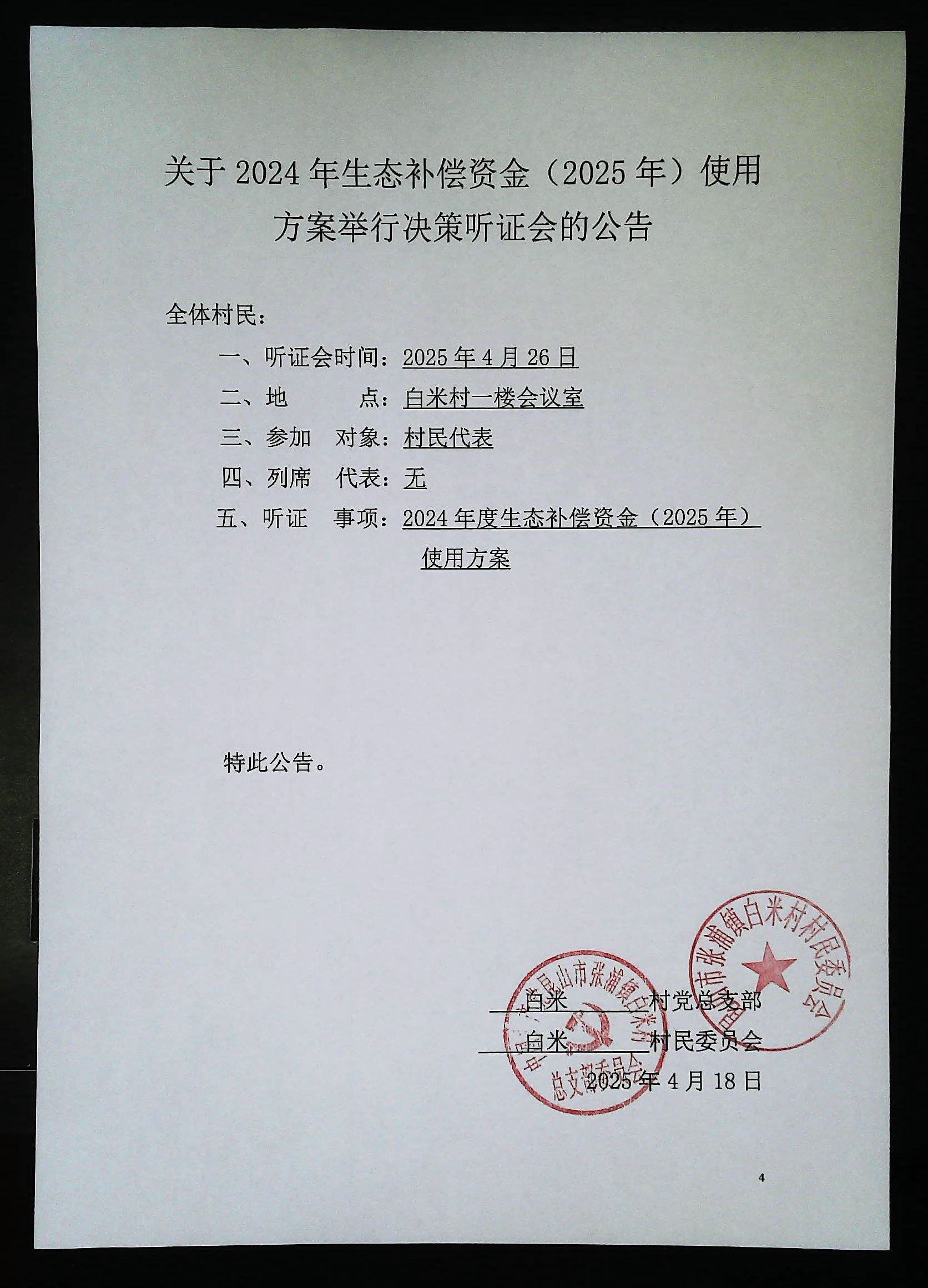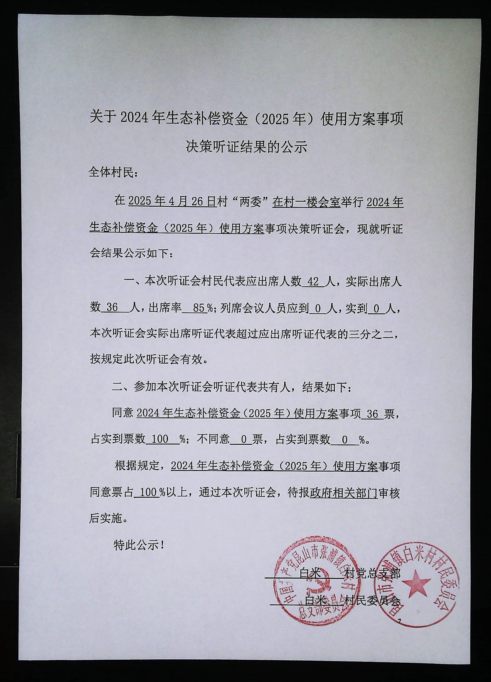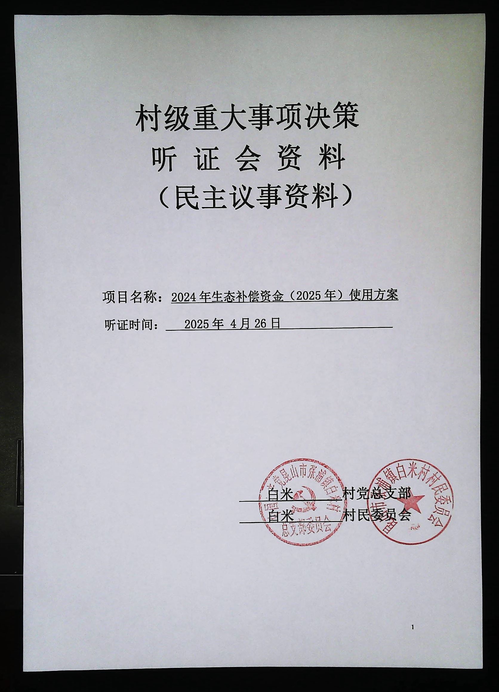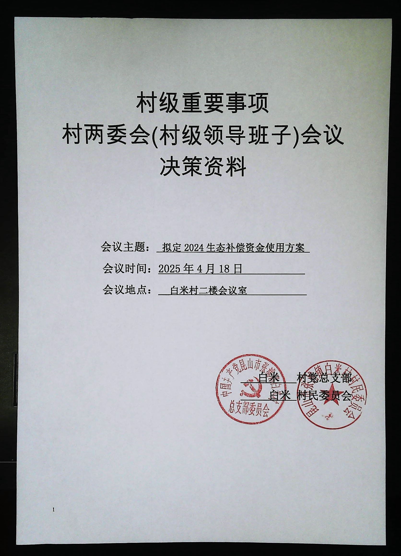 白米村2024年生態(tài)補(bǔ)償資金使用方案