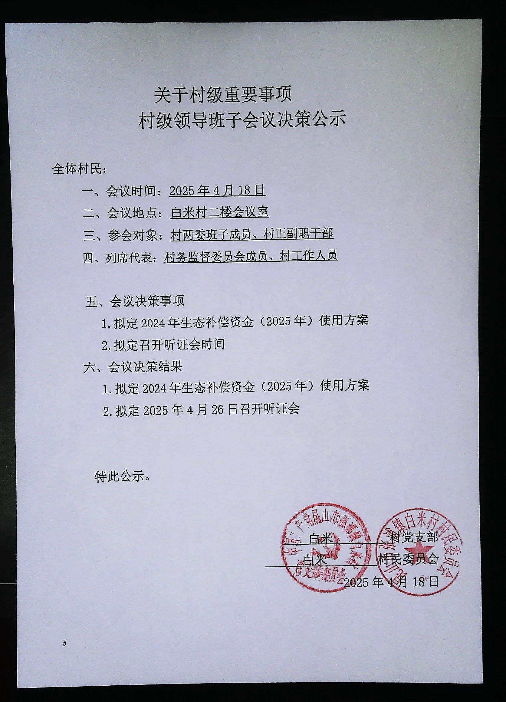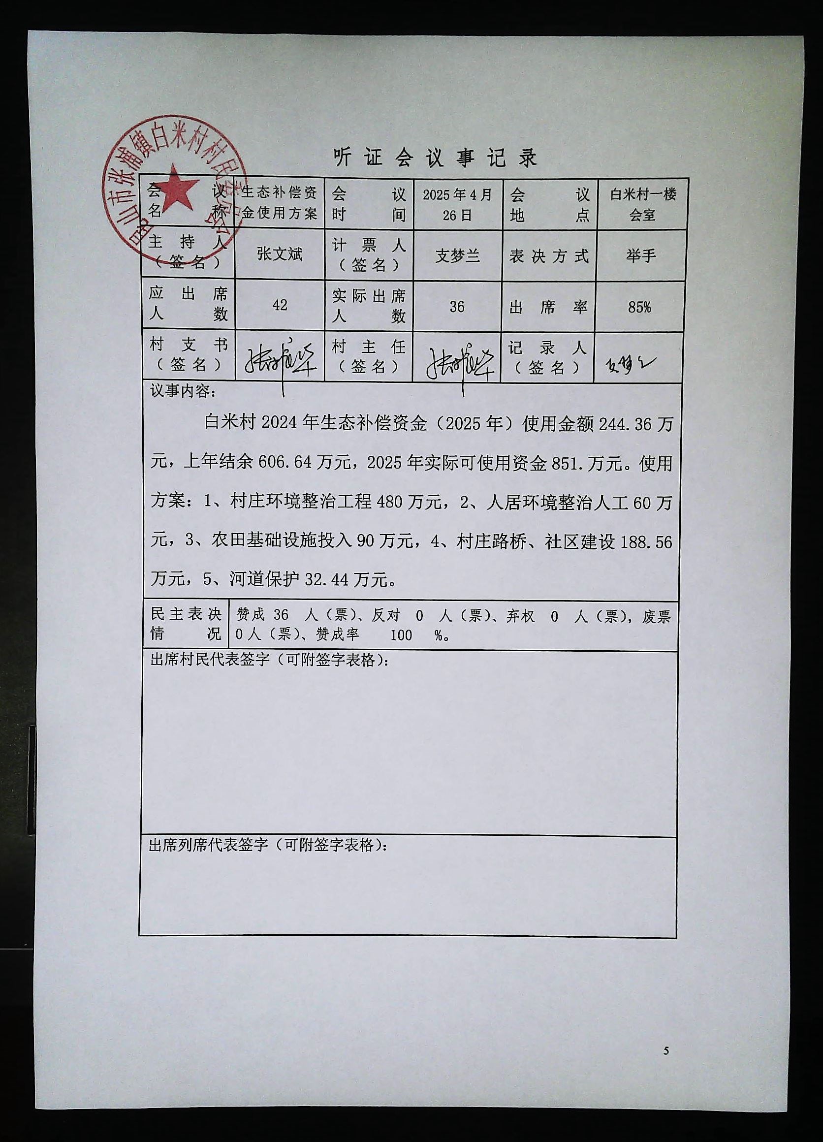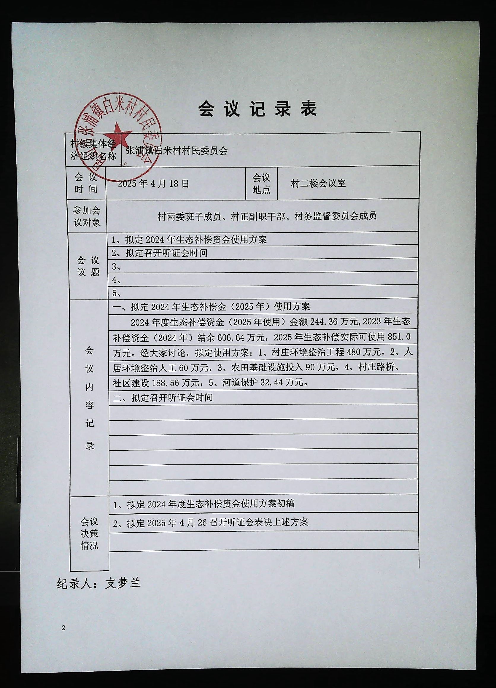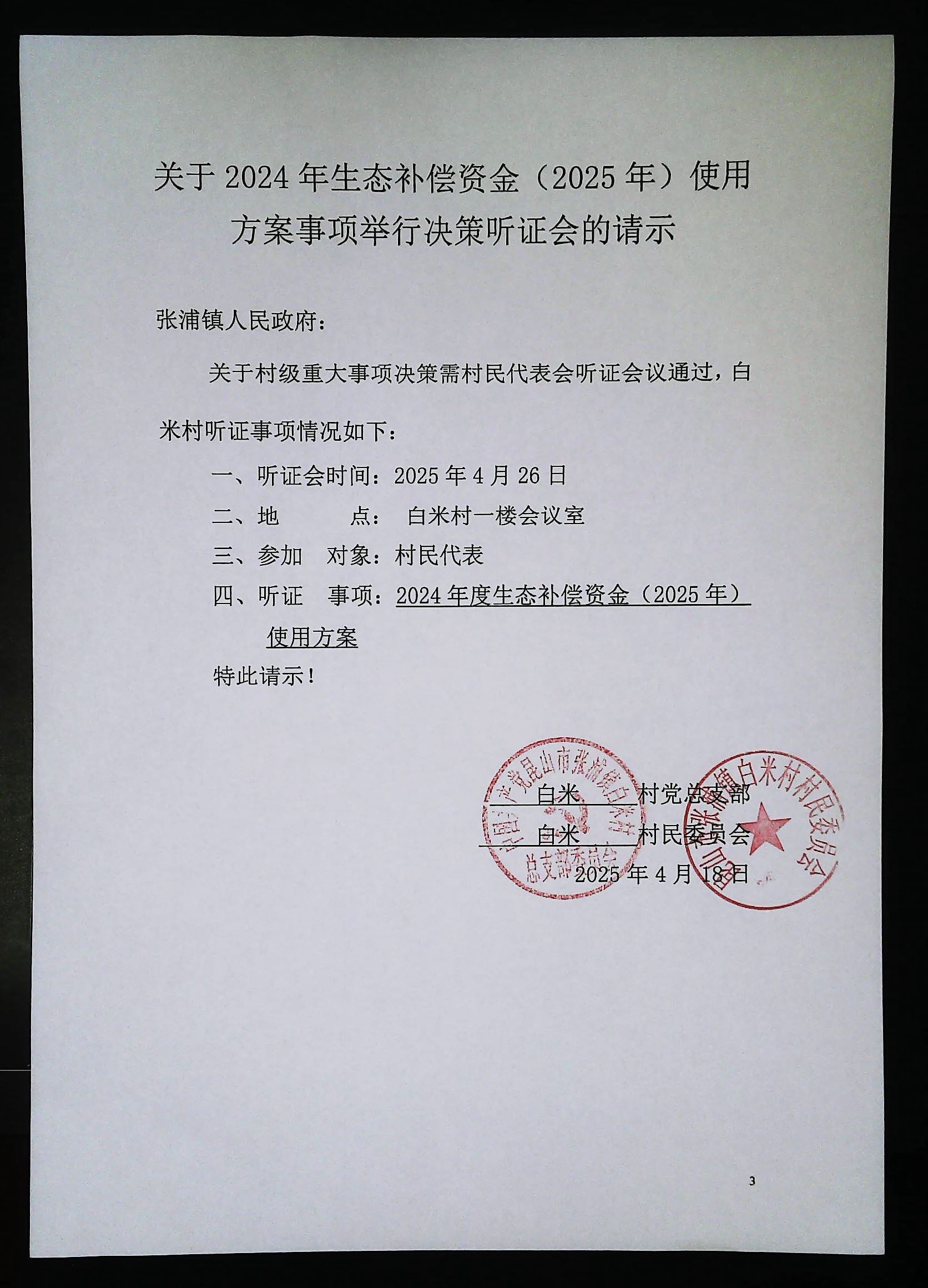 白米村2024年生態(tài)補(bǔ)償資金使用方案