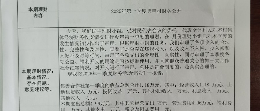2025年度集善村股份經(jīng)濟(jì)合作社第一季度民主理財