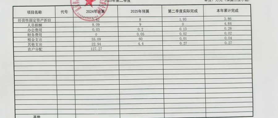 2025年曹安村股份經(jīng)濟合作社6月財務(wù)公開