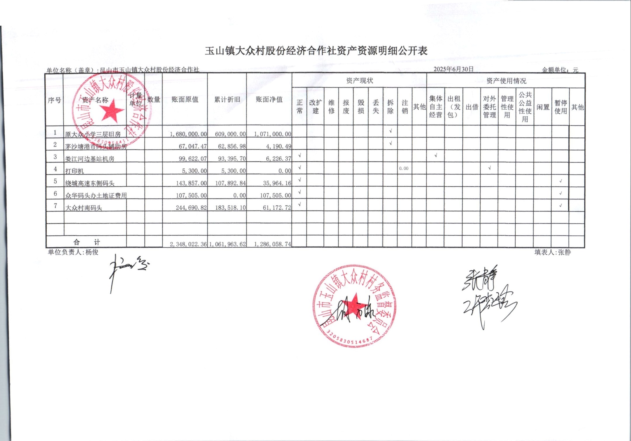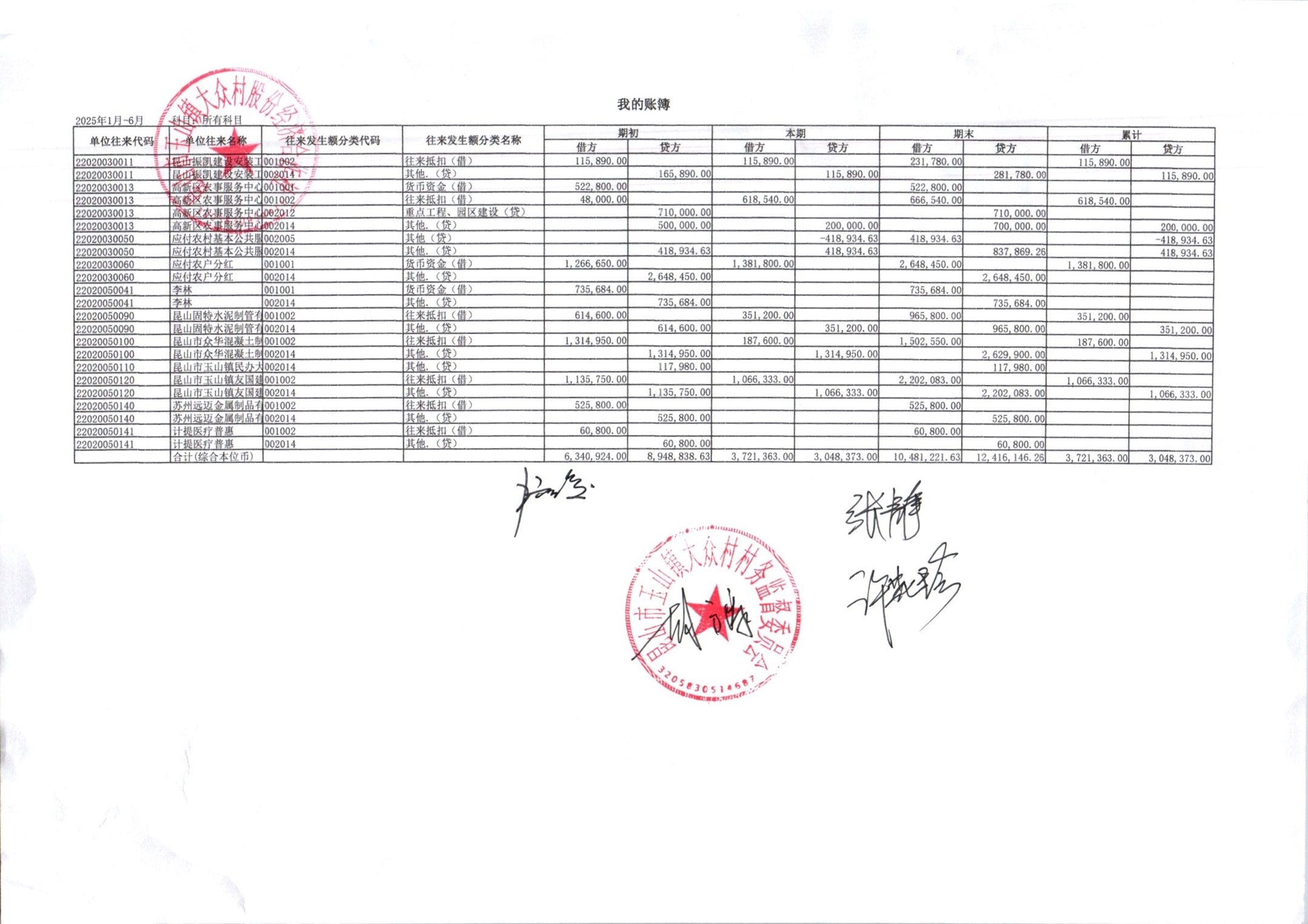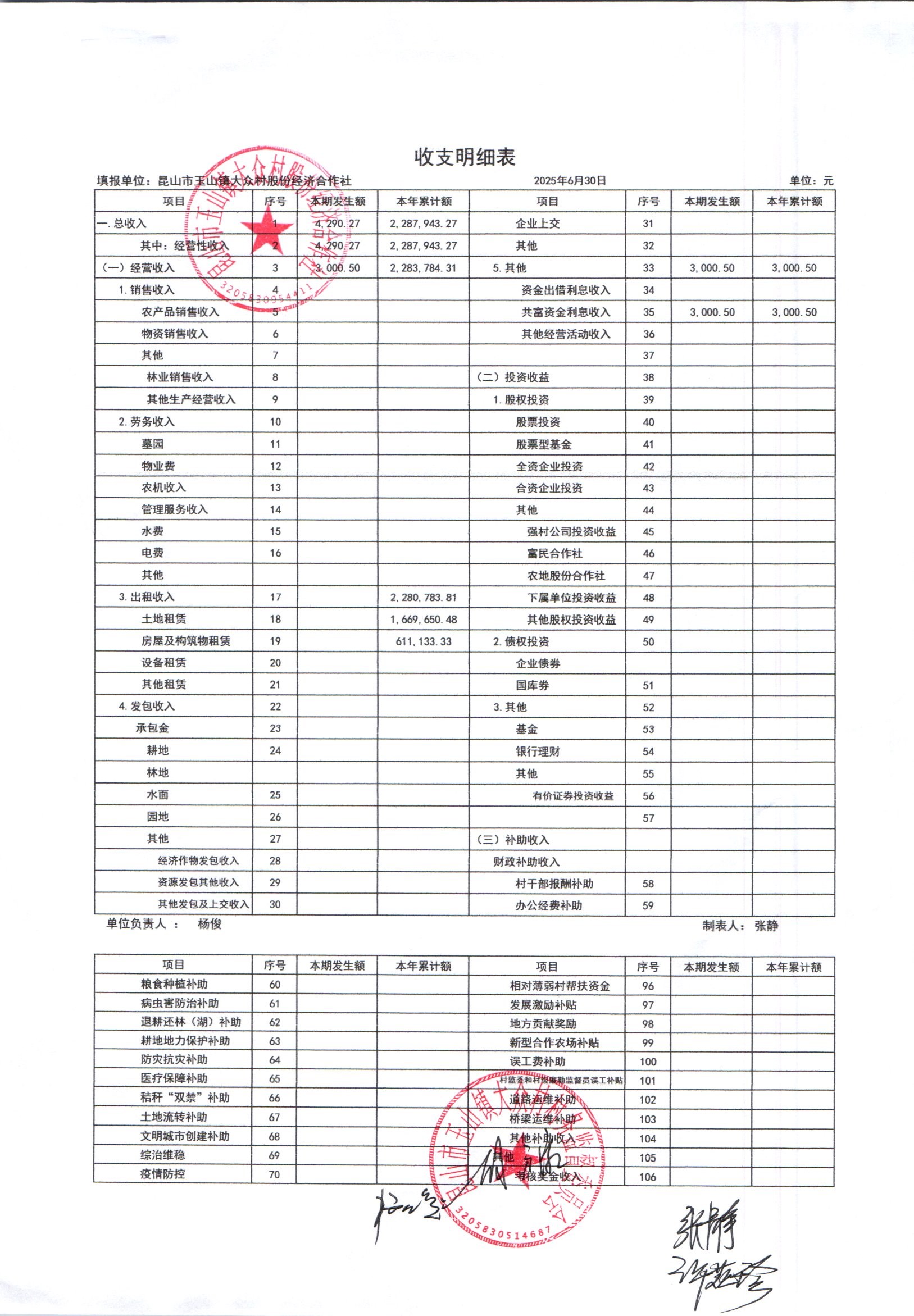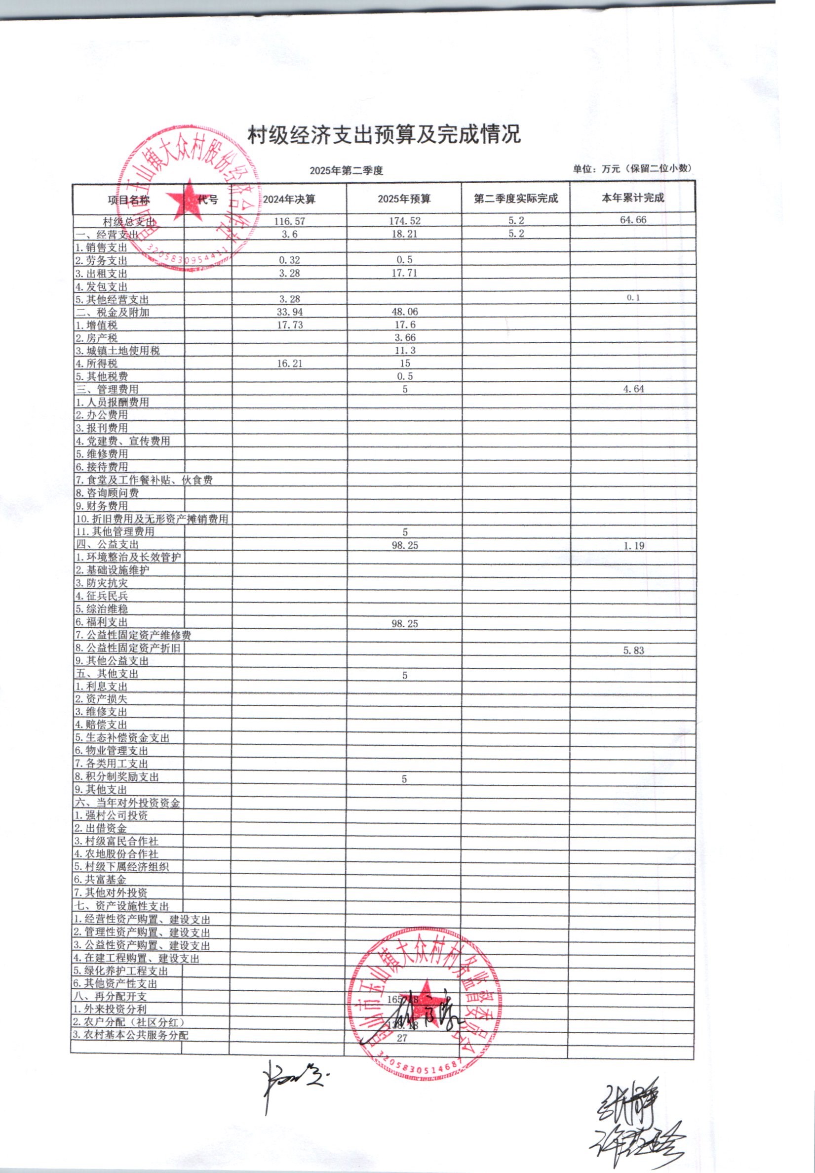 大眾村2025年7月份股份經(jīng)濟合作社財務(wù)公開