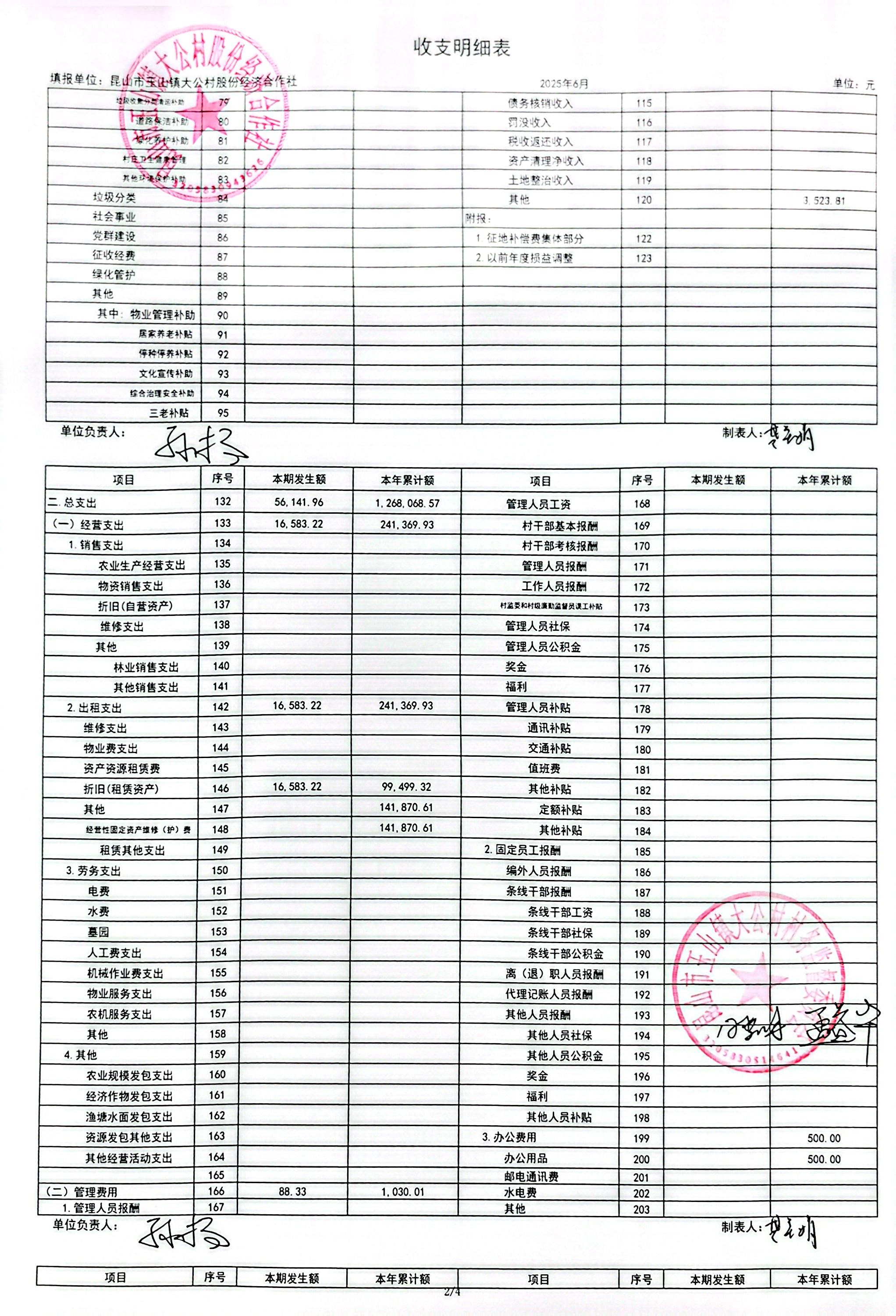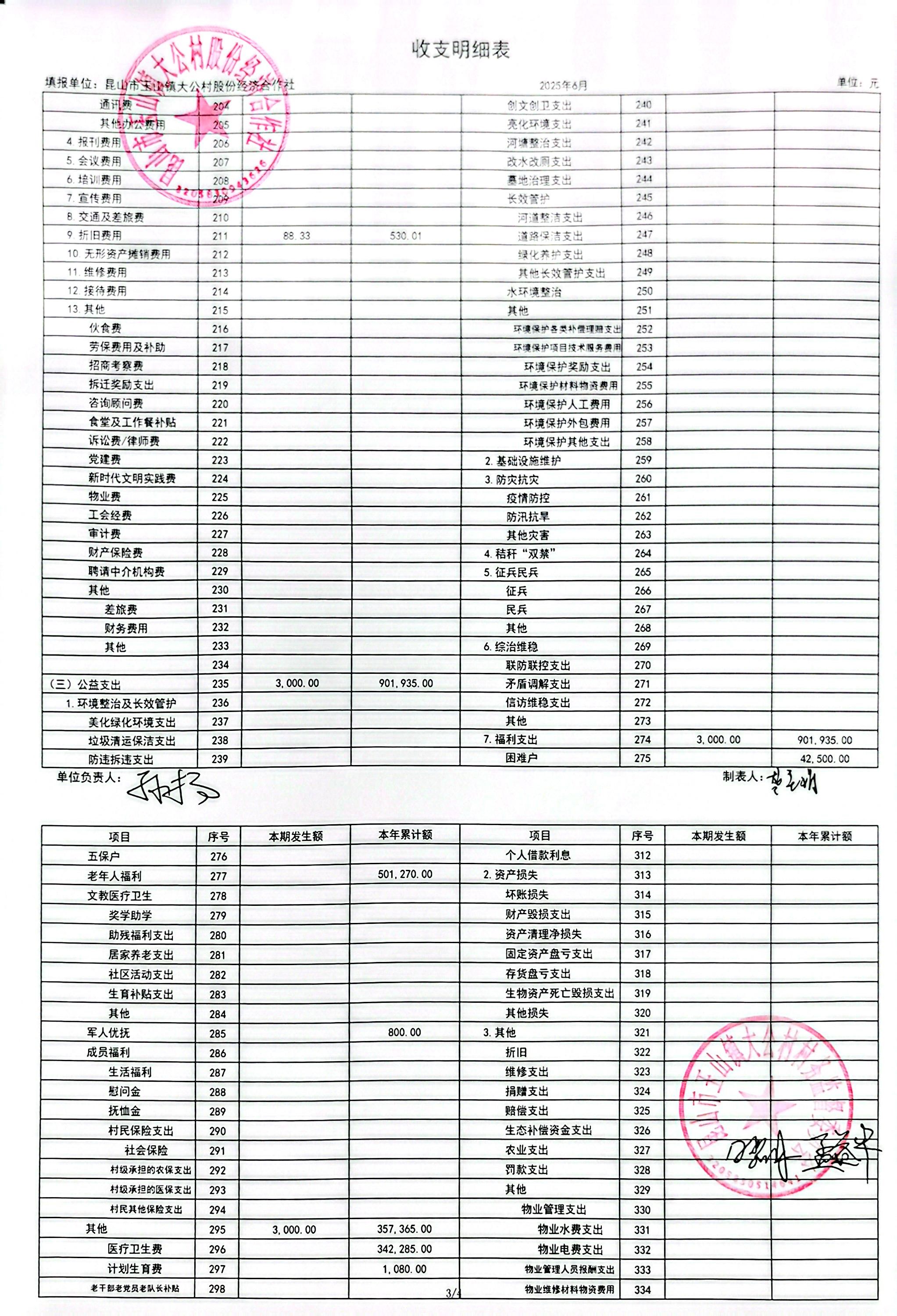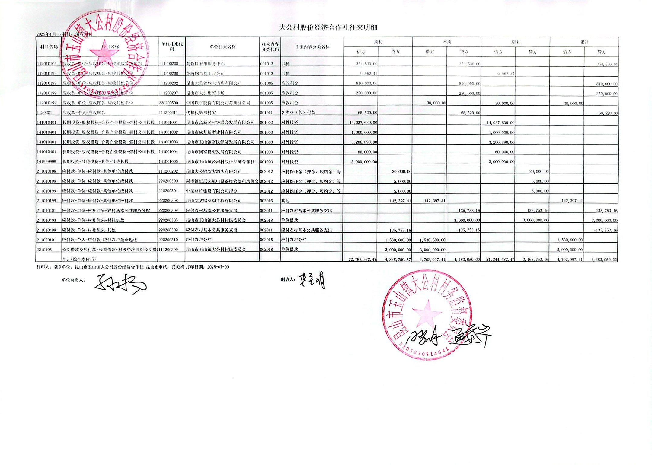 高新區(qū)大公村股份經濟合作社2025年7月財務公開