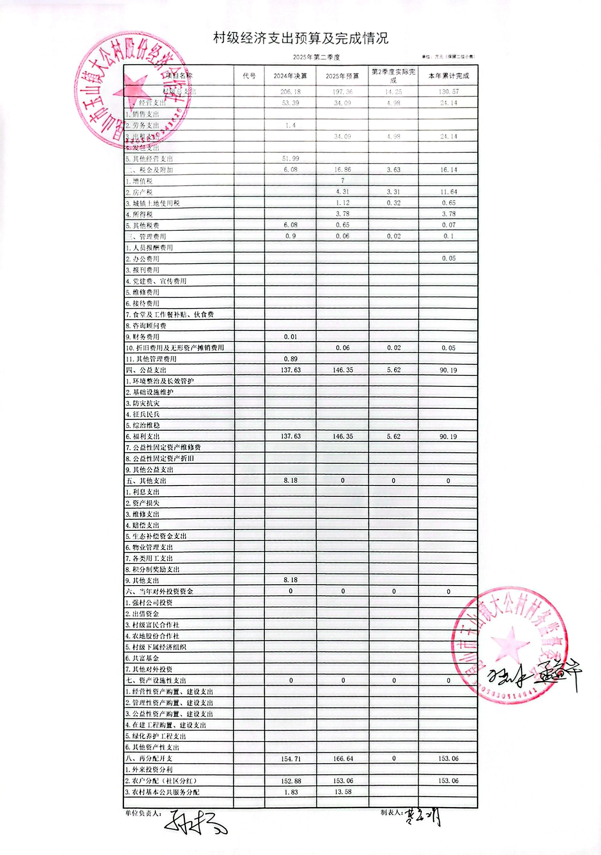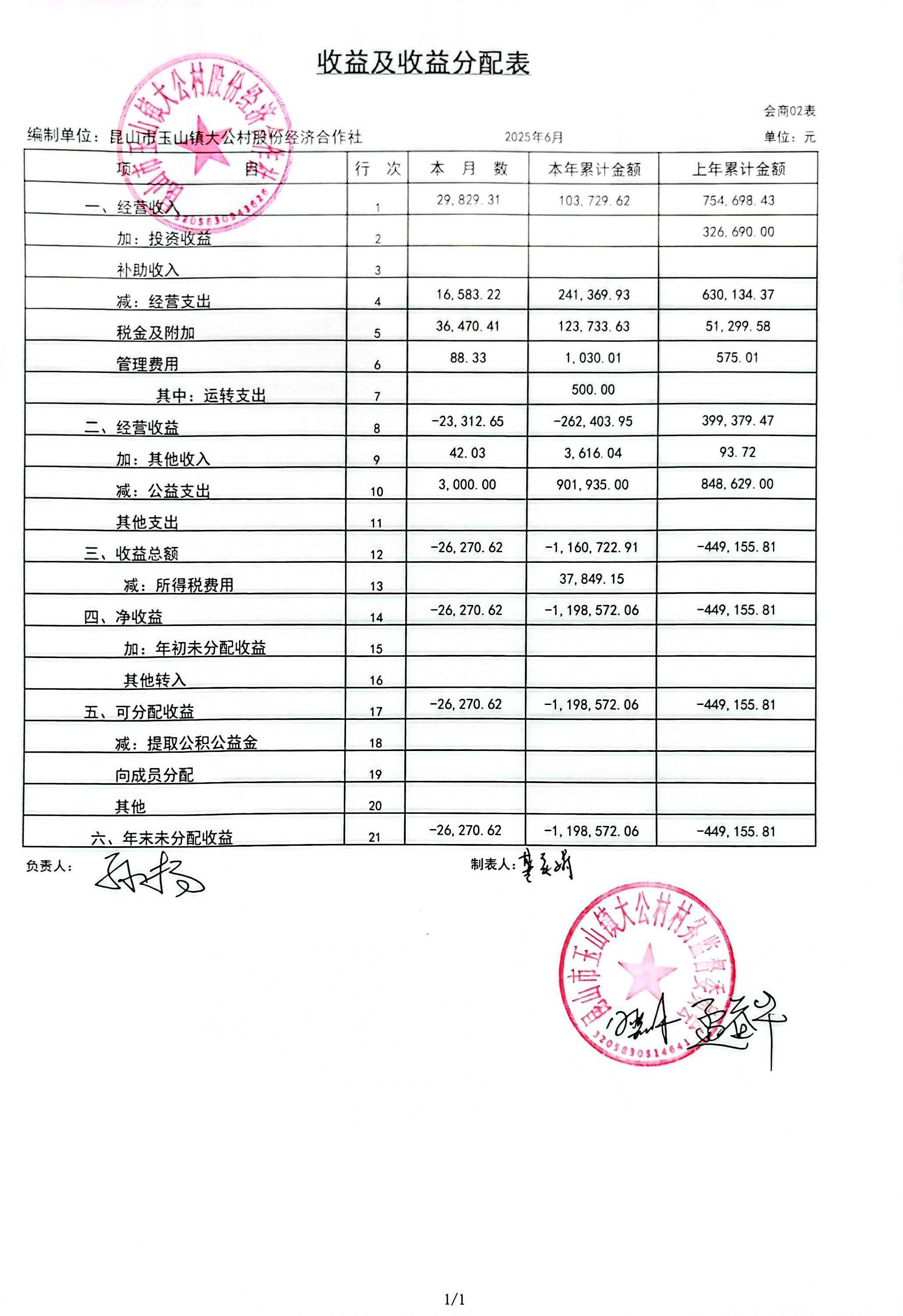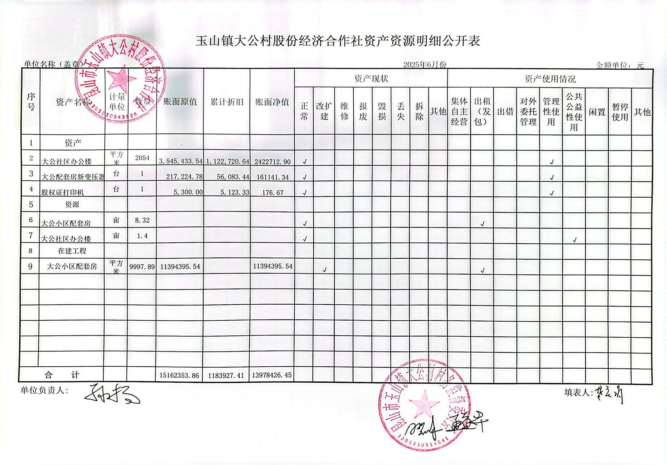 高新區(qū)大公村股份經濟合作社2025年7月財務公開