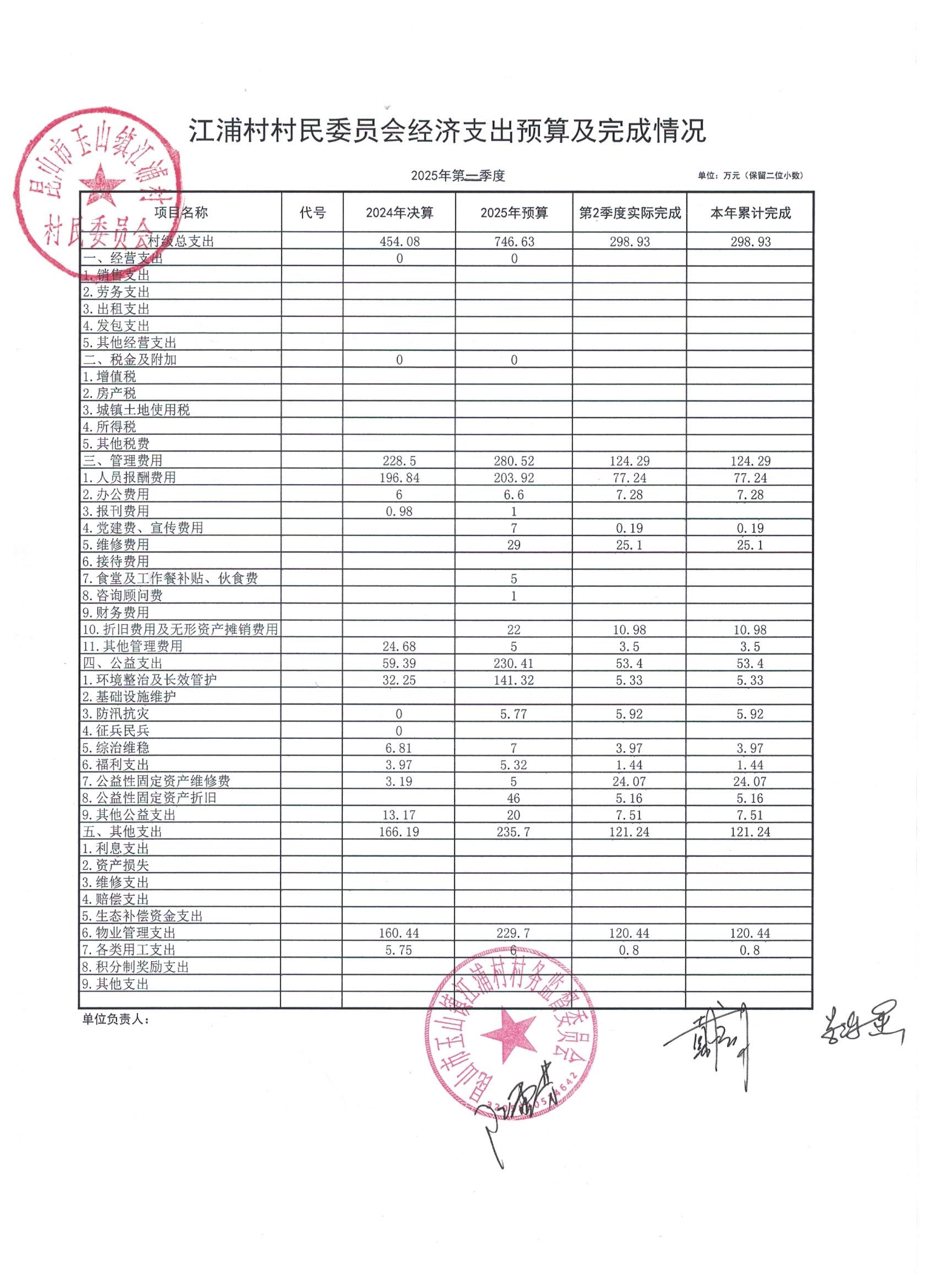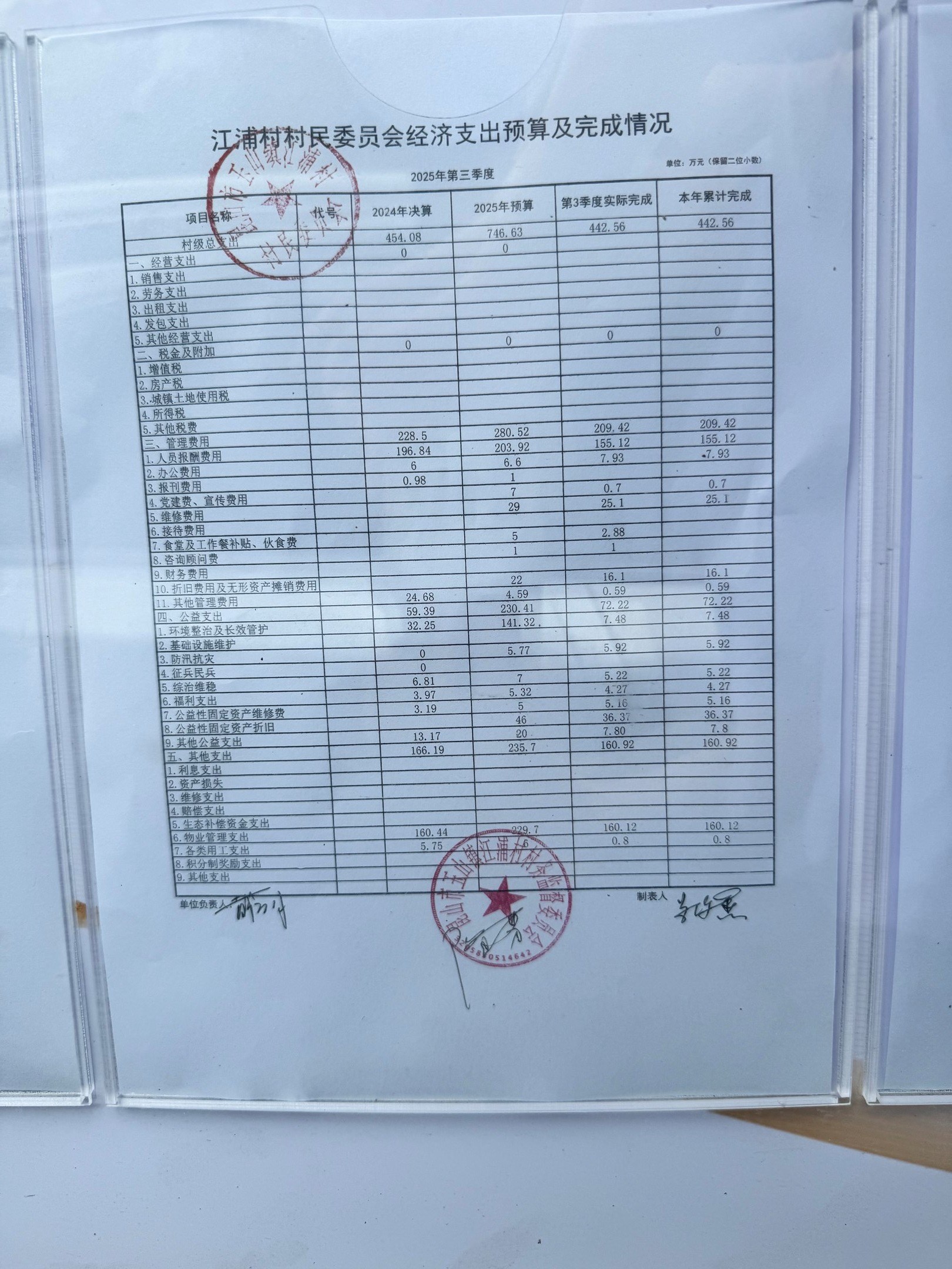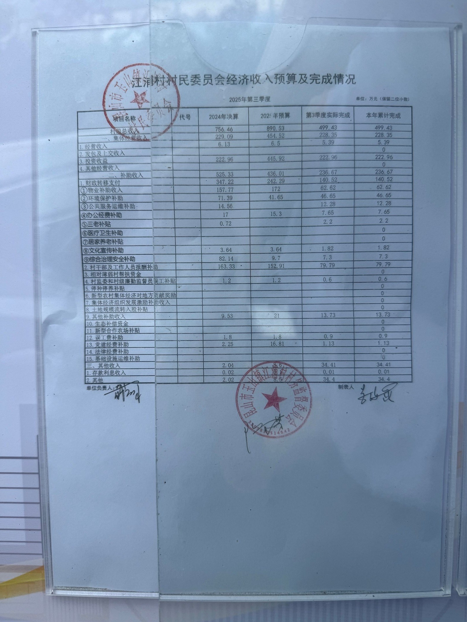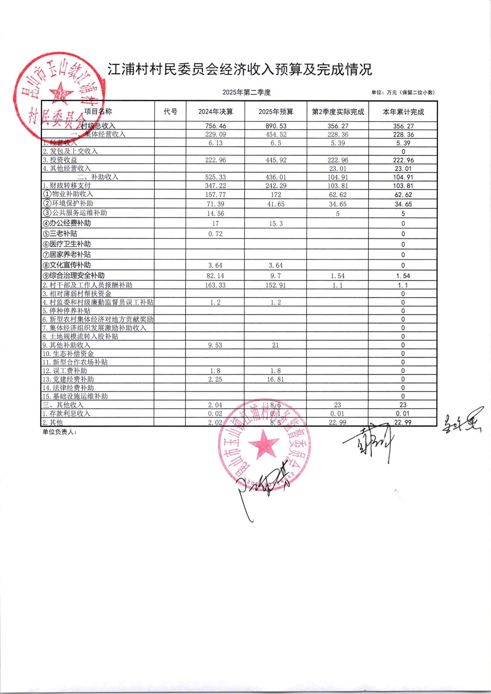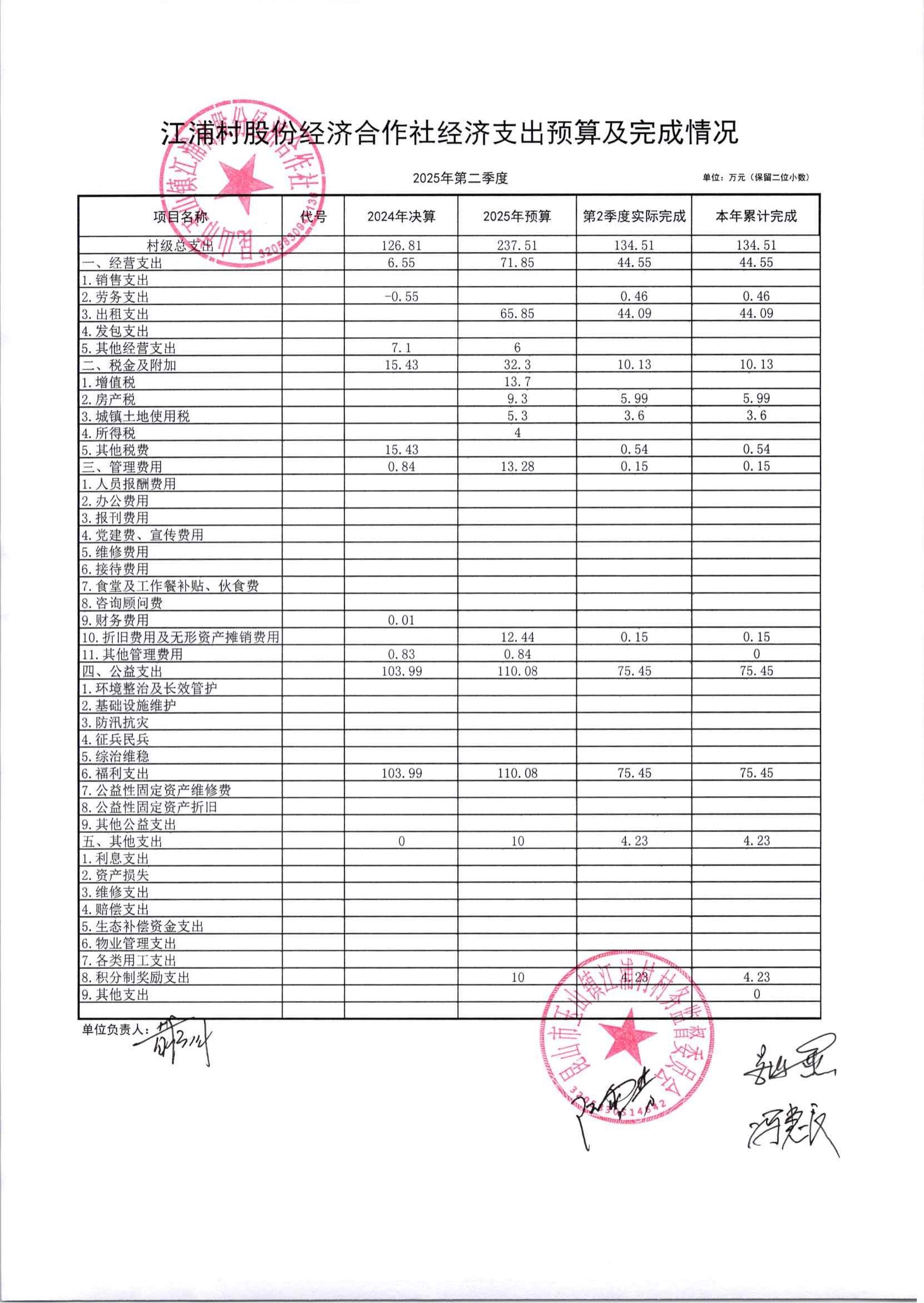 2025年江浦村及江浦村股份經(jīng)濟(jì)合作社第二季度預(yù)算收支完成情況