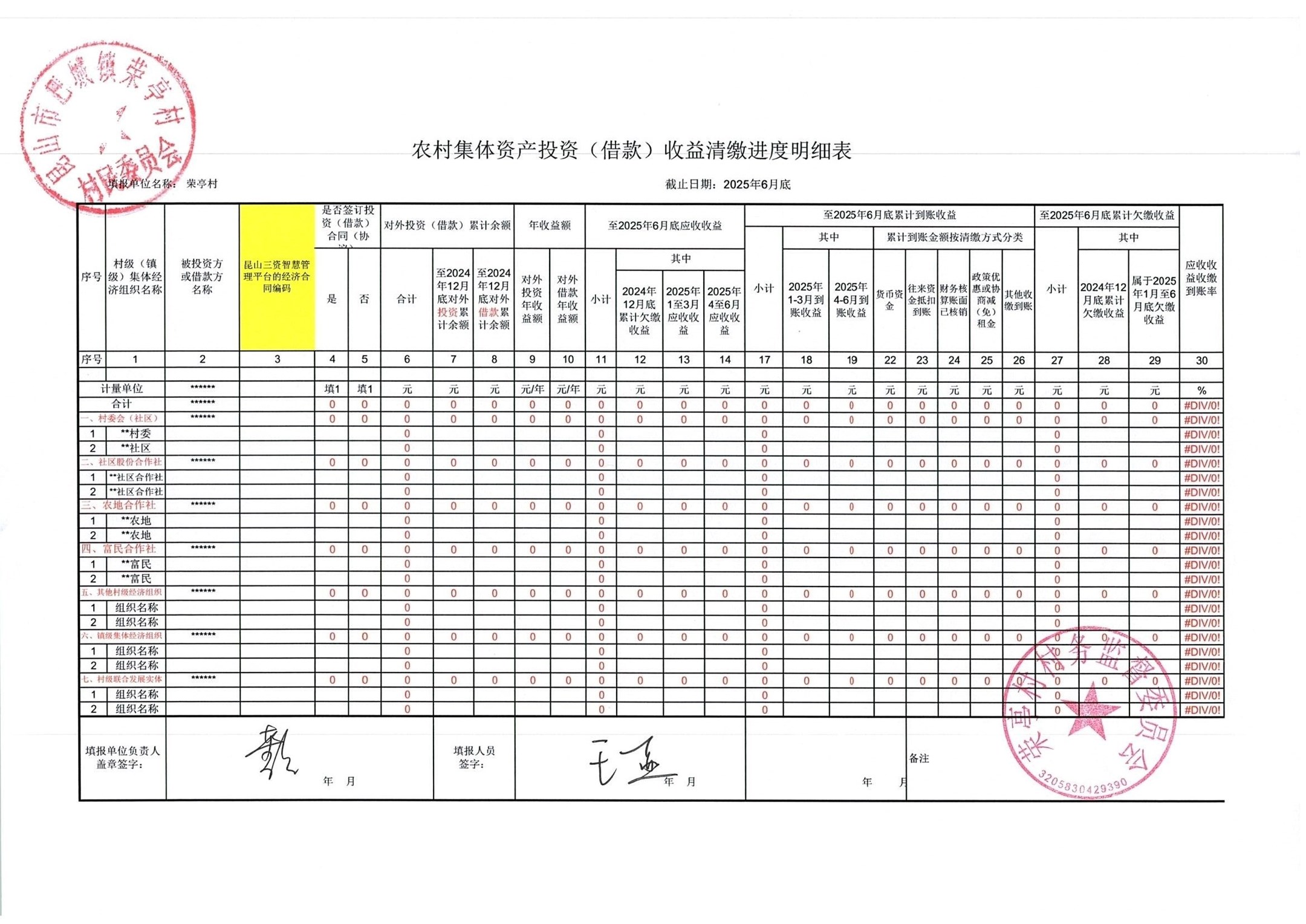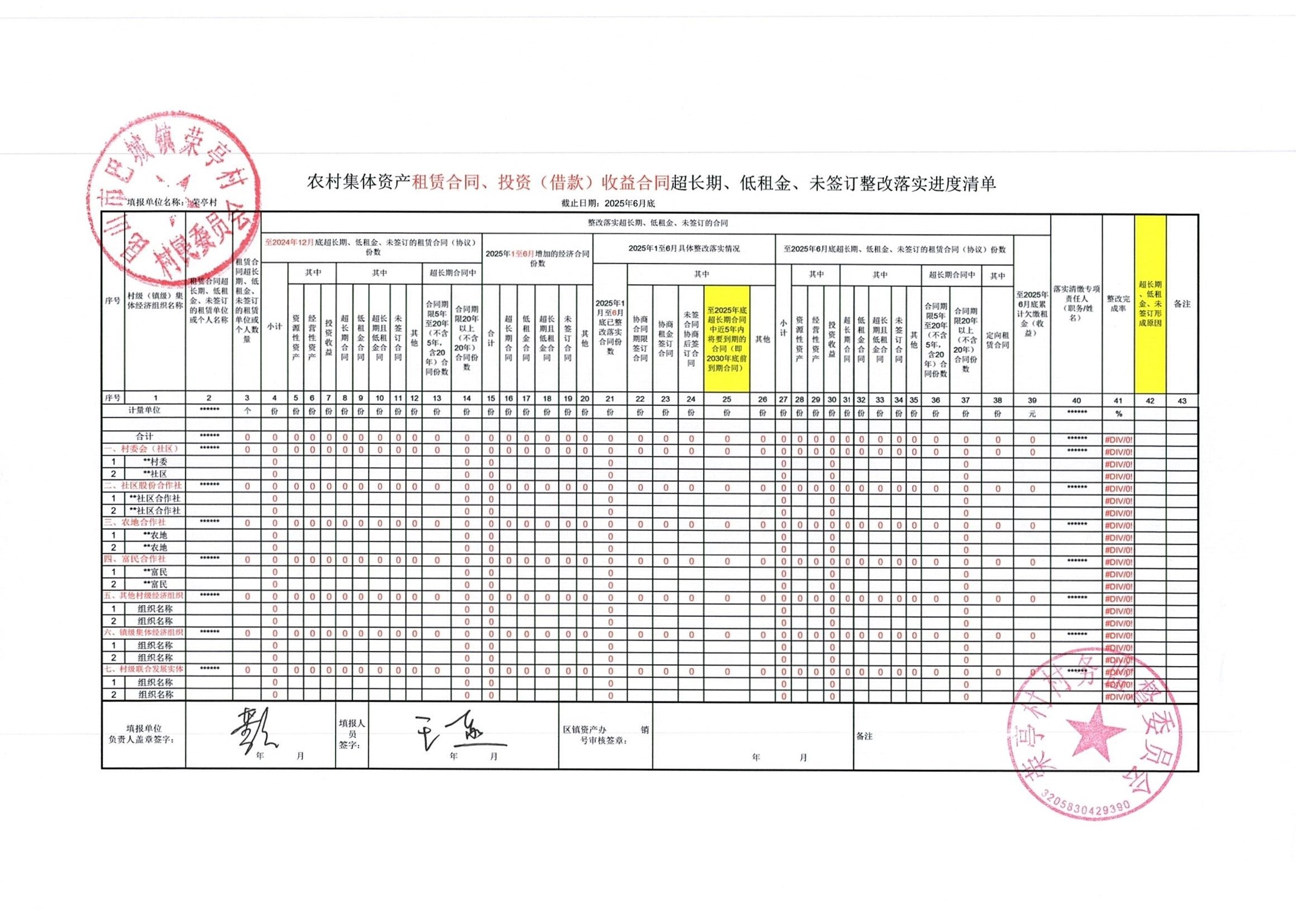 2025年第二季度農(nóng)村集體資產(chǎn)經(jīng)濟(jì)合同收繳進(jìn)度調(diào)查表