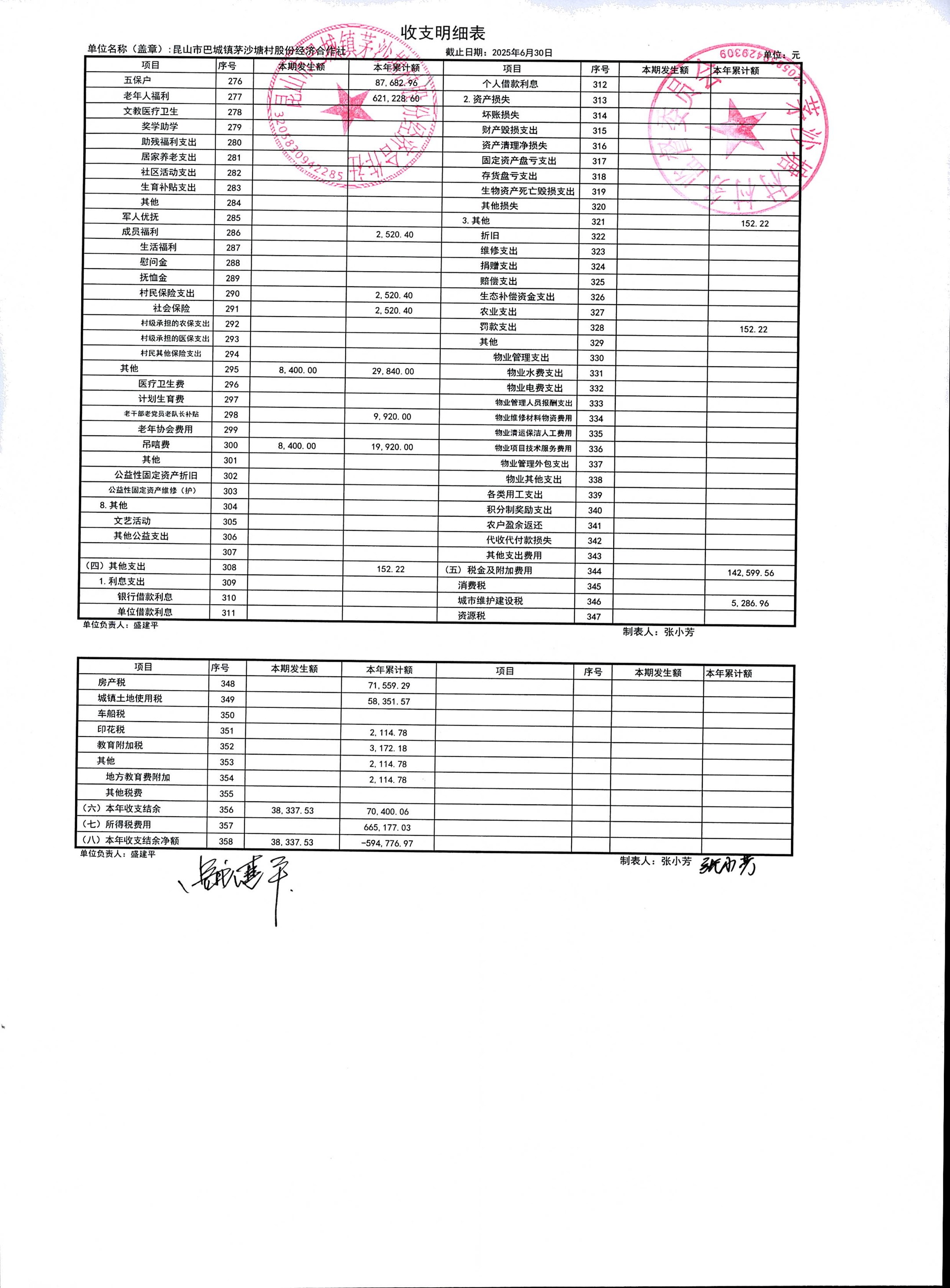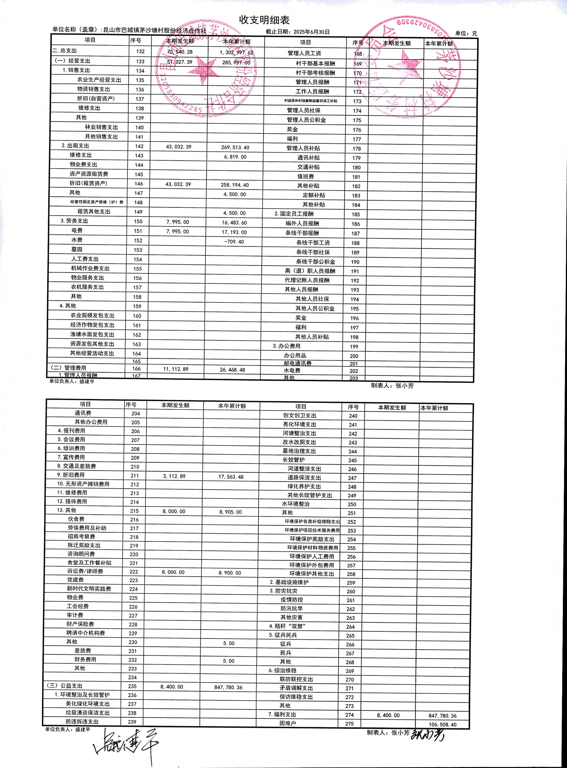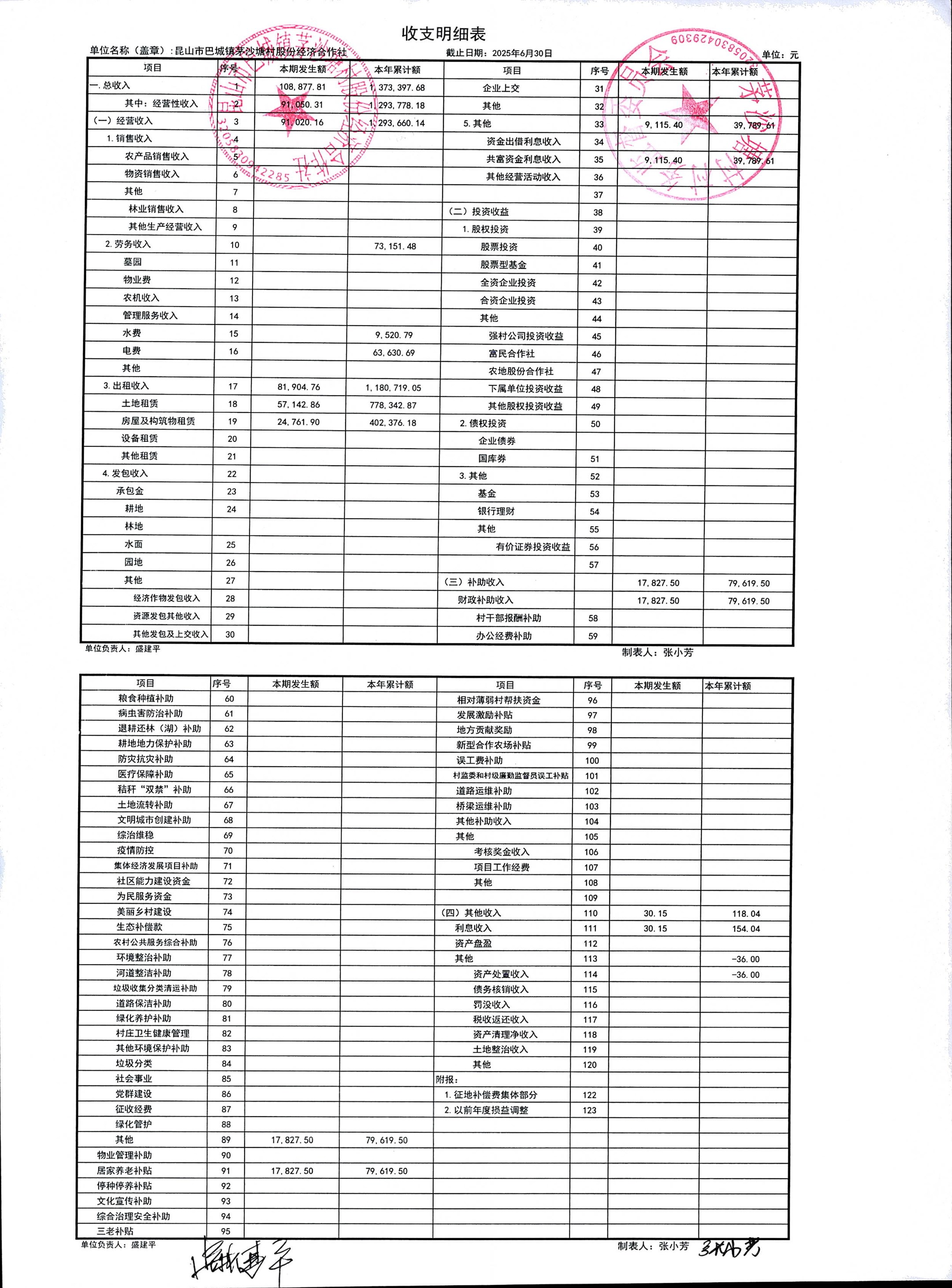 2025年7月份財務(wù)公開(股份經(jīng)濟合作社)