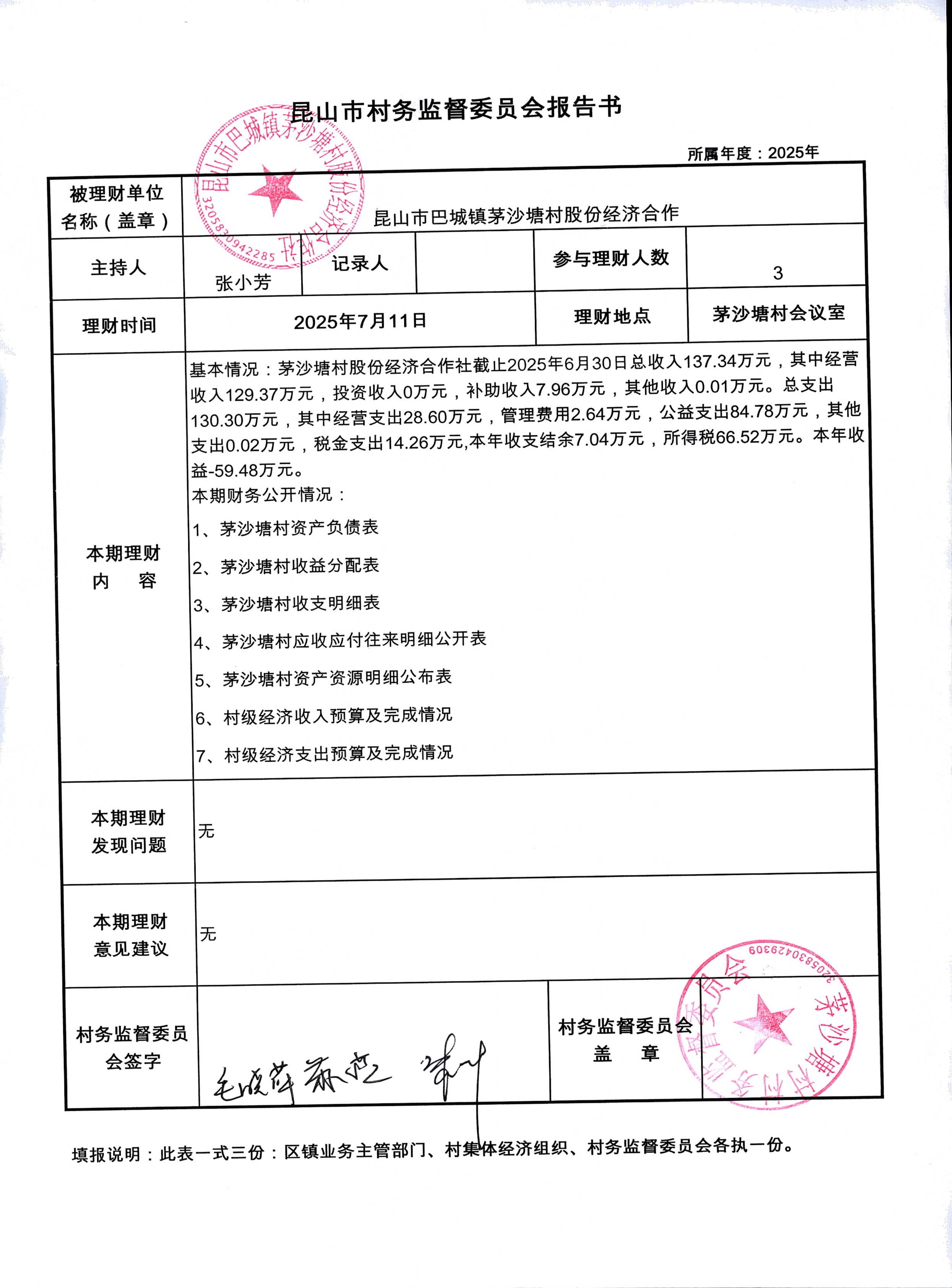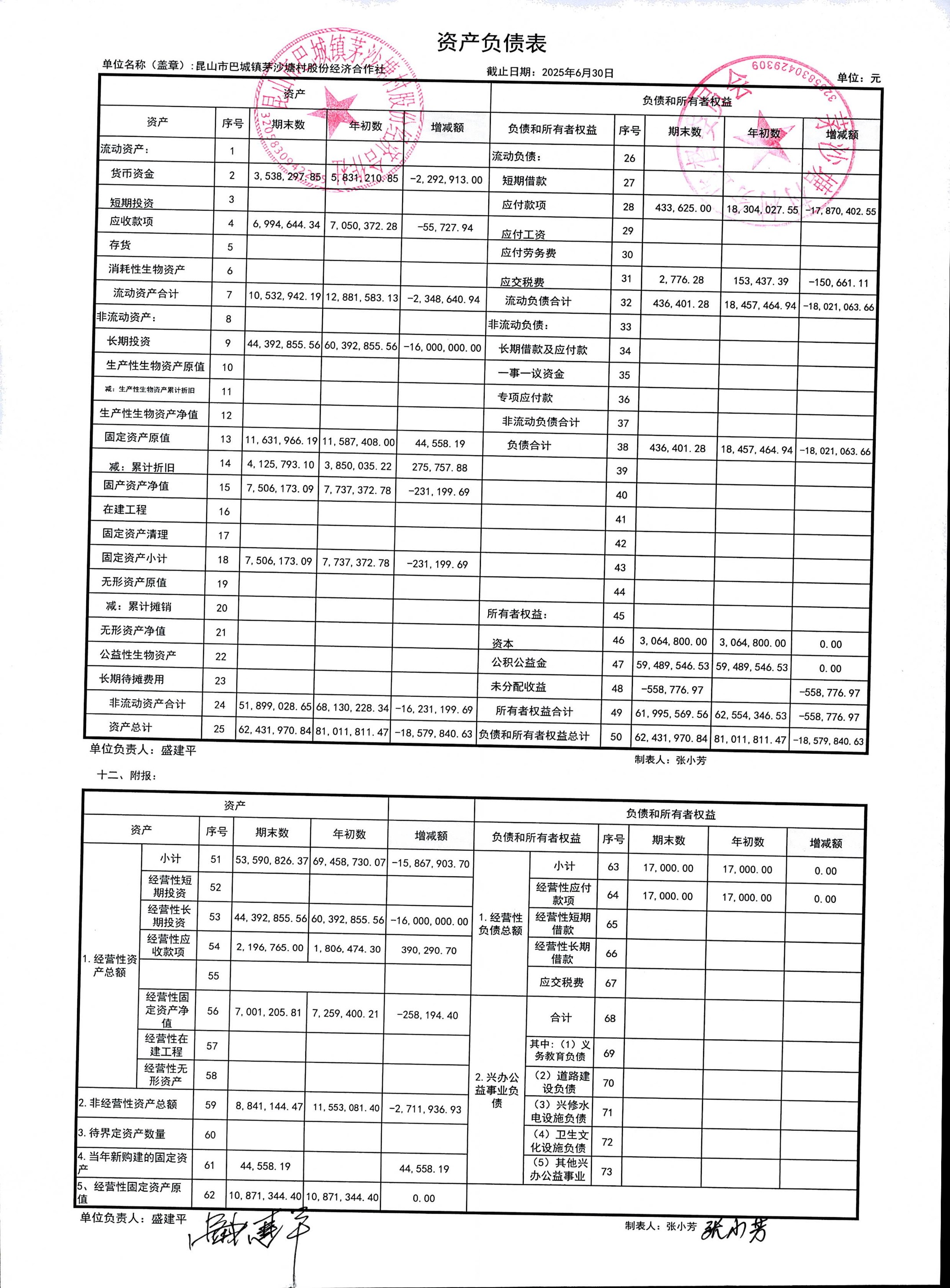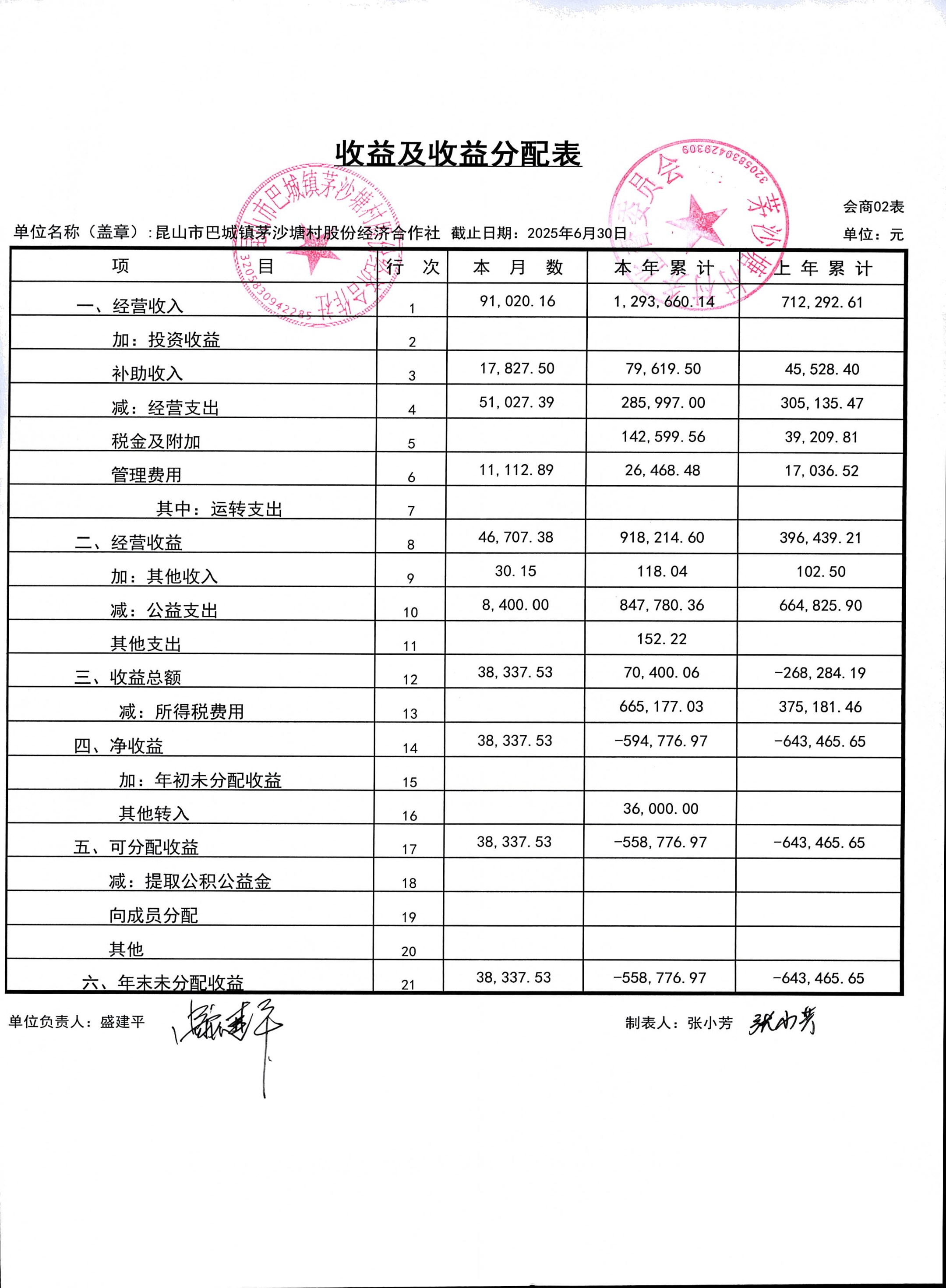2025年7月份財務(wù)公開(股份經(jīng)濟合作社)