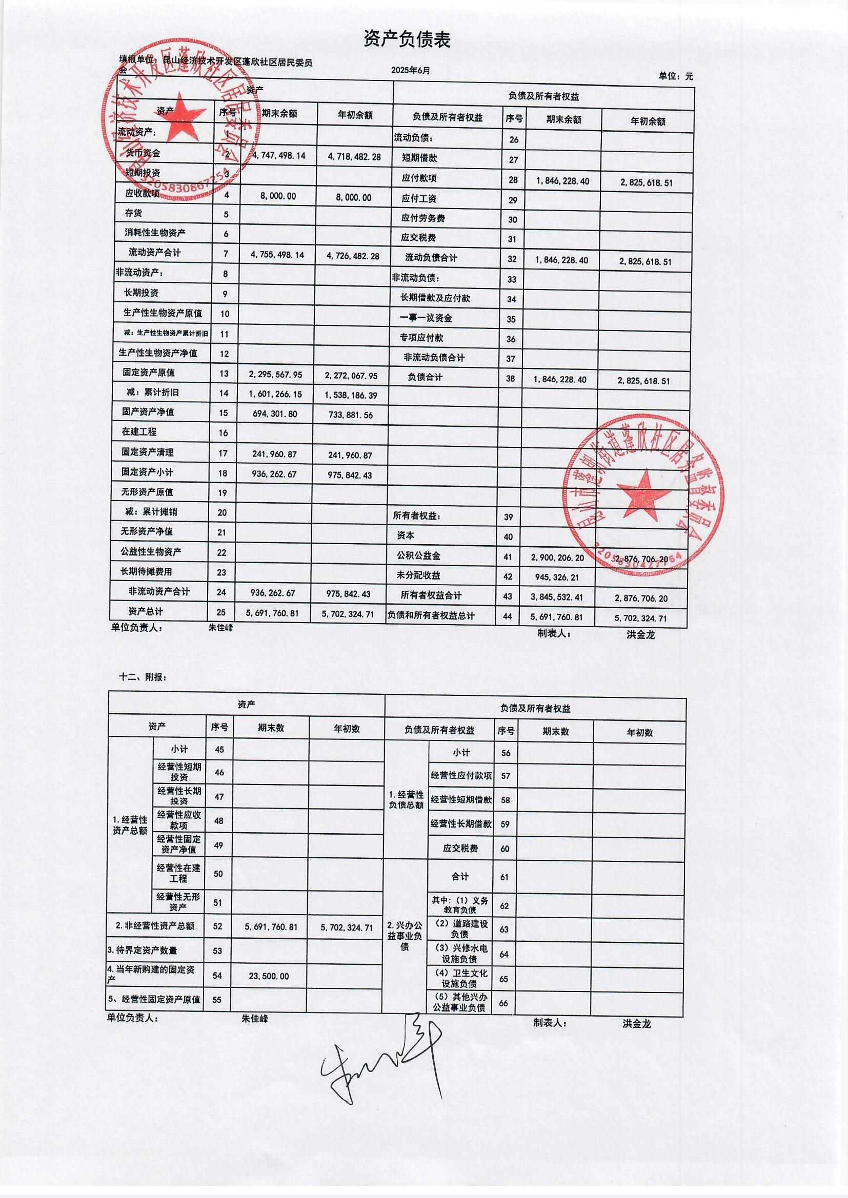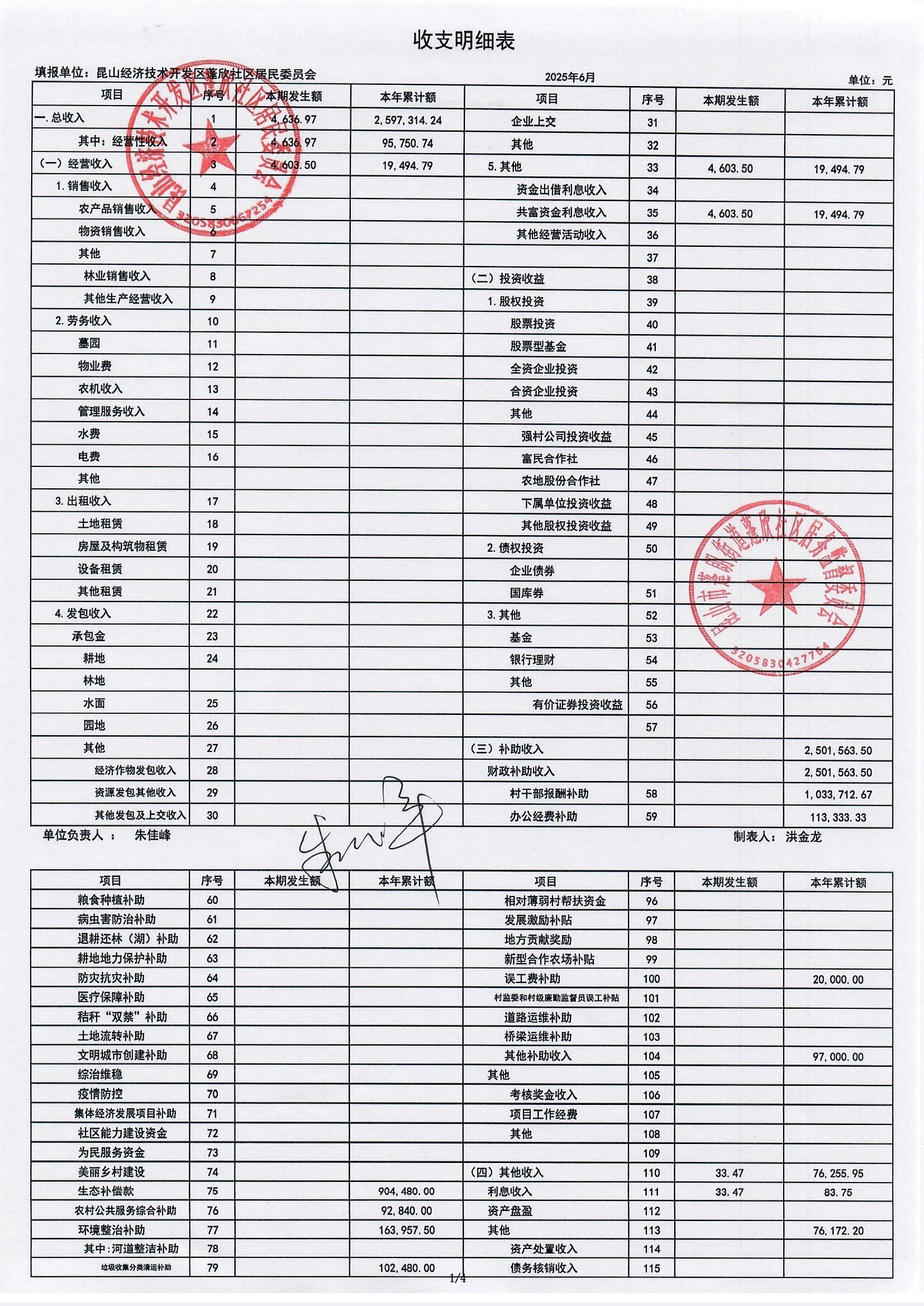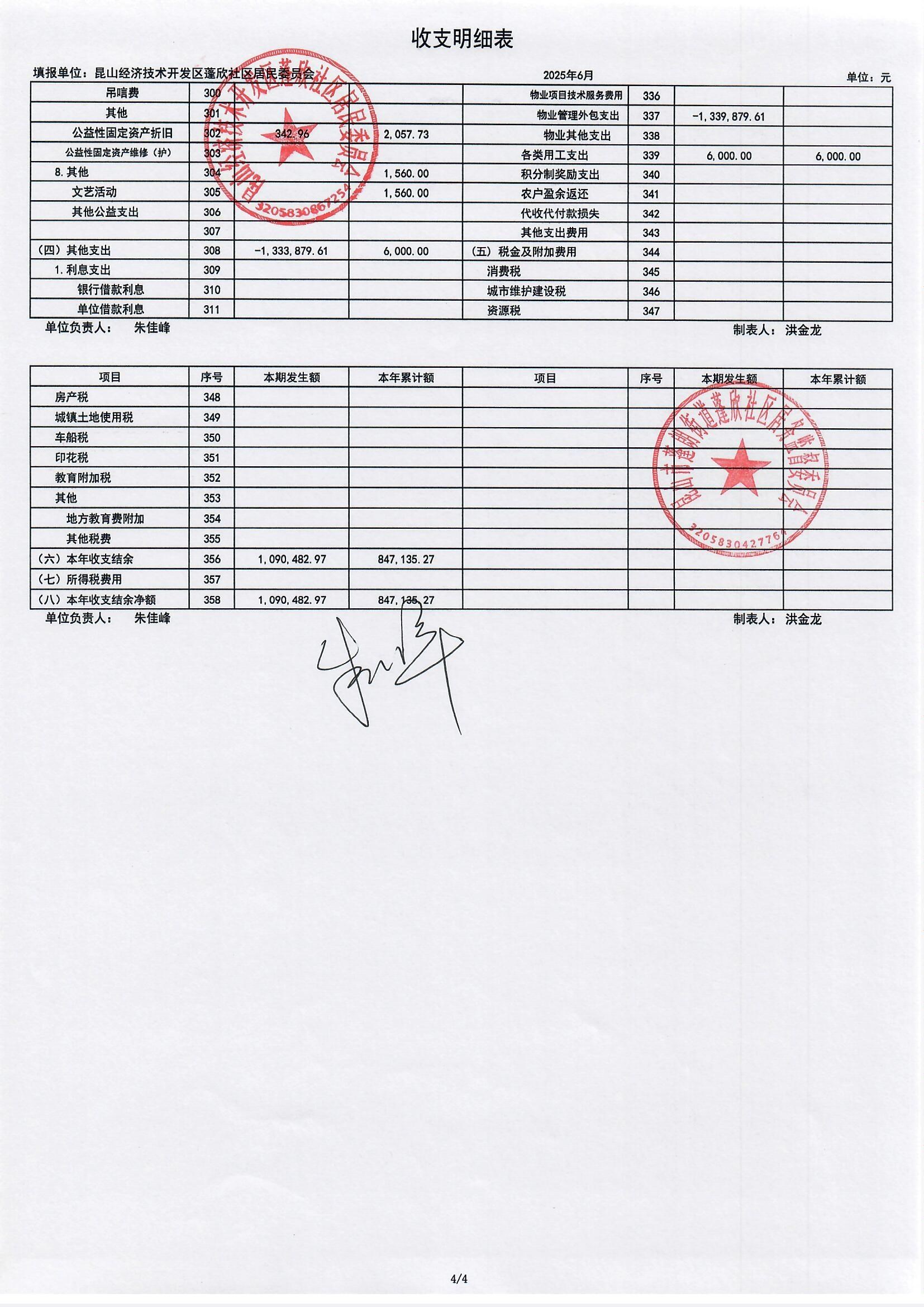 2025年6月份蓬欣社區(qū)財務(wù)公開