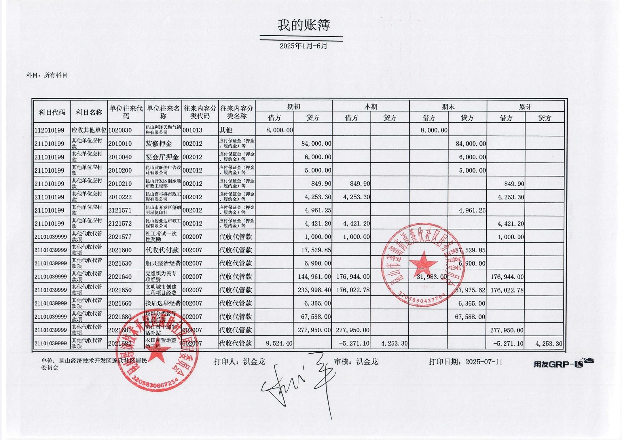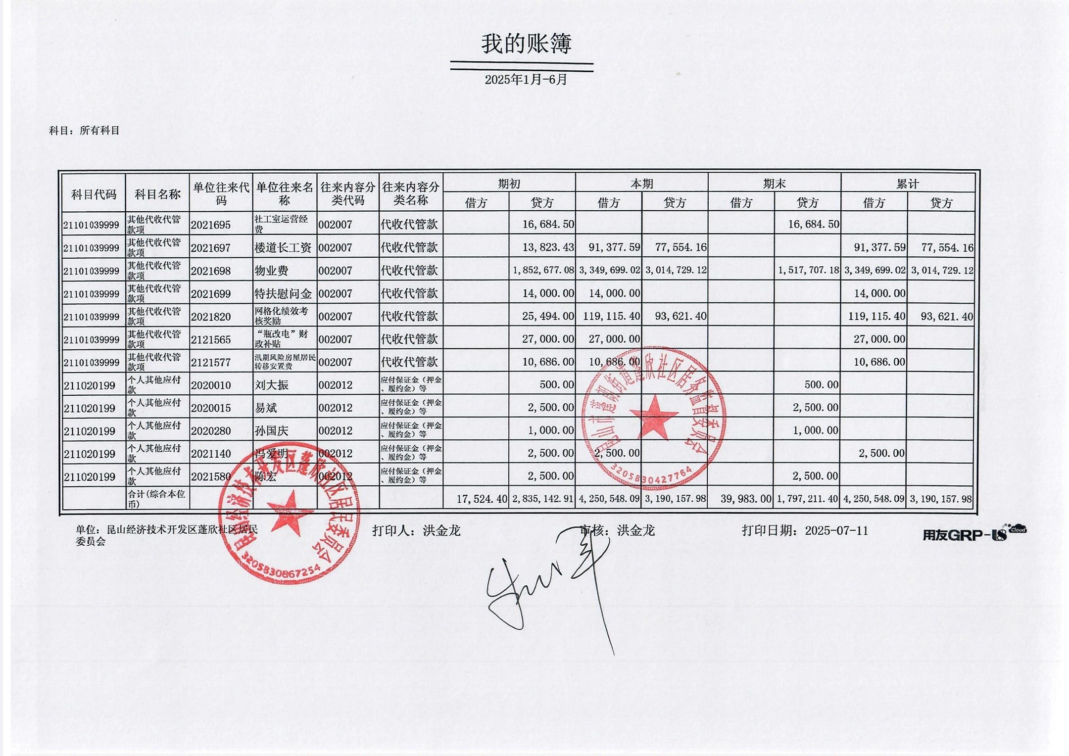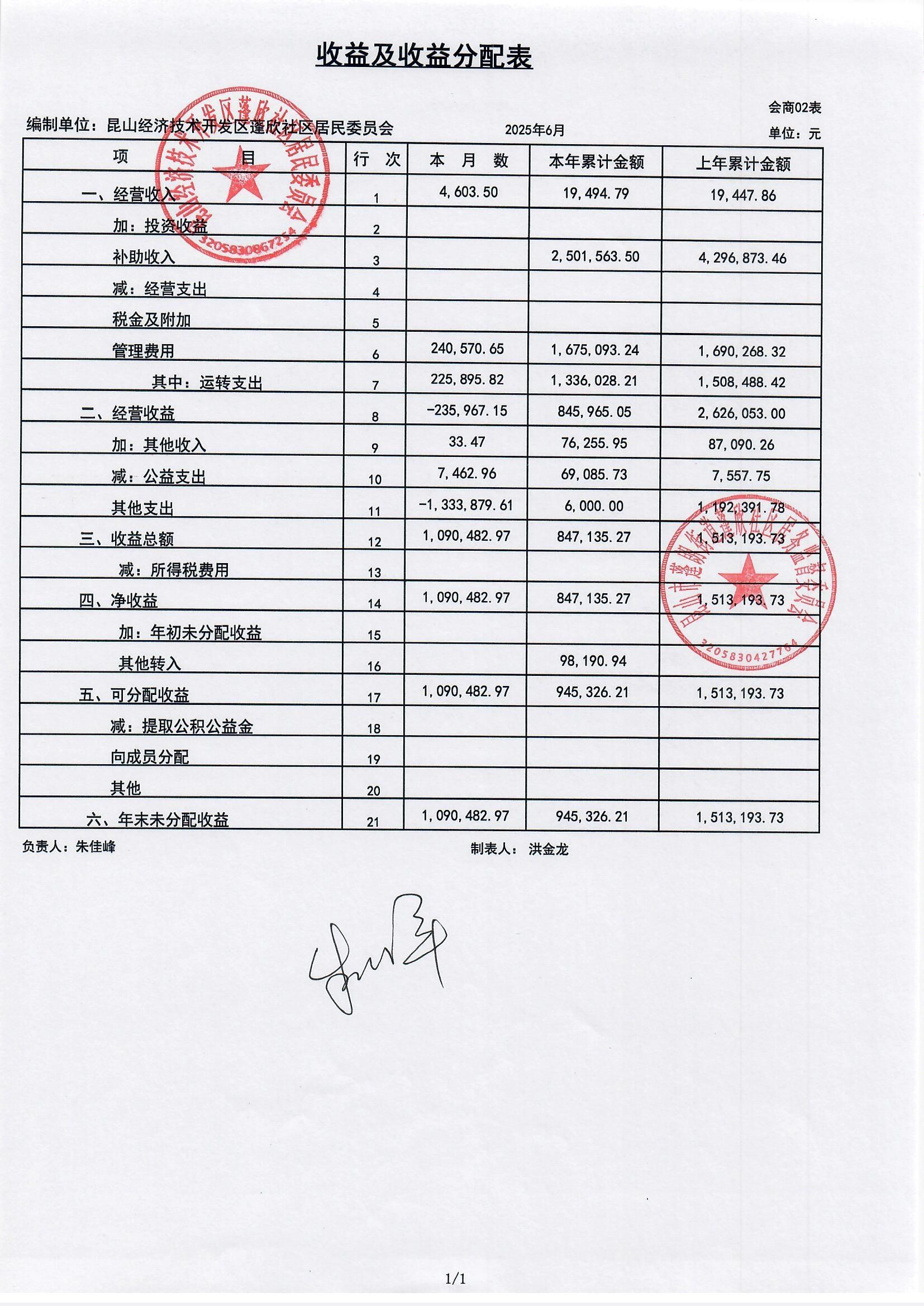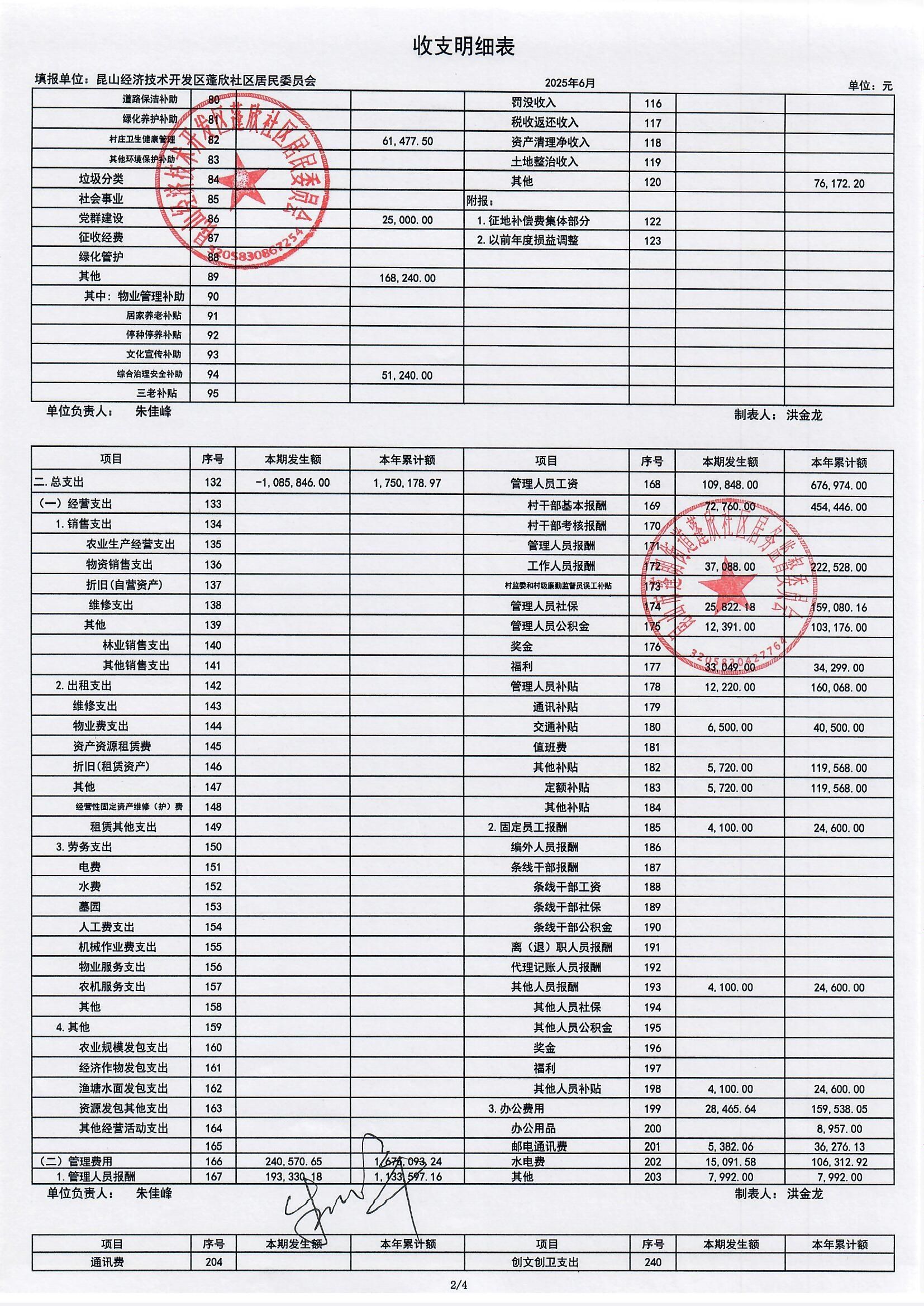 2025年6月份蓬欣社區(qū)財務(wù)公開