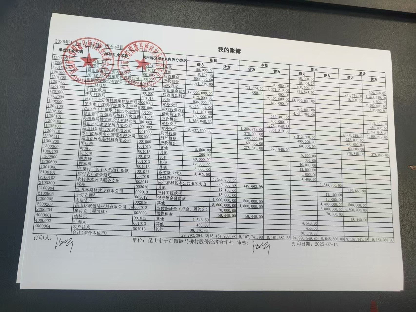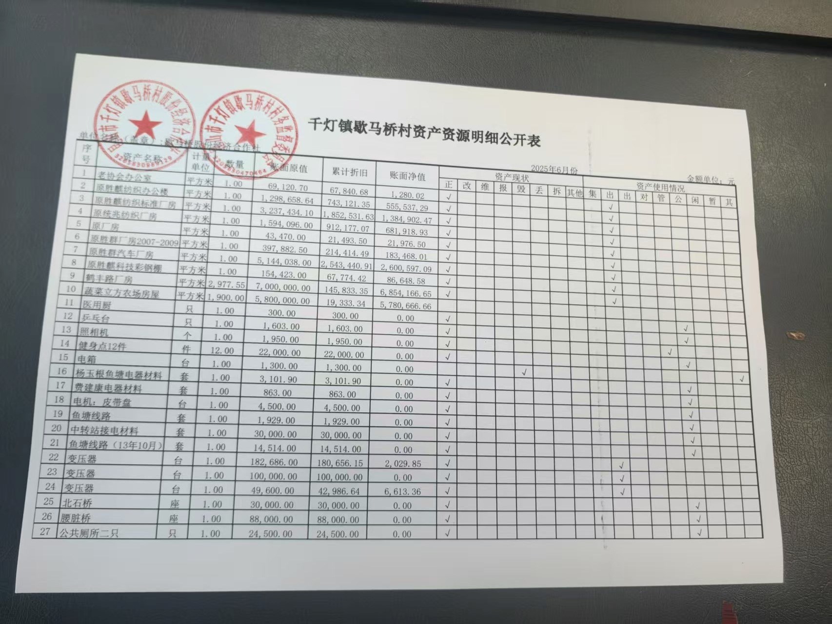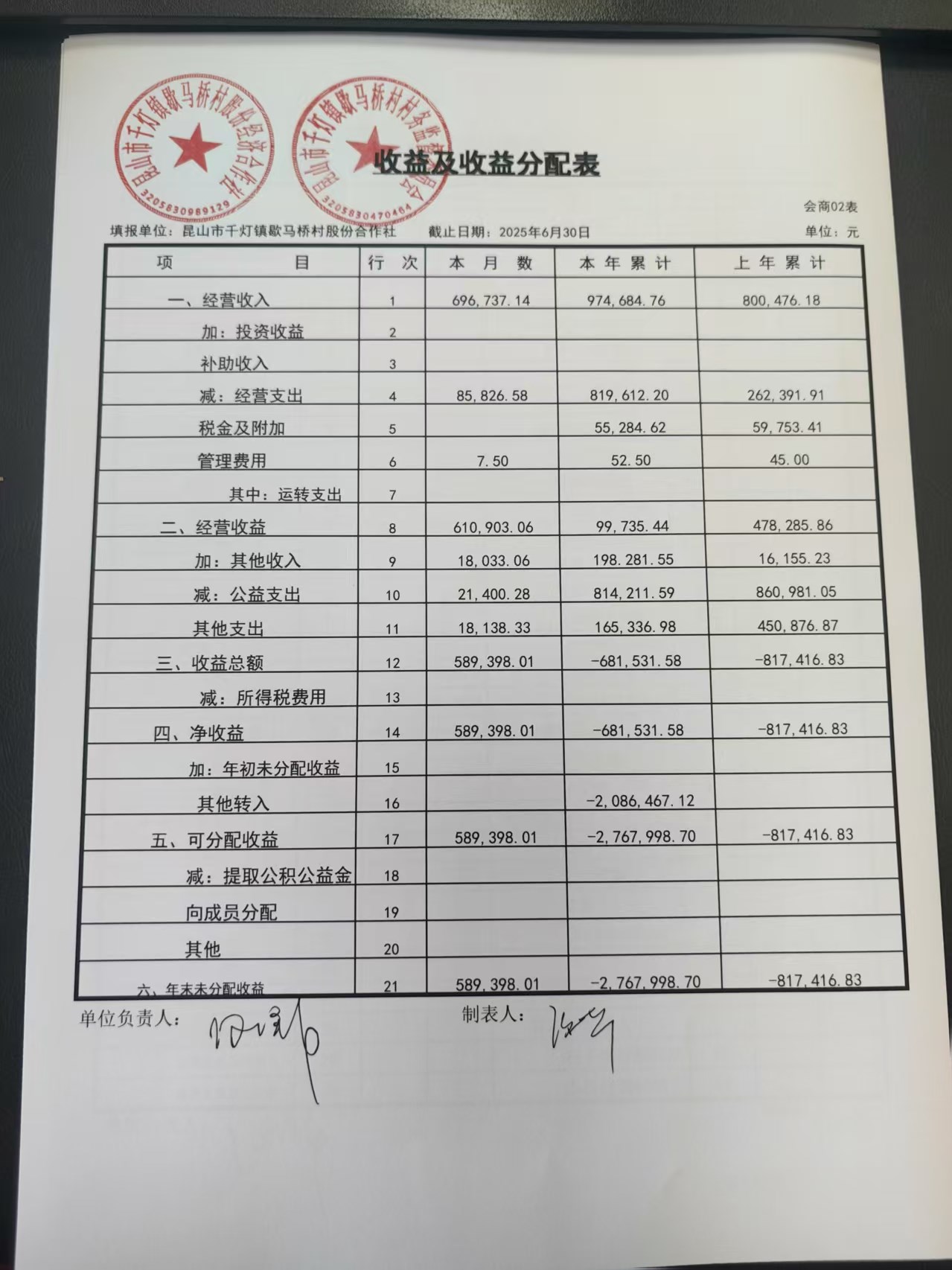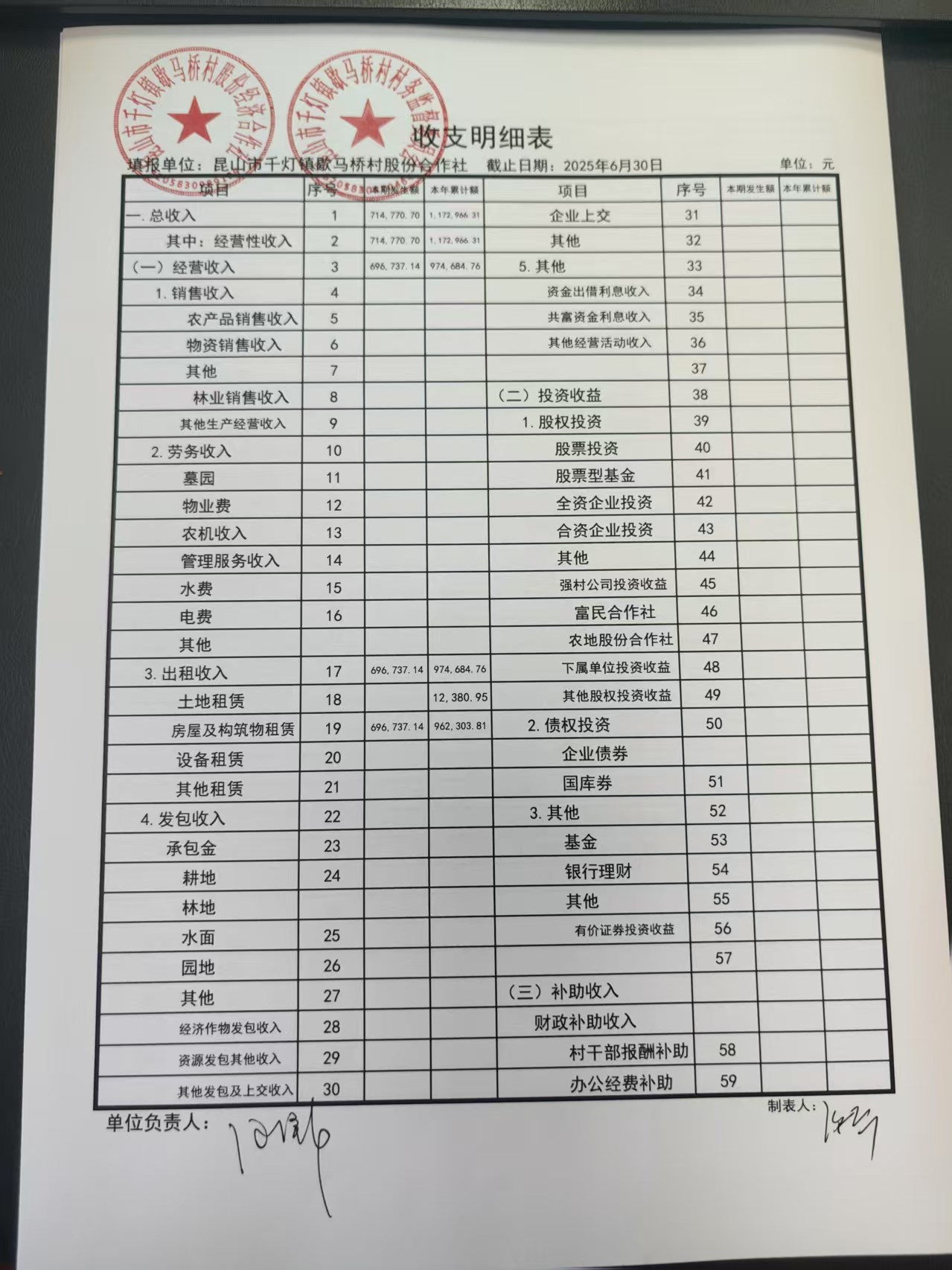 2025年6月份歇馬橋村股份經(jīng)濟(jì)合作社財務(wù)公開