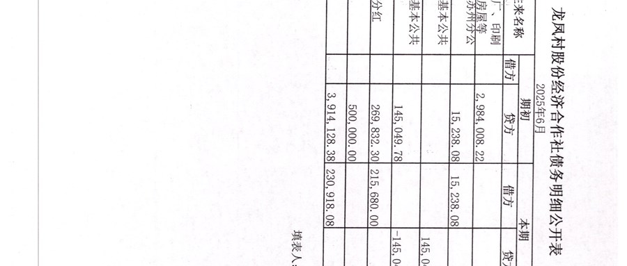 龍鳳村股份經(jīng)濟(jì)合作社2025年7月份財(cái)務(wù)公開