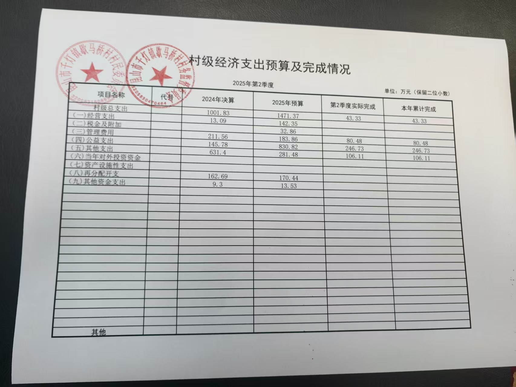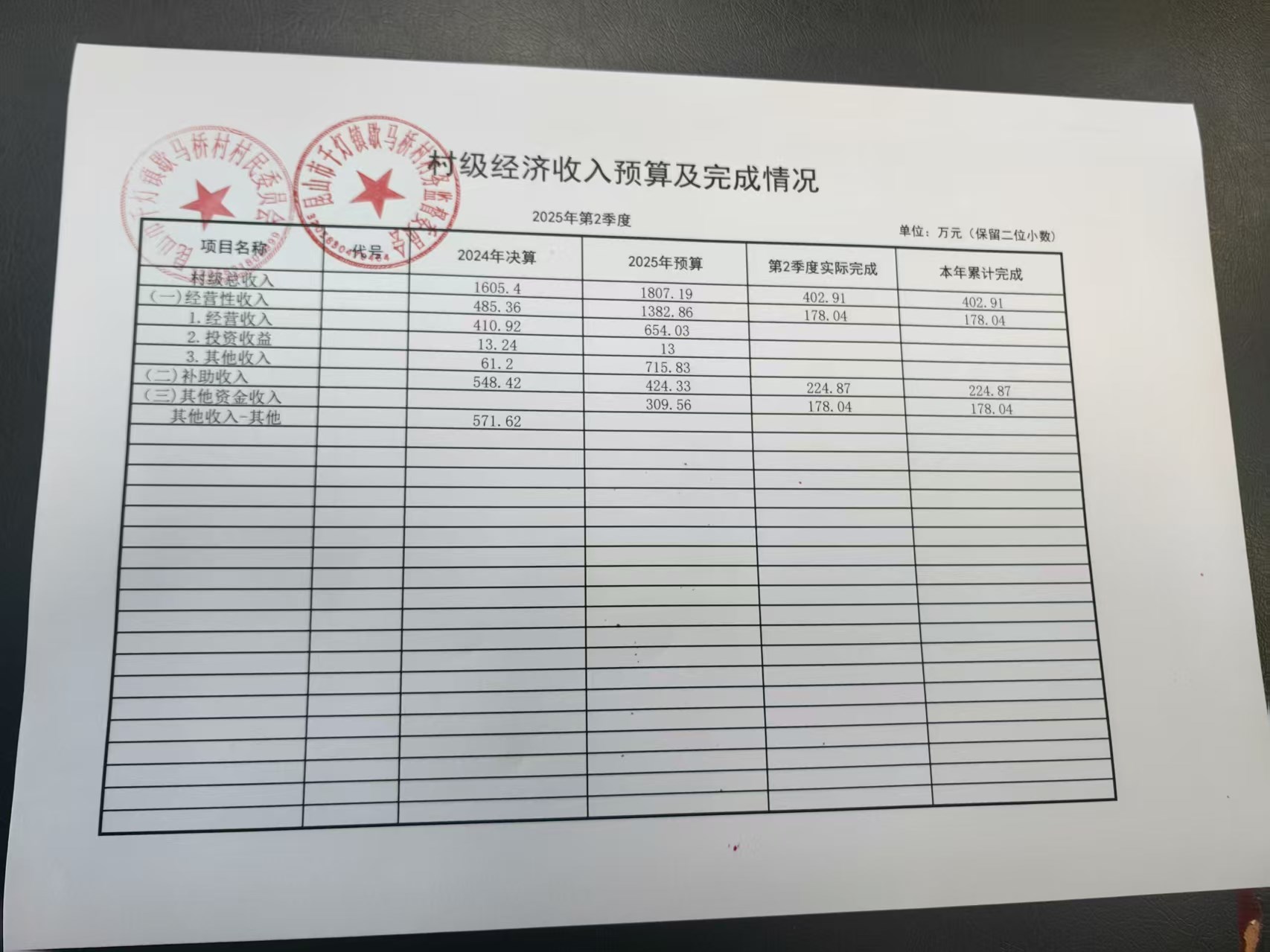 2025年第二季度村級(jí)經(jīng)濟(jì)收支預(yù)算及完成情況