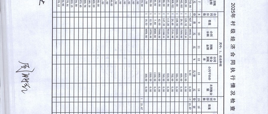 2025年第二季度民和村村級(jí)經(jīng)濟(jì)合同執(zhí)行情況表公示
