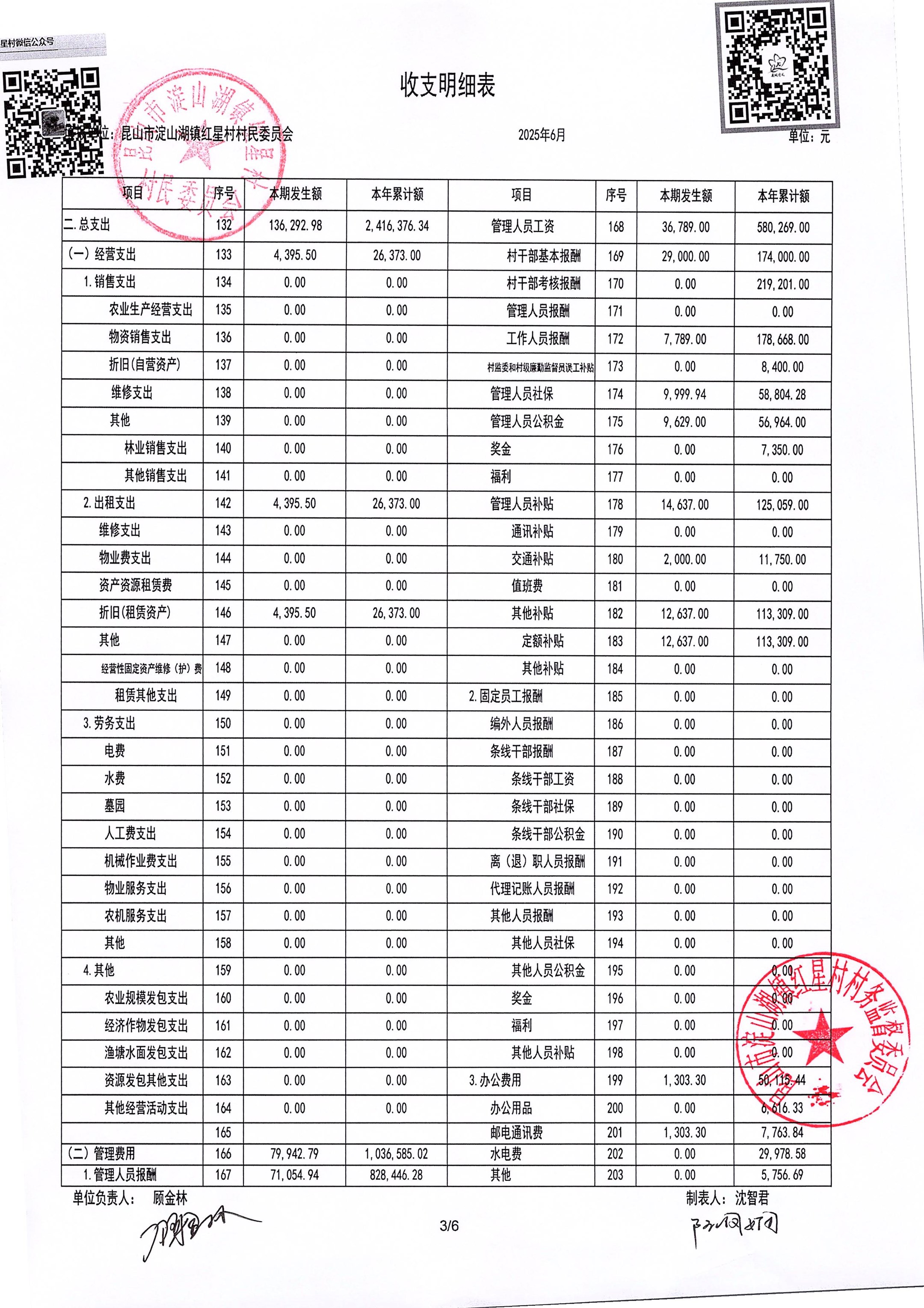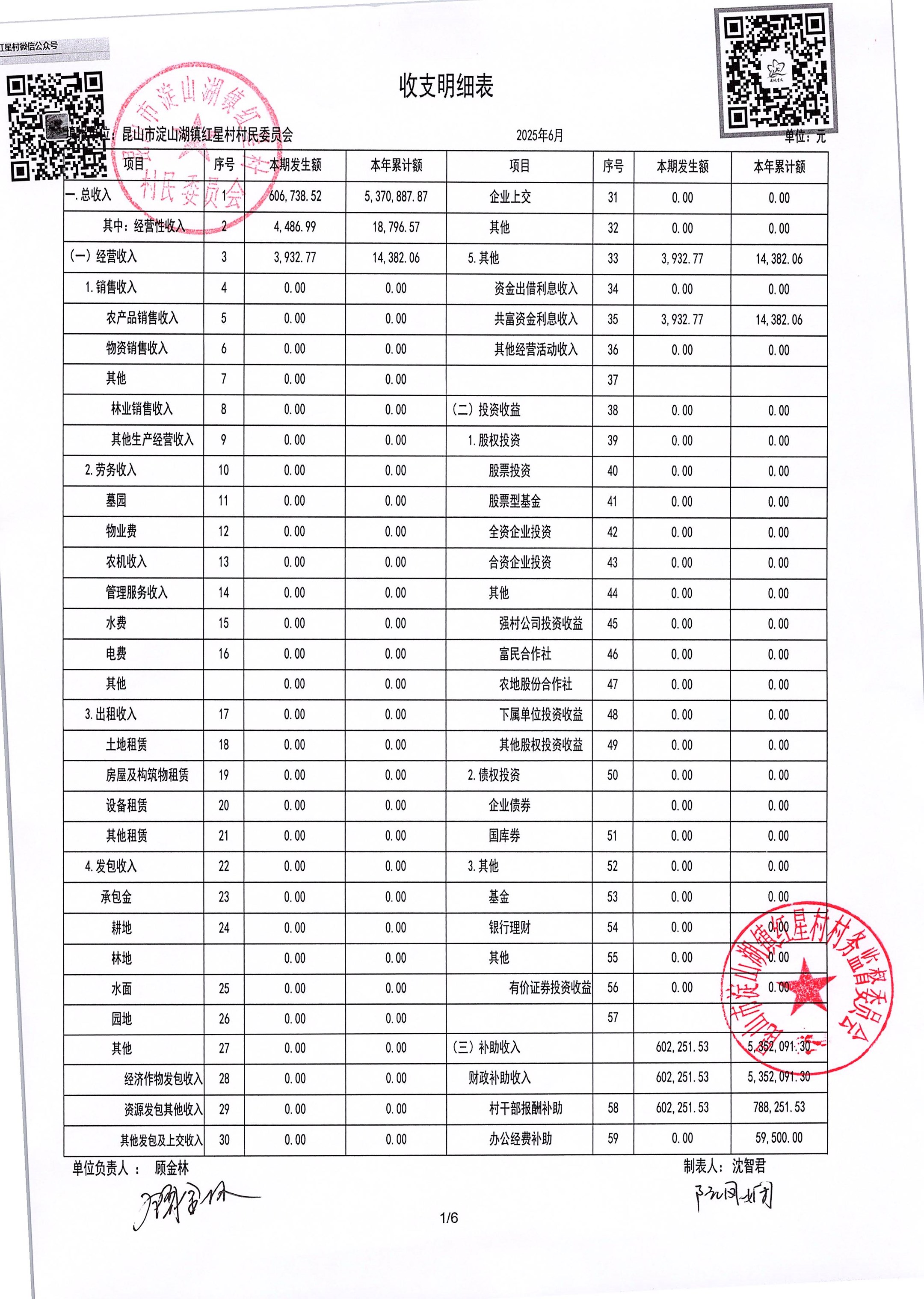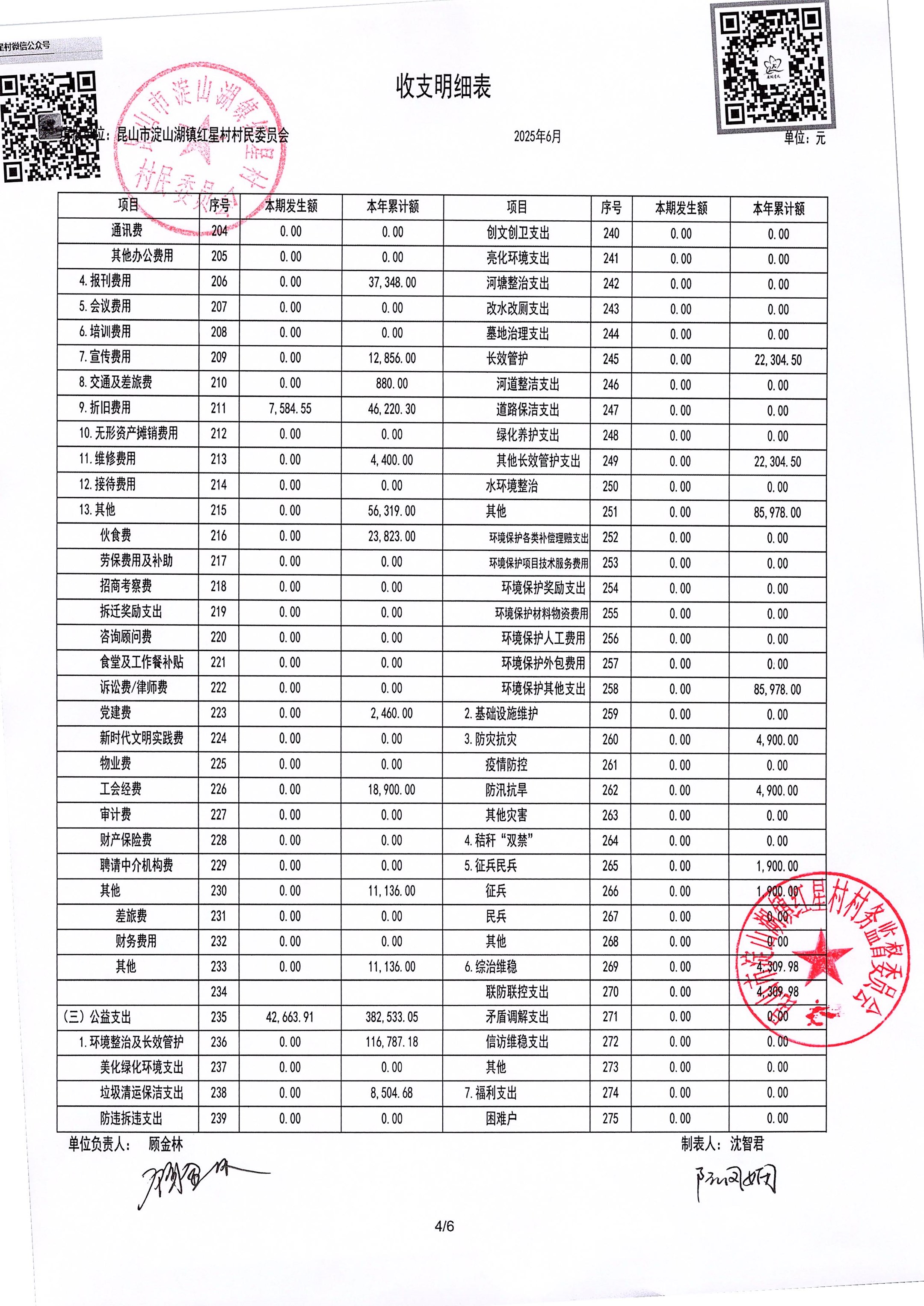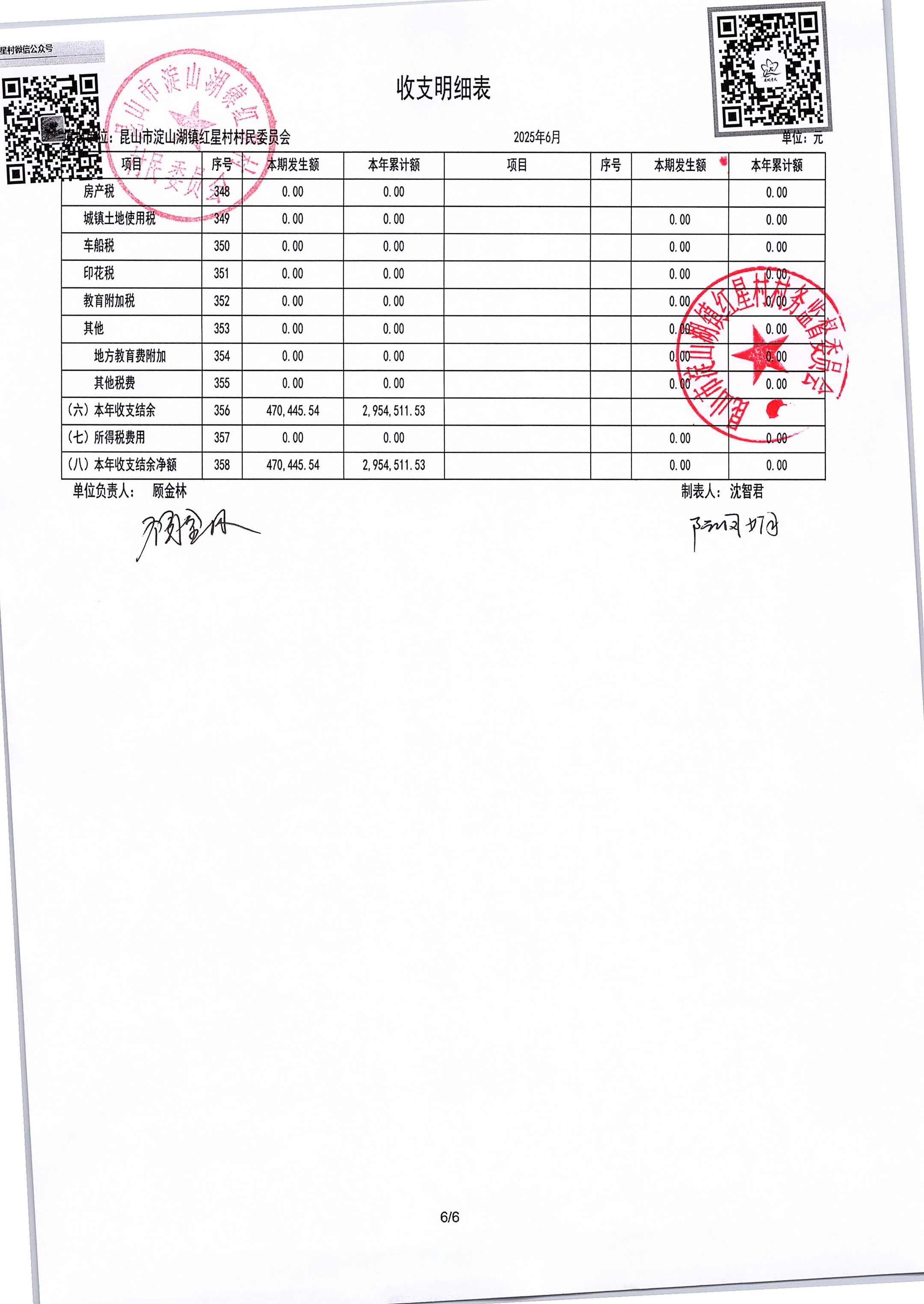 紅星村2025年6月村級(jí)財(cái)務(wù)公開(kāi)