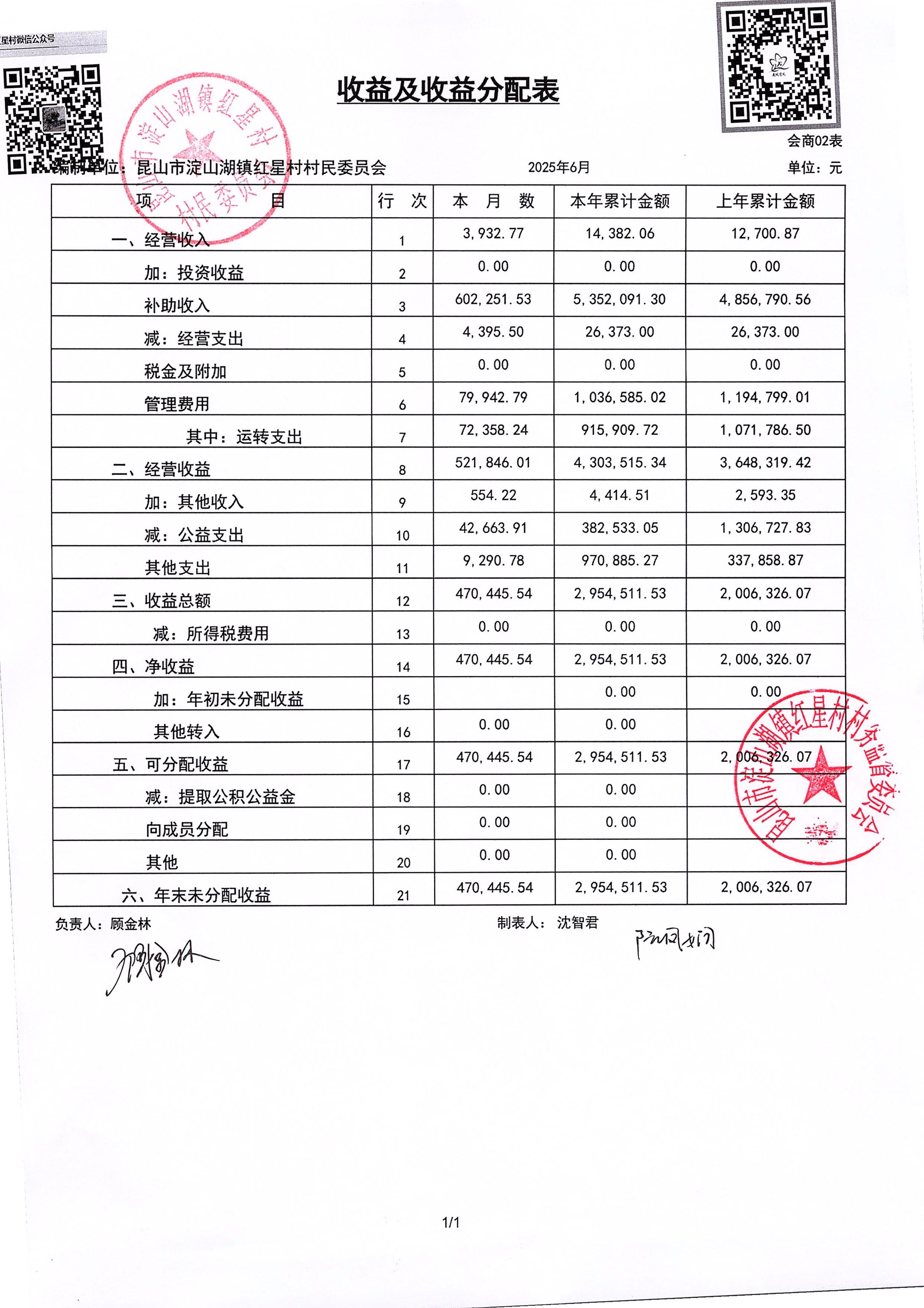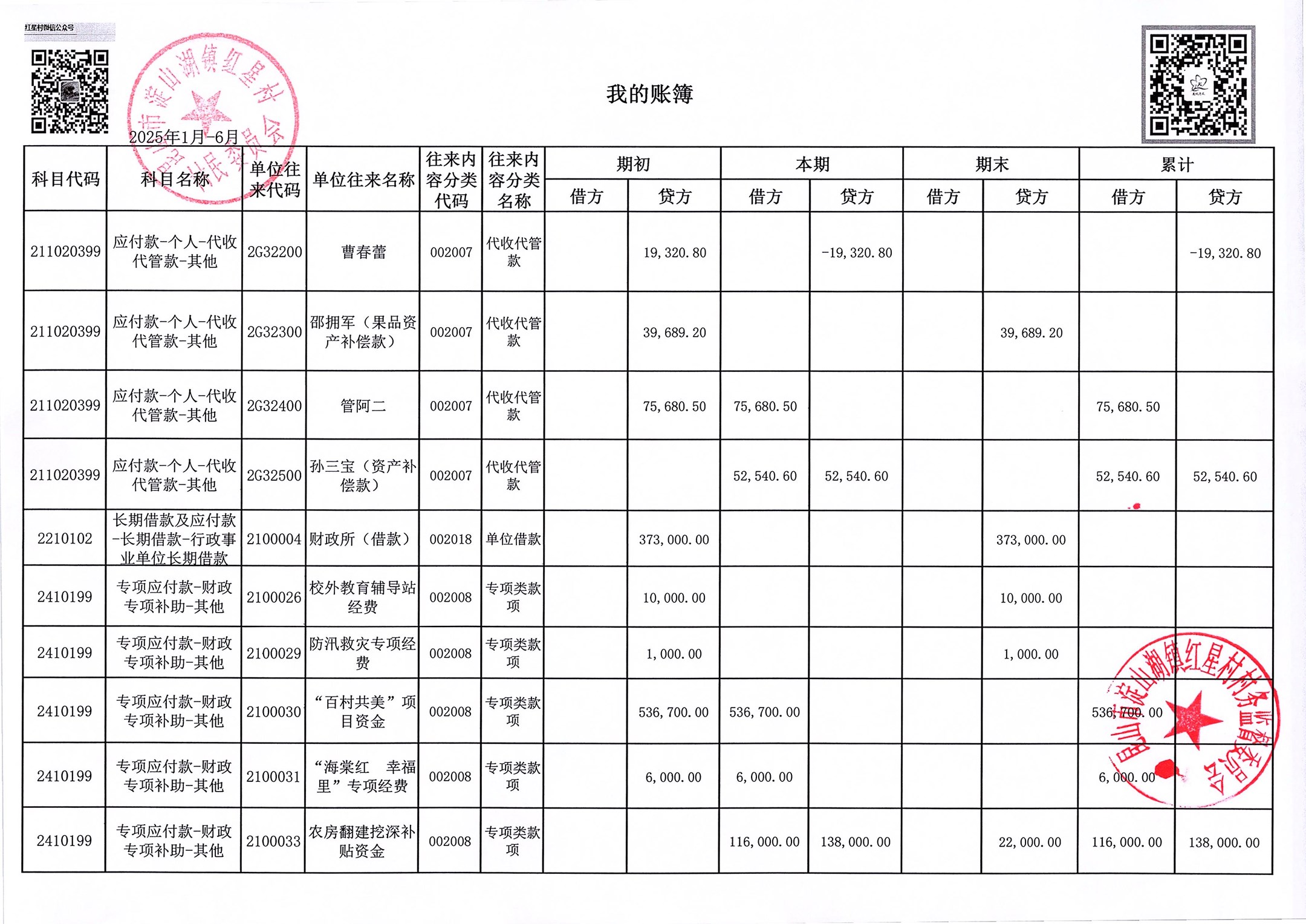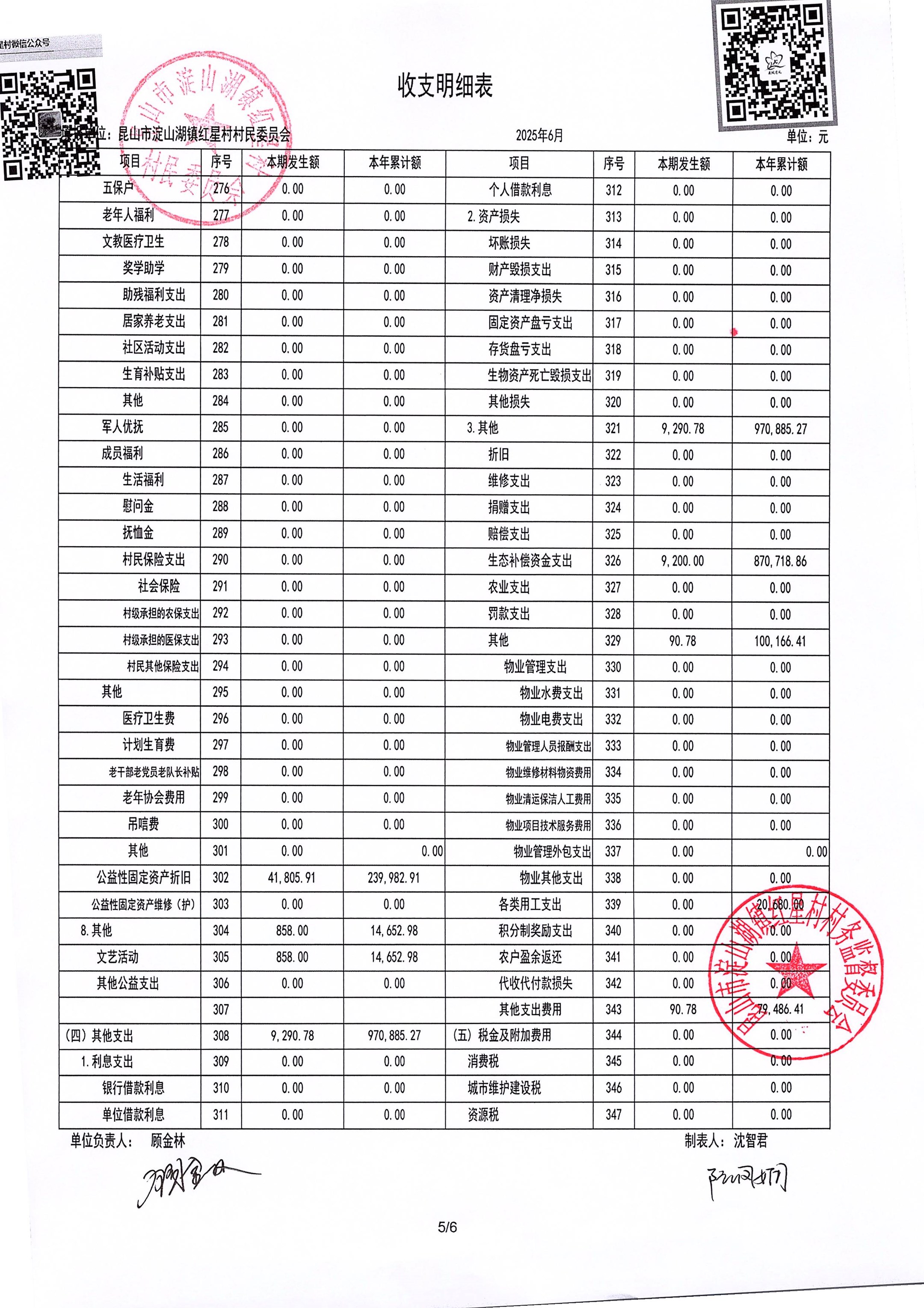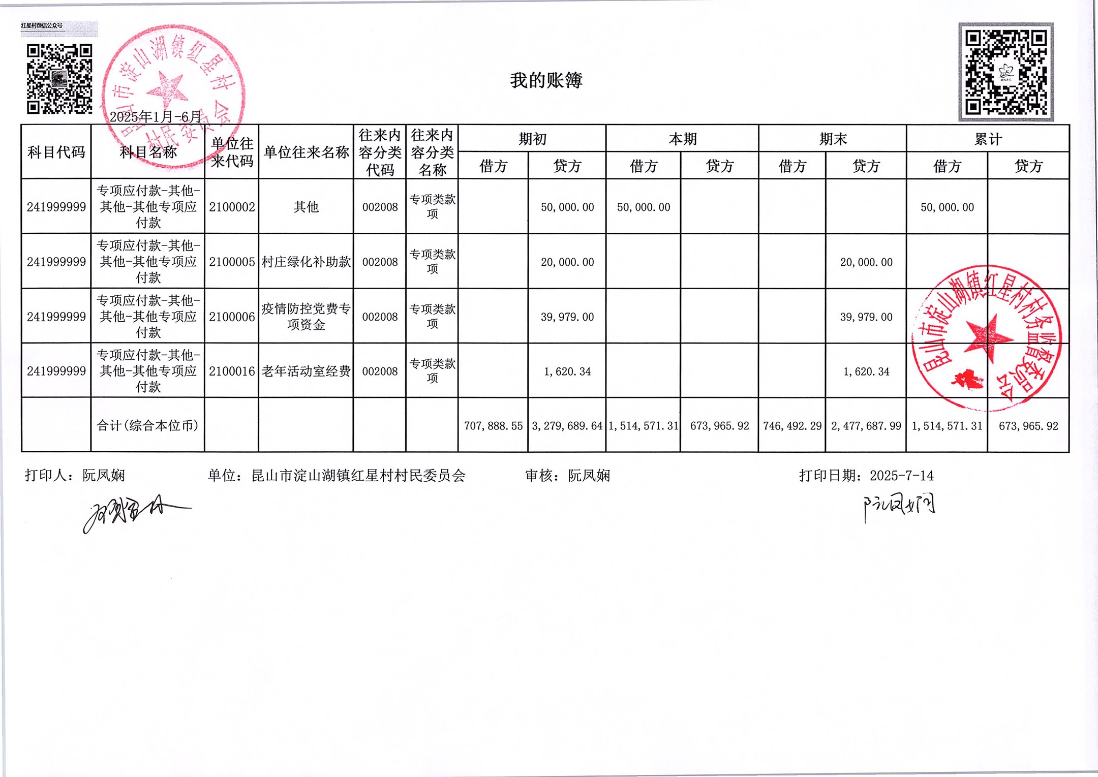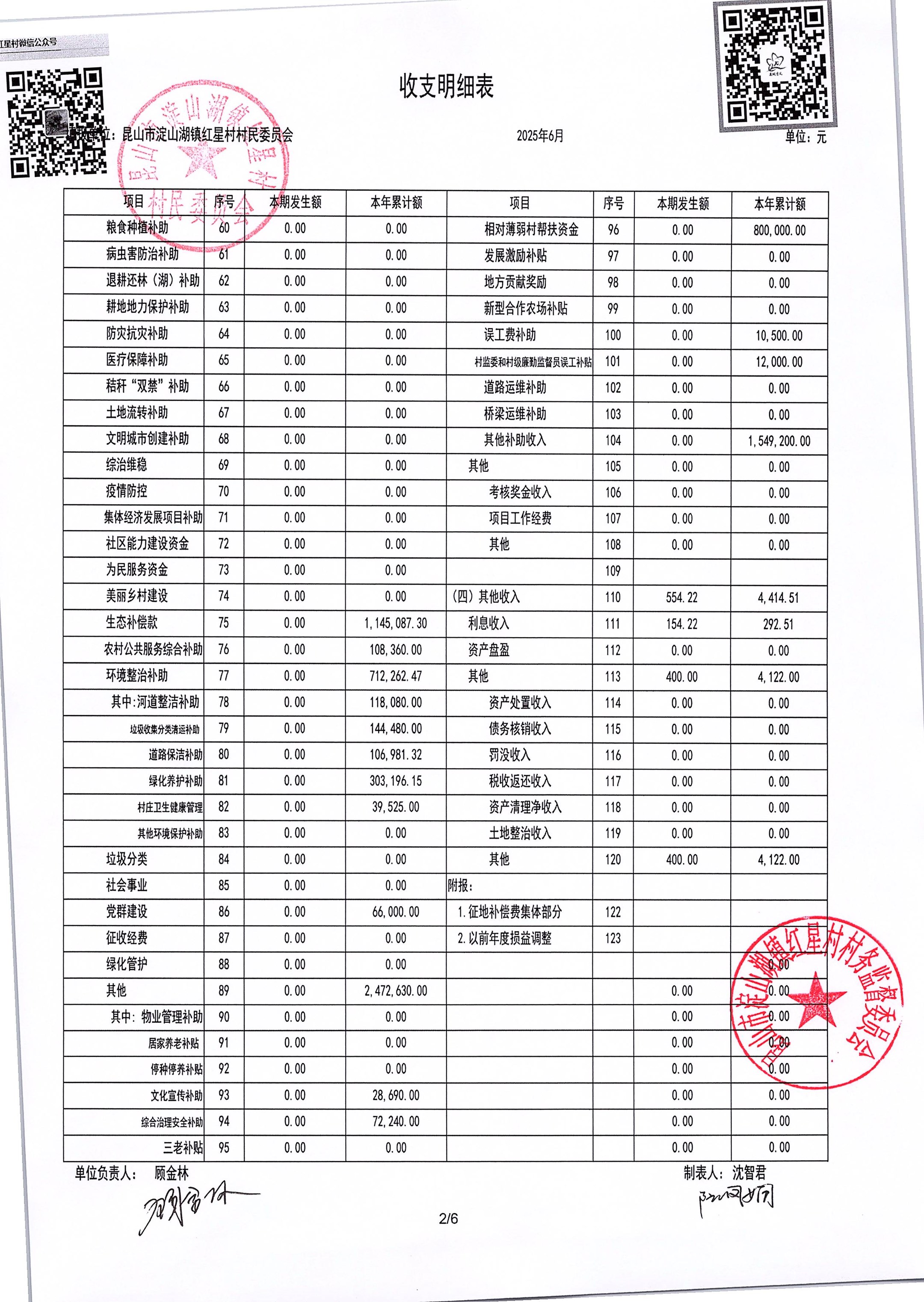 紅星村2025年6月村級(jí)財(cái)務(wù)公開(kāi)
