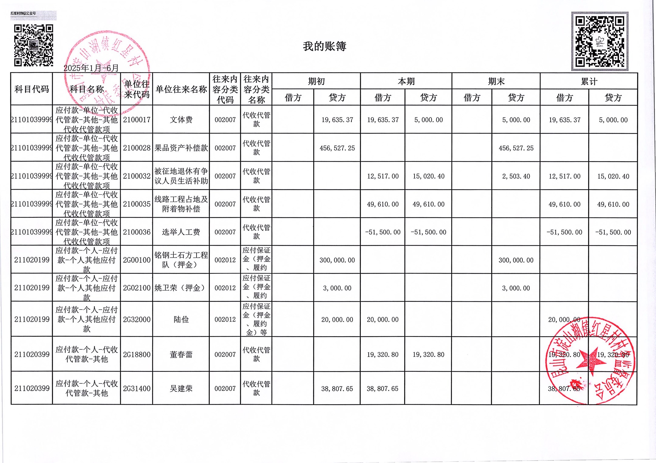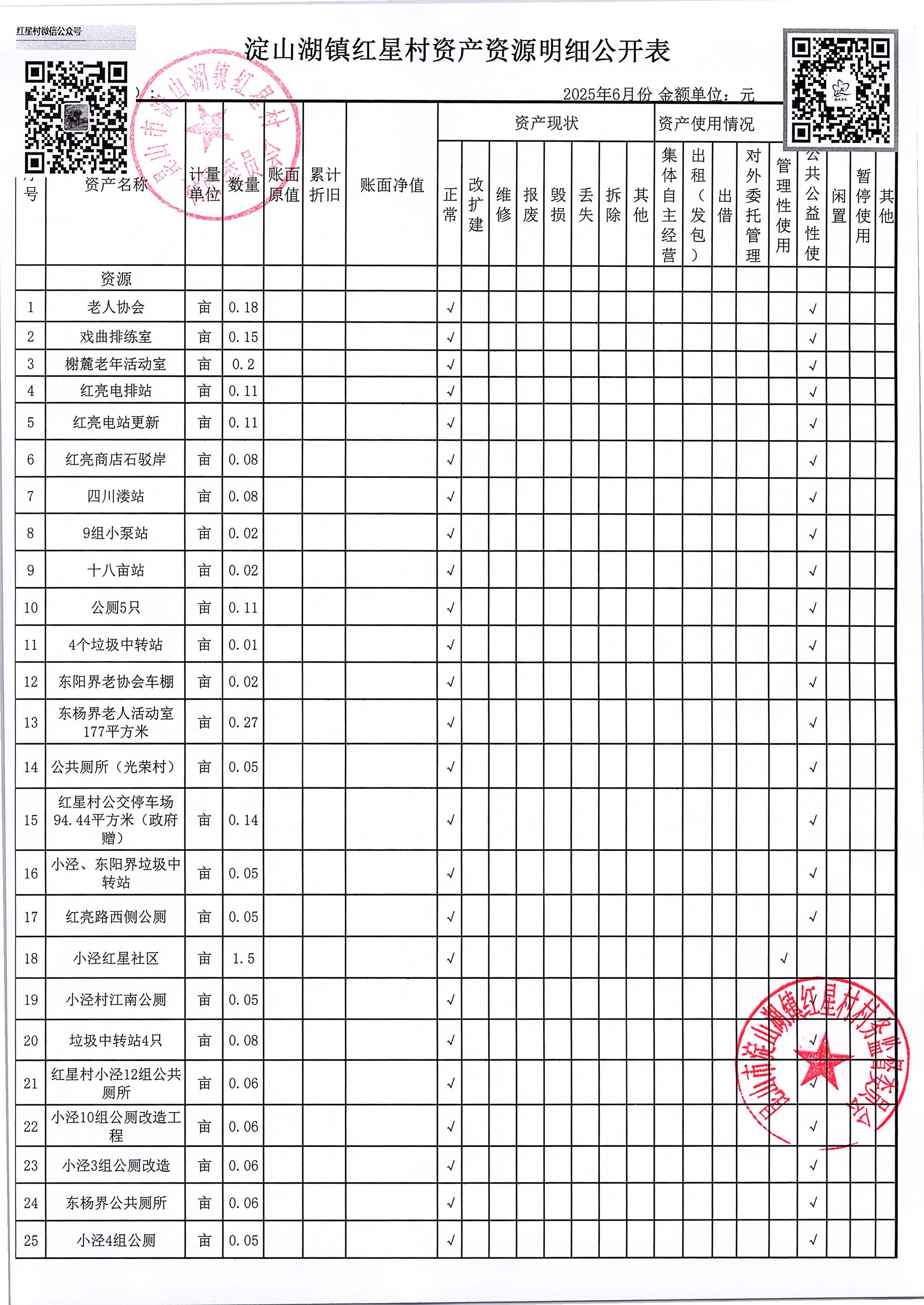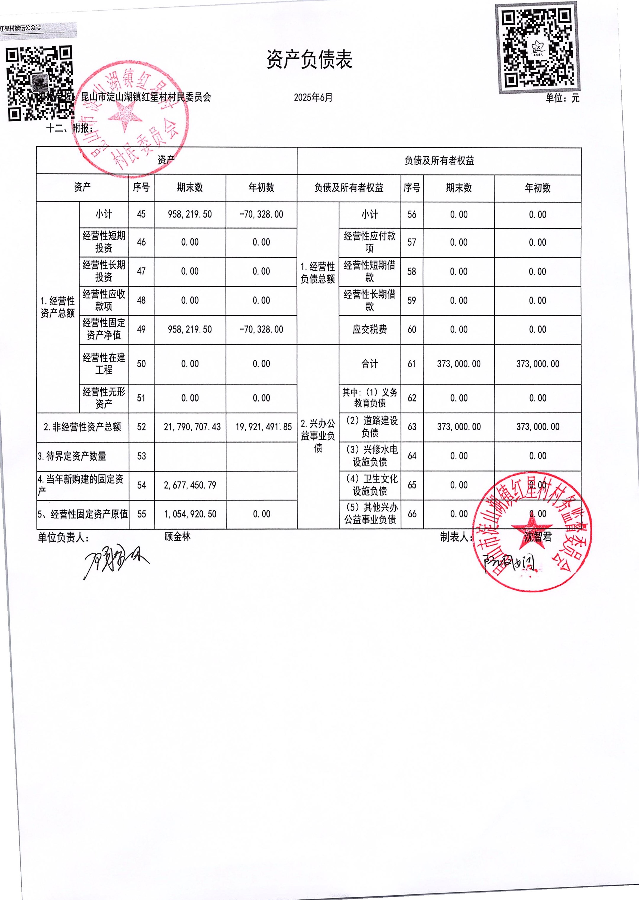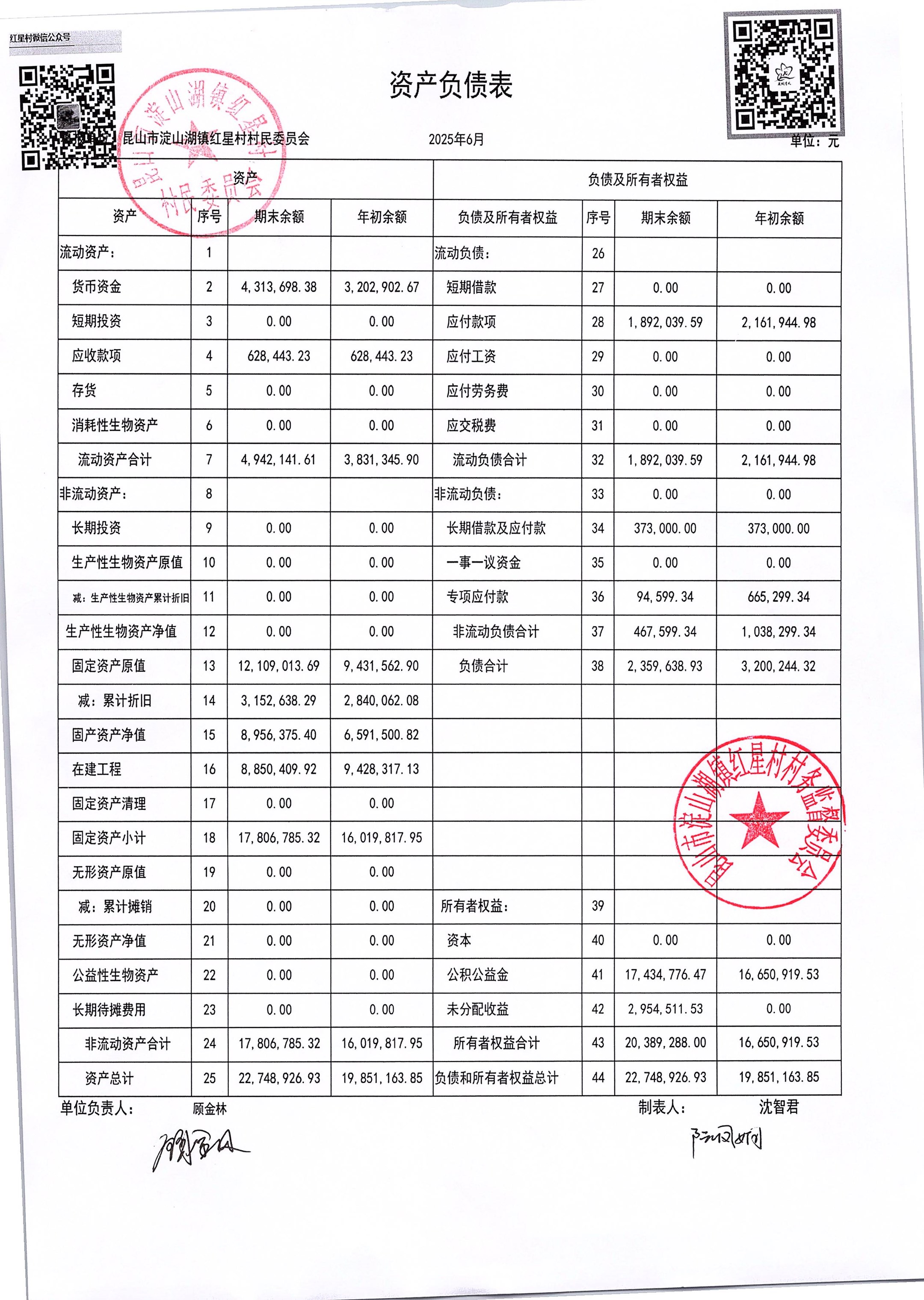 紅星村2025年6月村級(jí)財(cái)務(wù)公開(kāi)