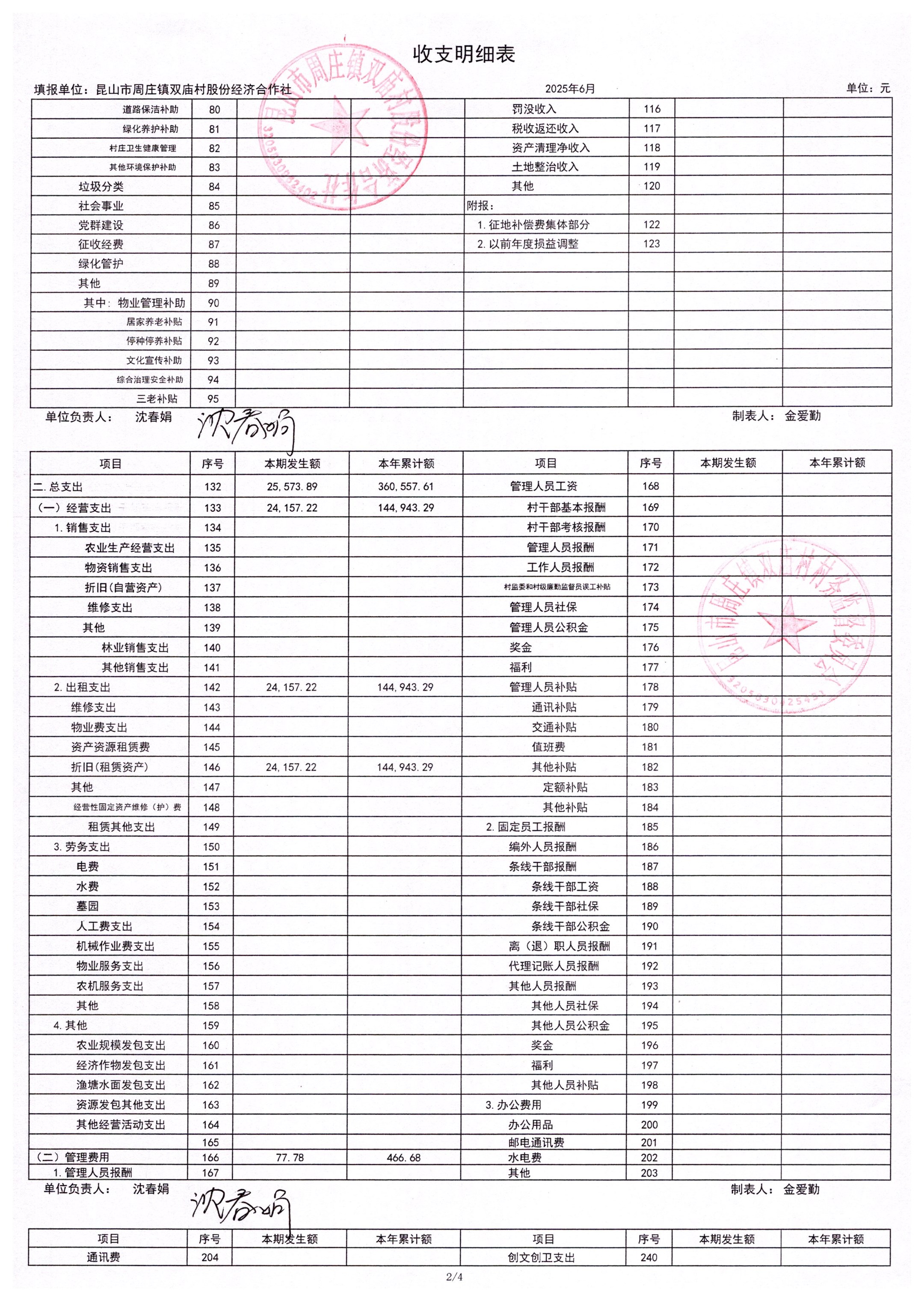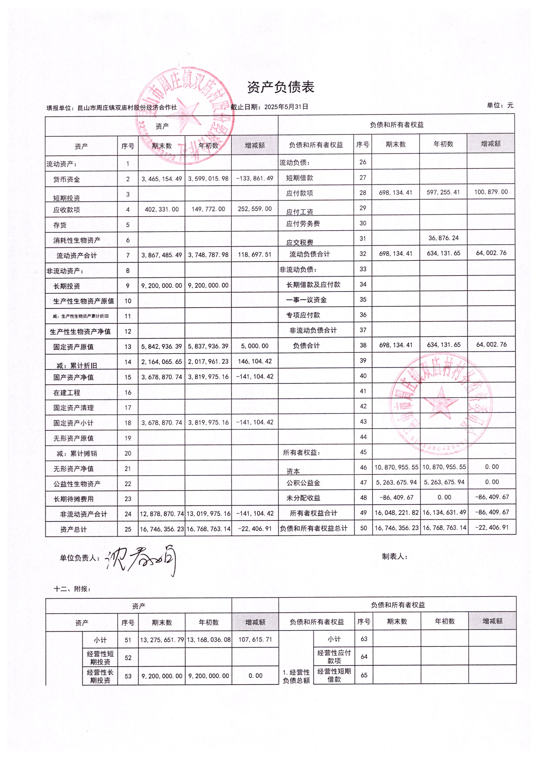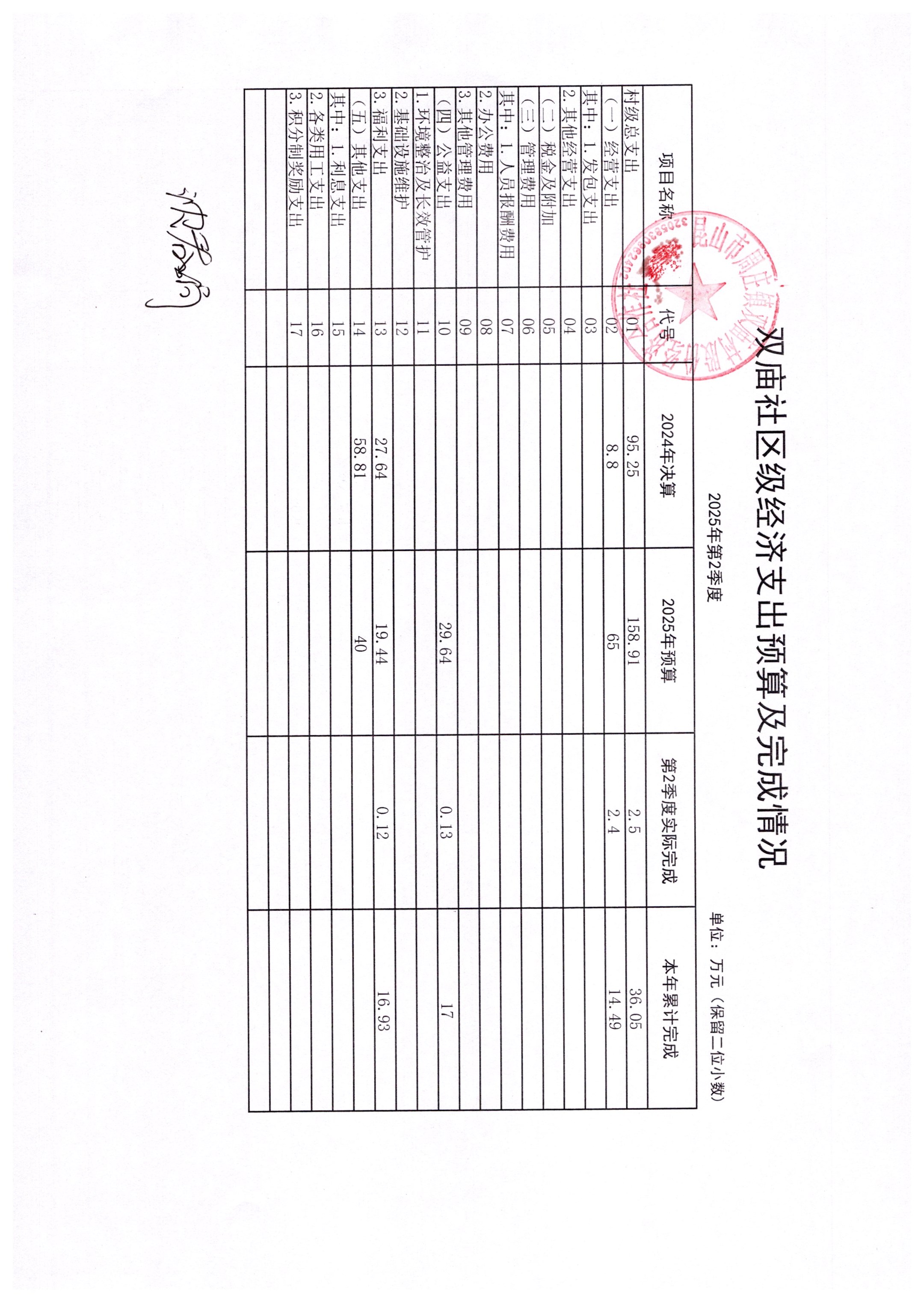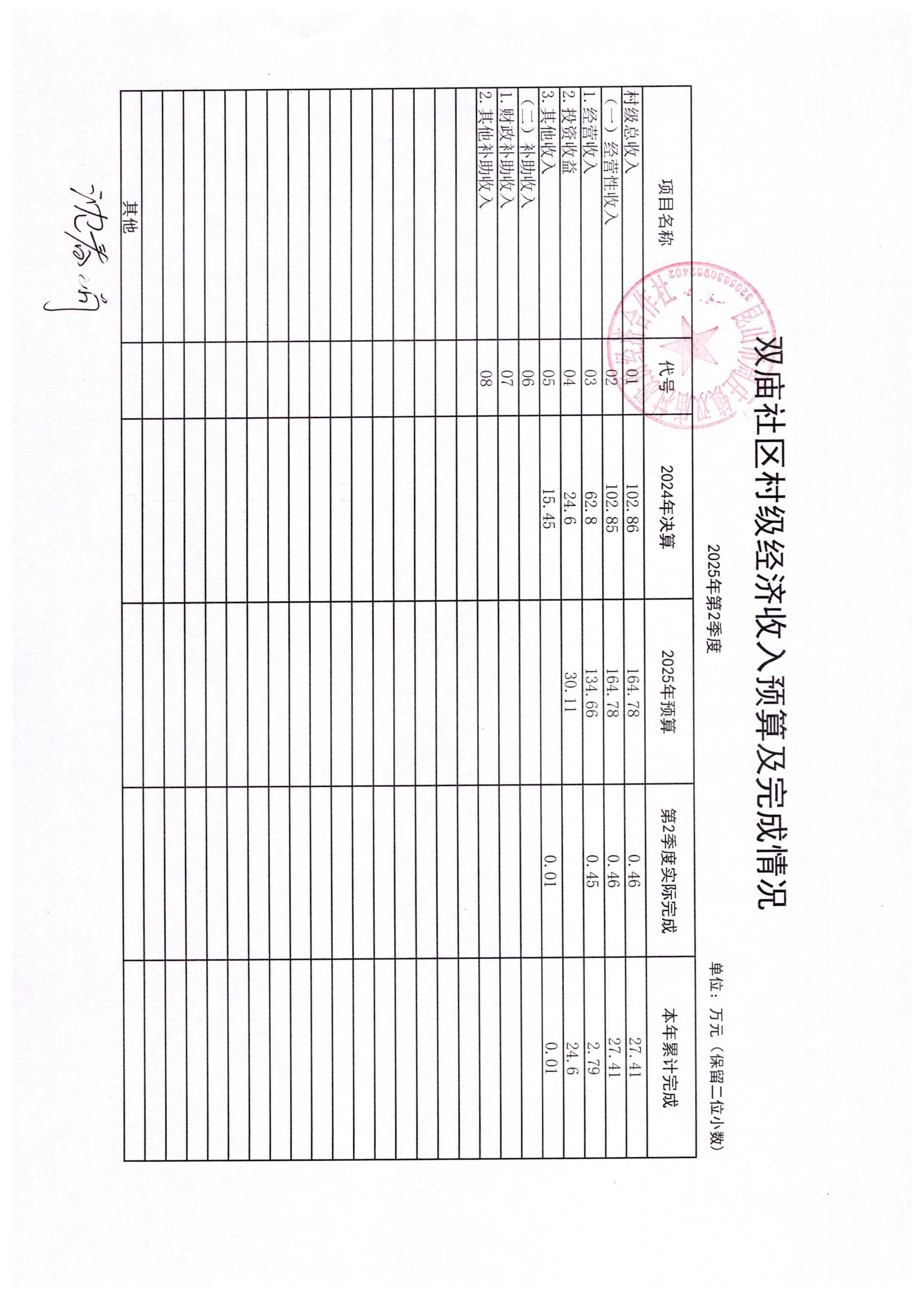2025年第2季度財務公開-雙廟村股份經(jīng)濟合作社財務公開