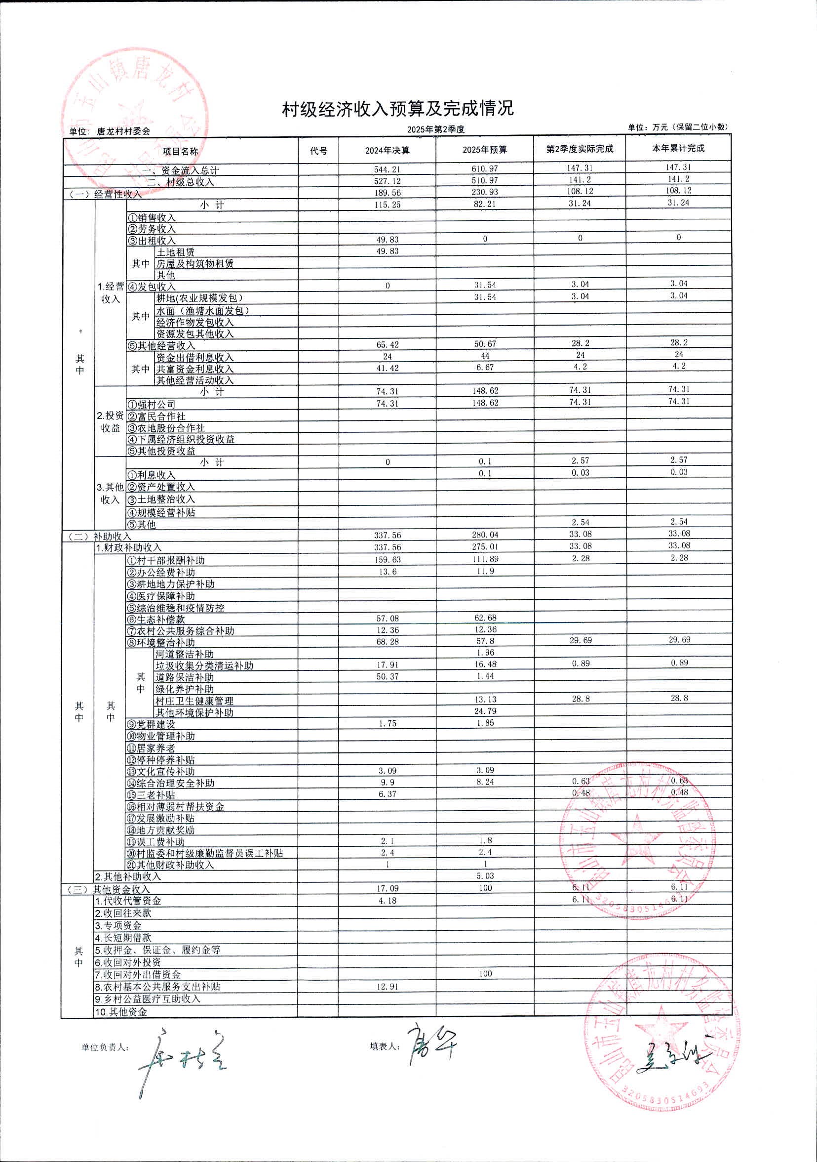 2025年第2季度村級(jí)經(jīng)濟(jì)收入預(yù)算及完成情況