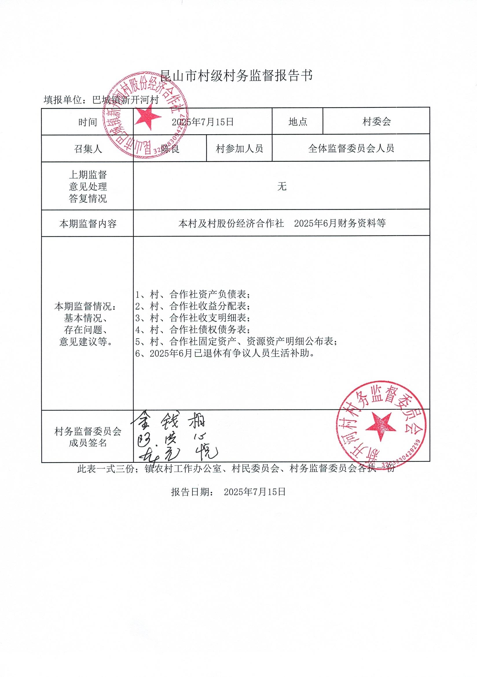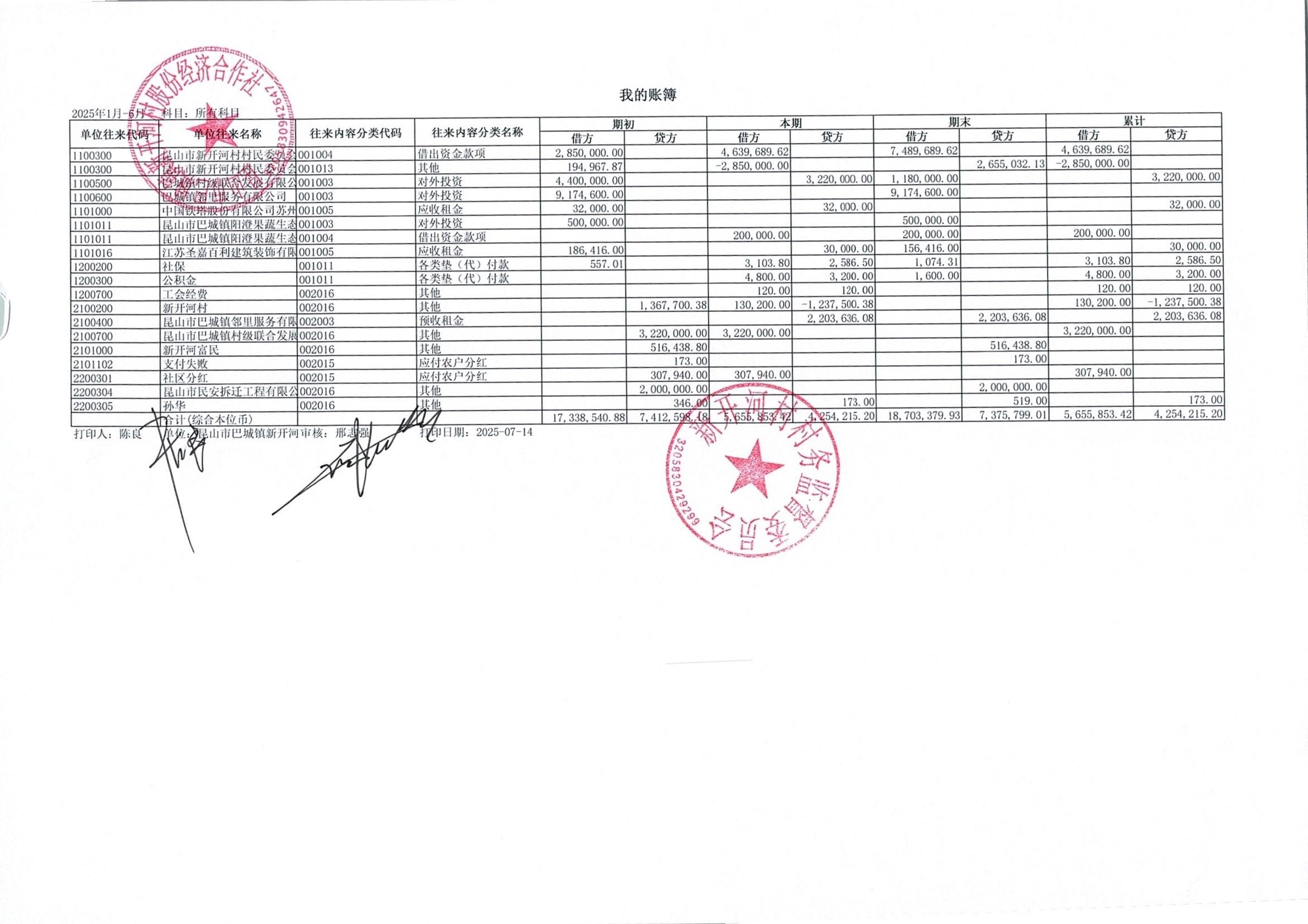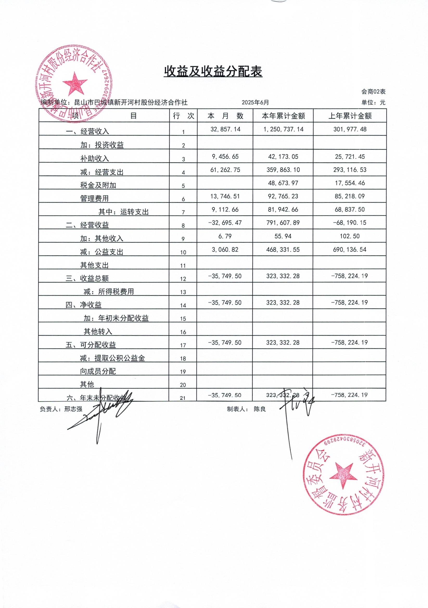 新開河村股份經(jīng)濟(jì)合作社2025年6月財(cái)務(wù)公開