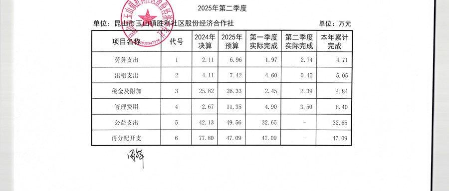 勝利合作社第二季度經(jīng)濟(jì)收入、支出預(yù)算及完成情況