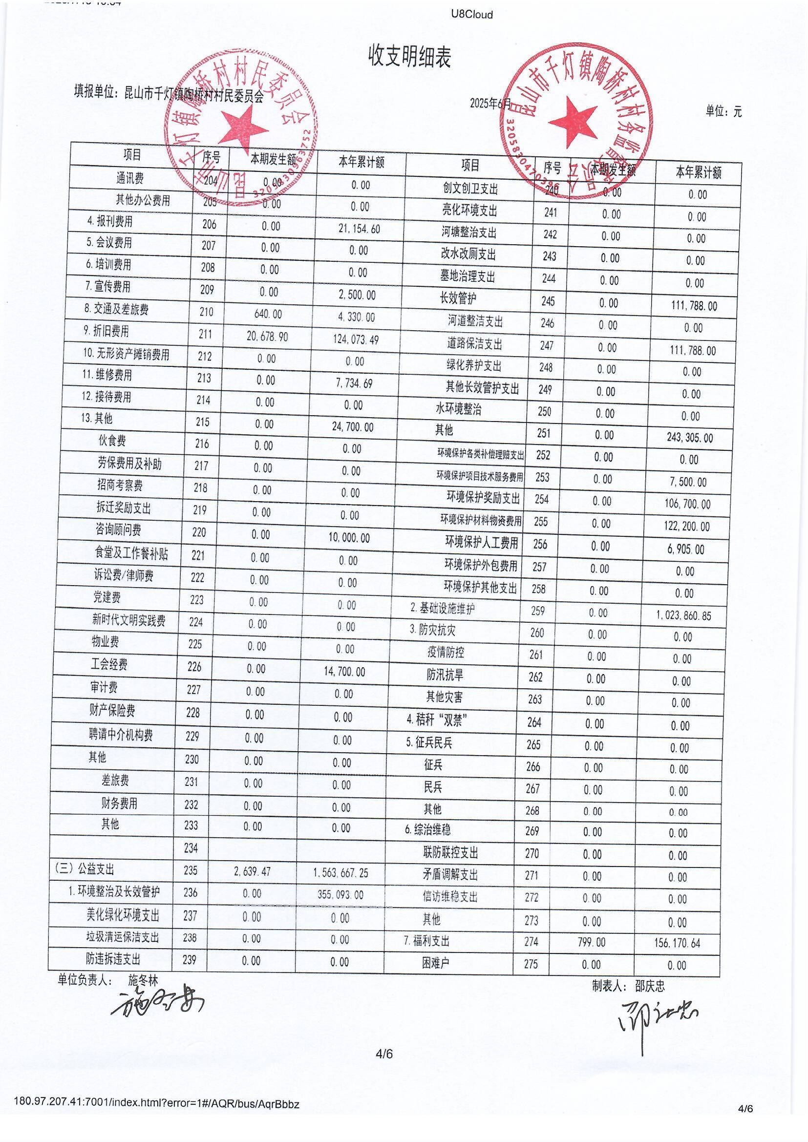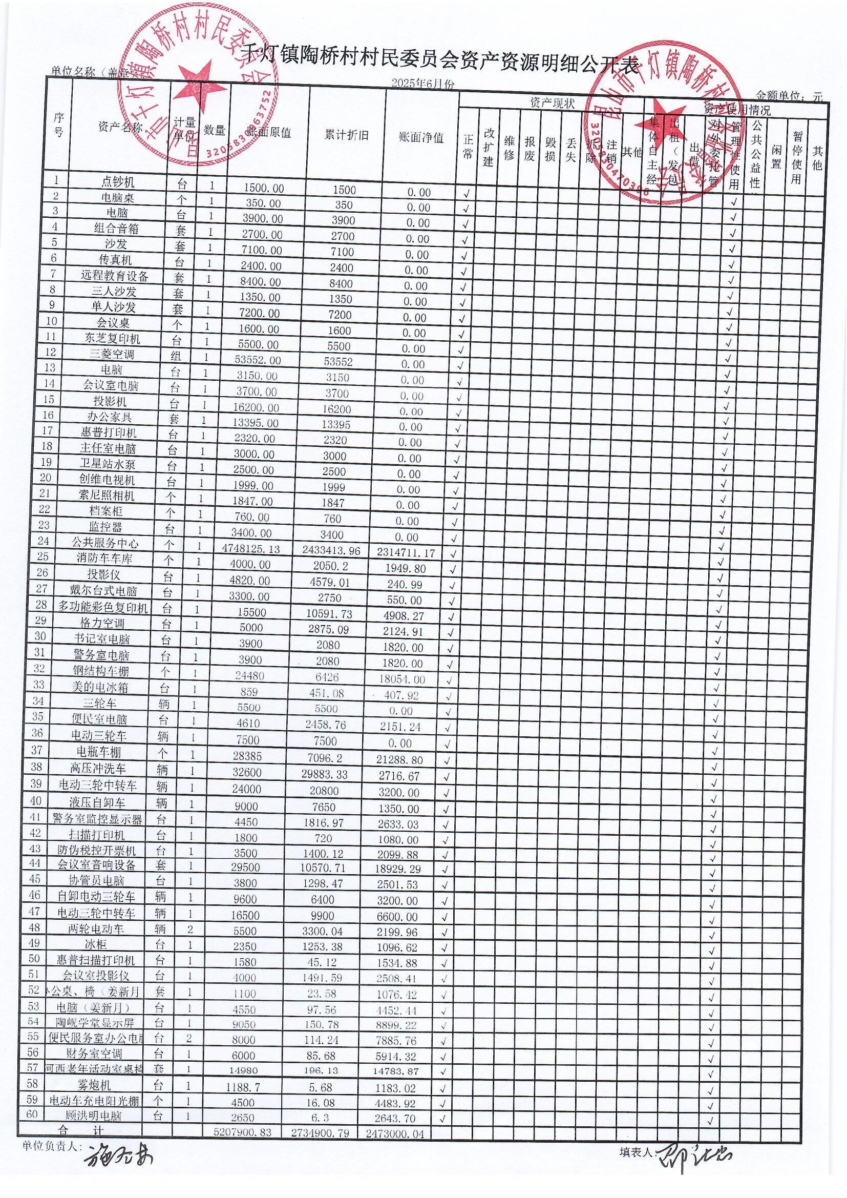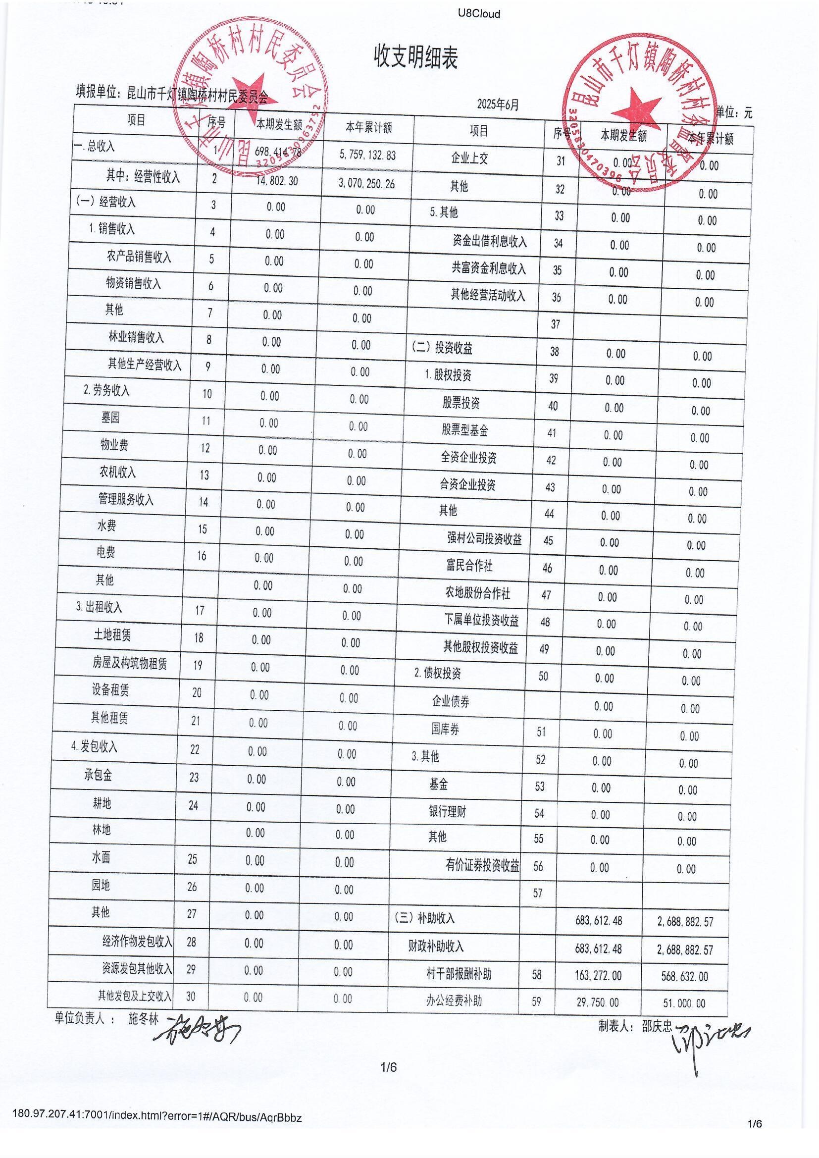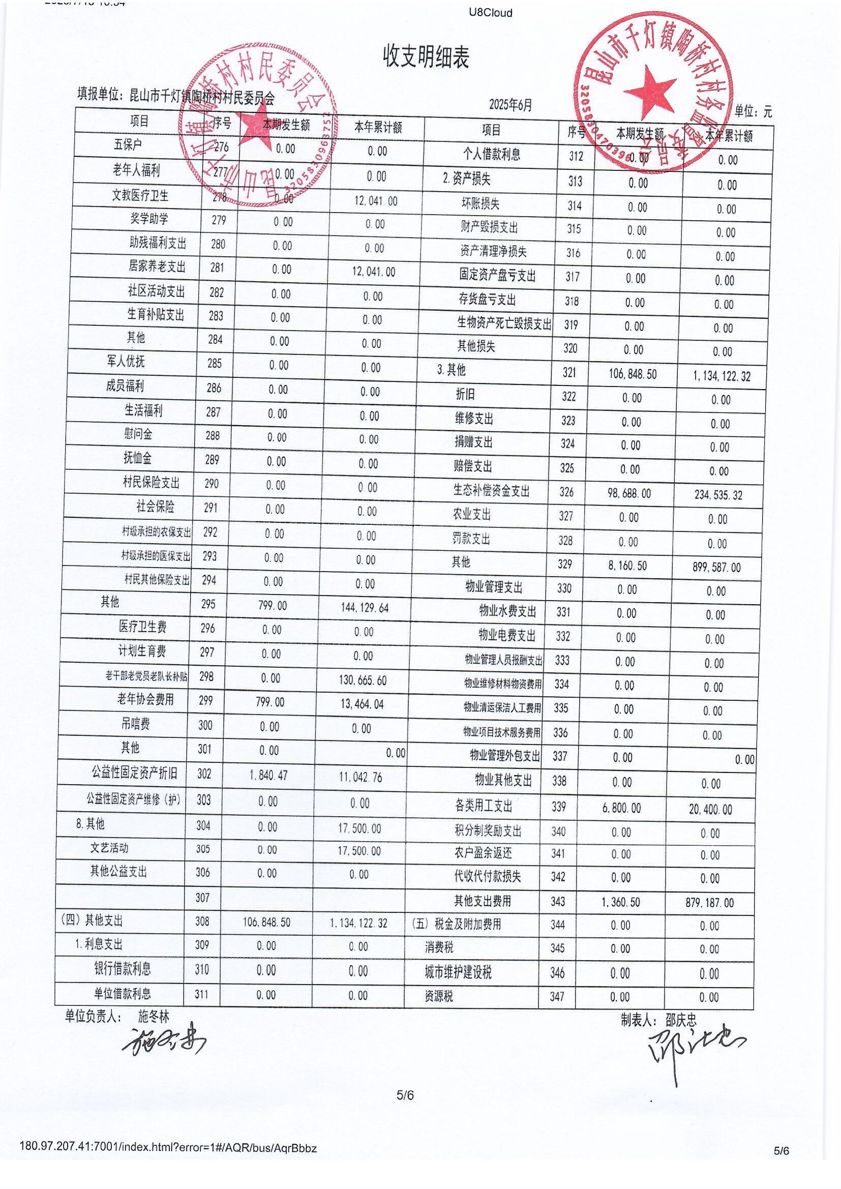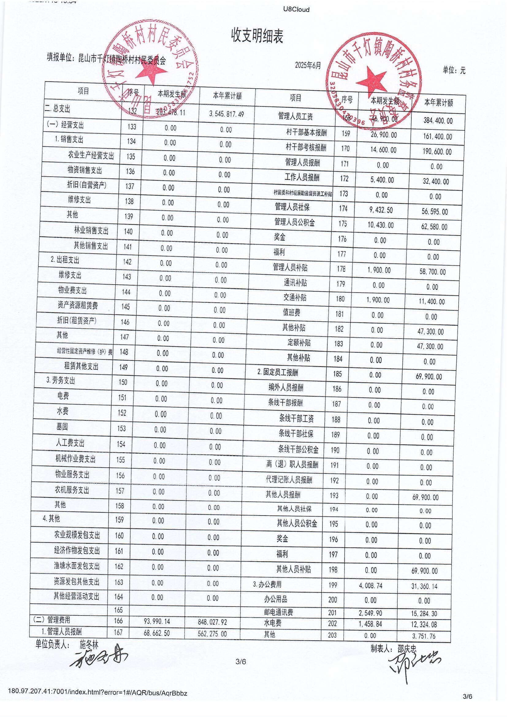 2025年6月份陶橋村村民委員會財務(wù)公開內(nèi)容:
