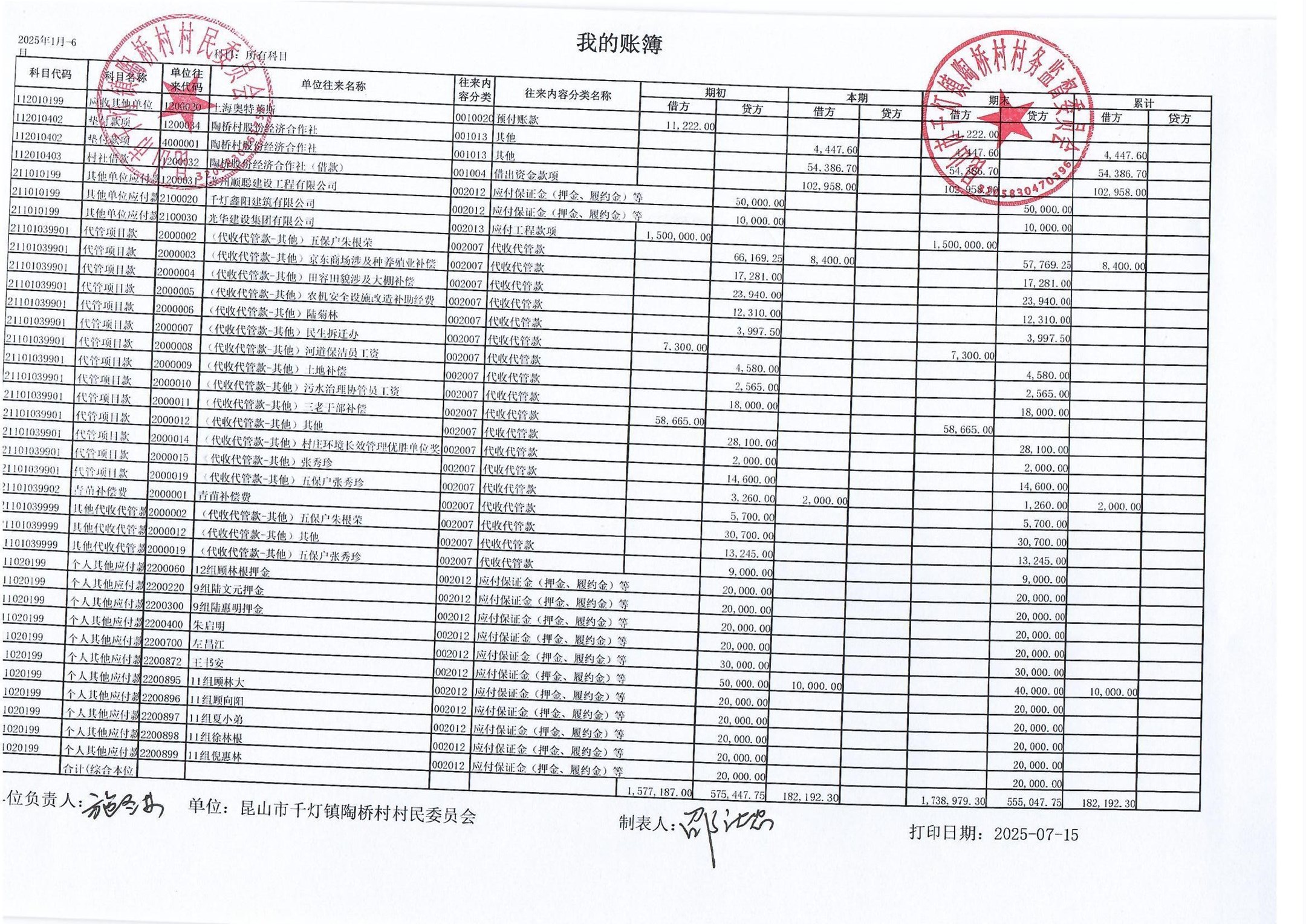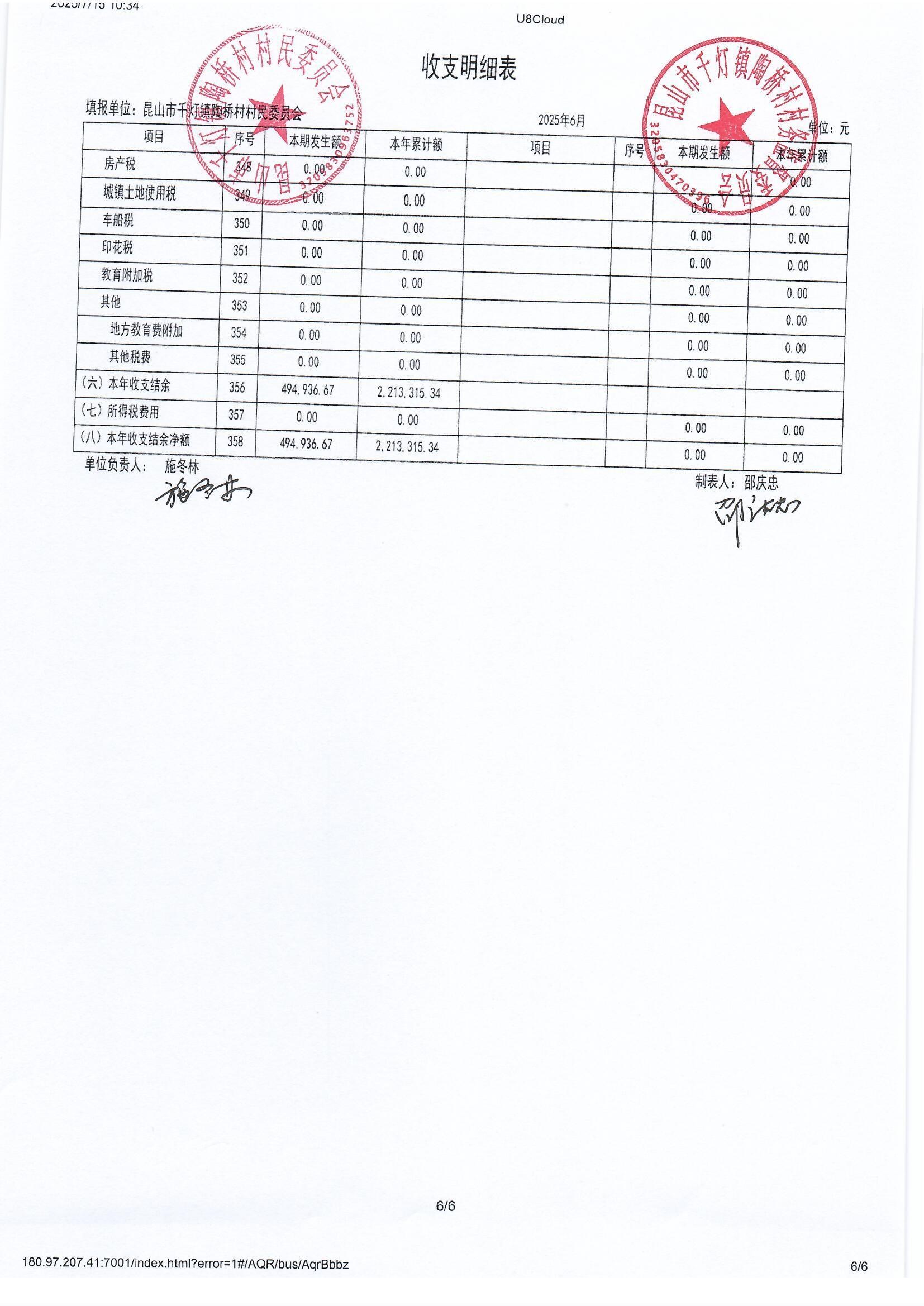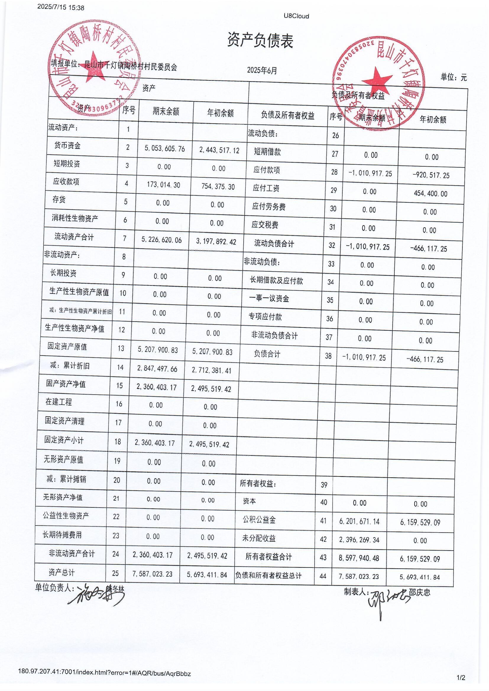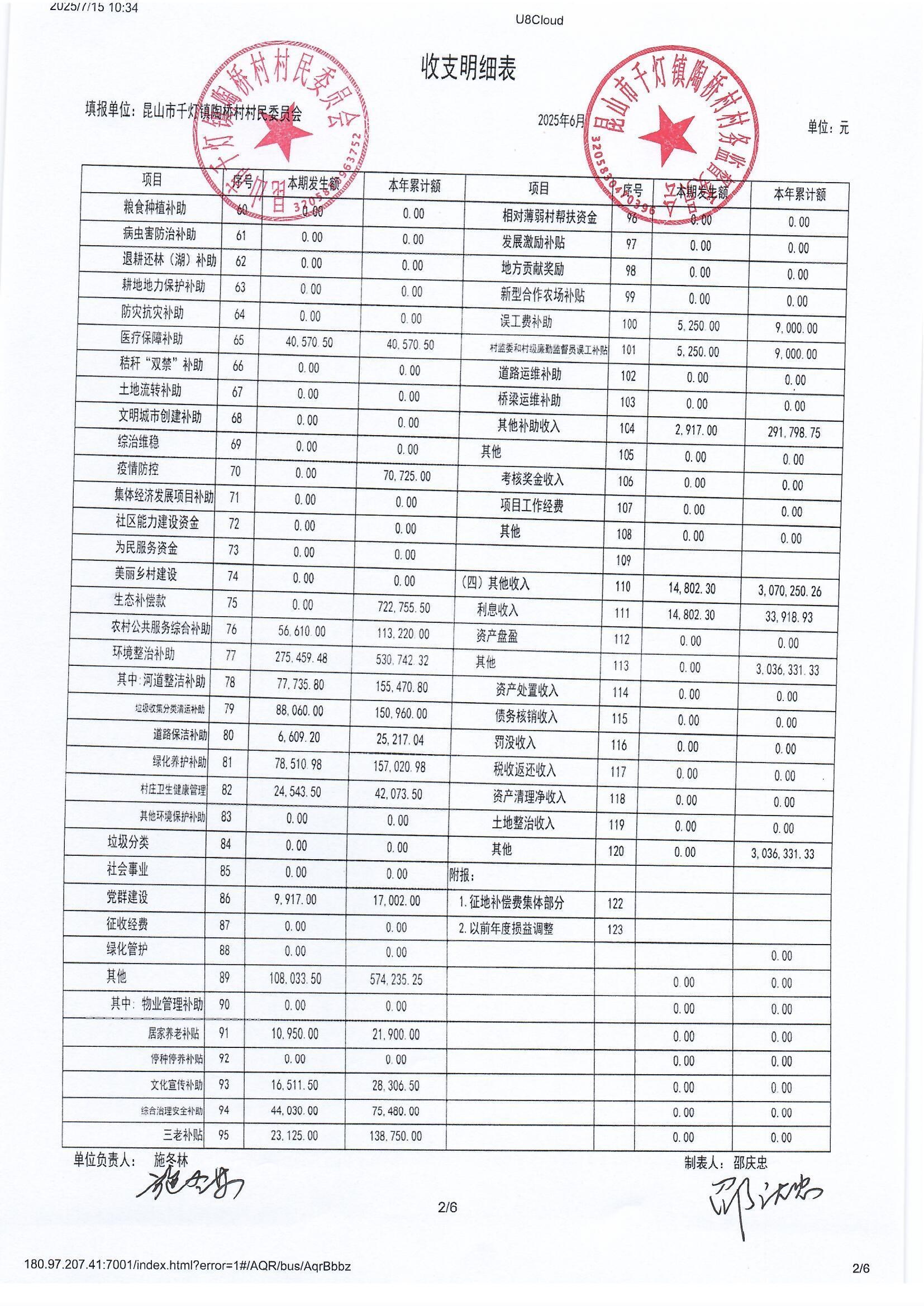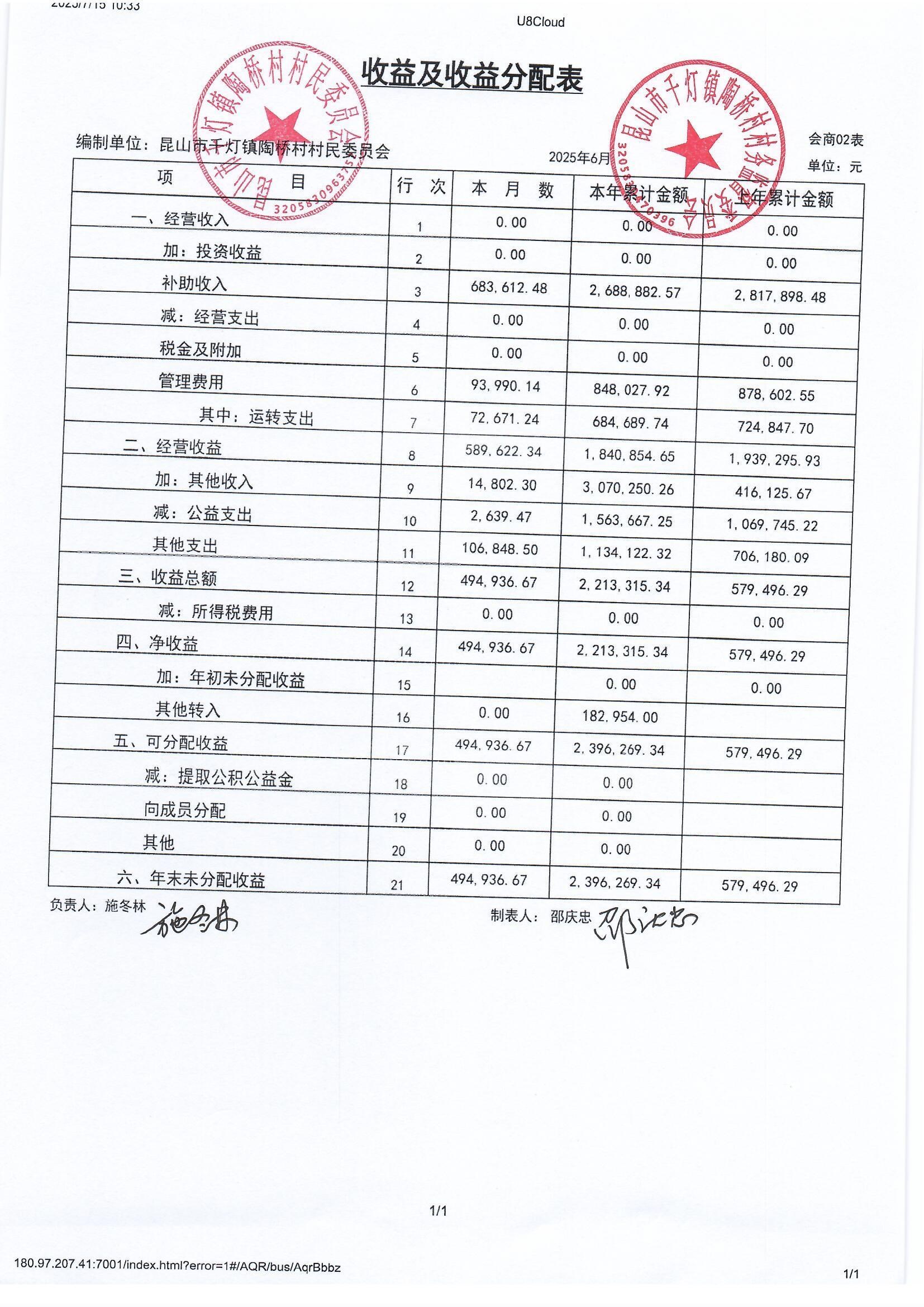 2025年6月份陶橋村村民委員會財務(wù)公開內(nèi)容: