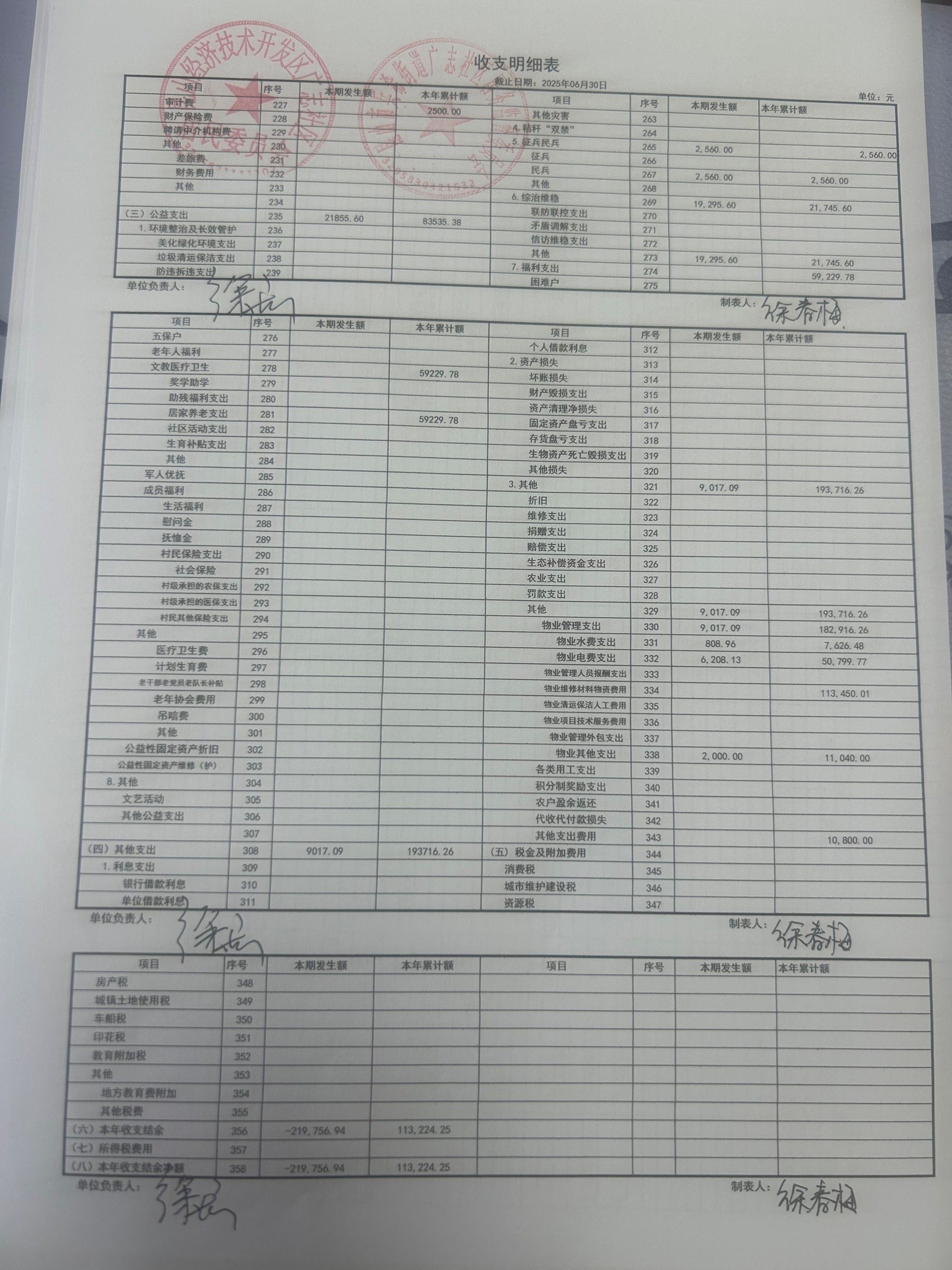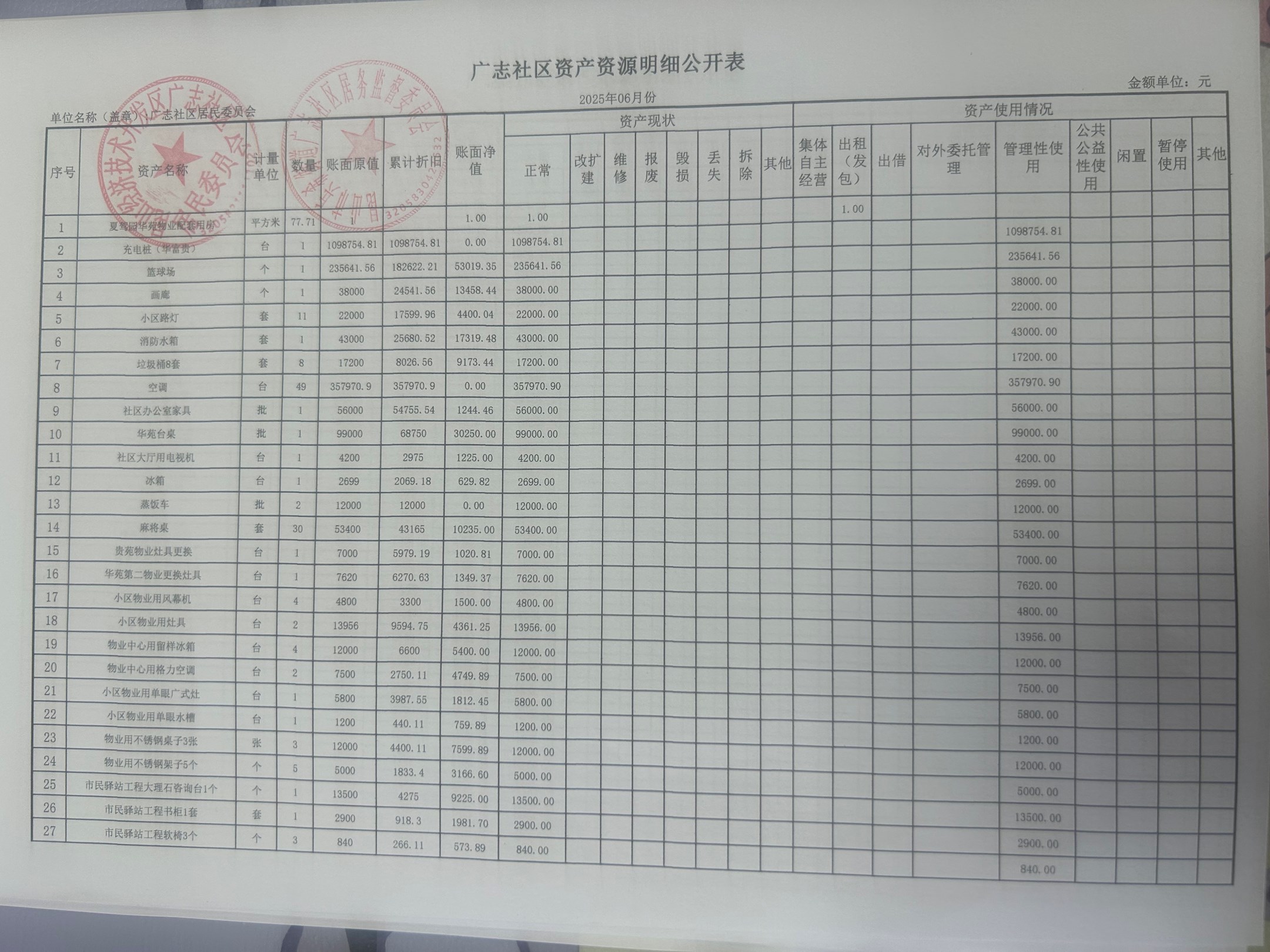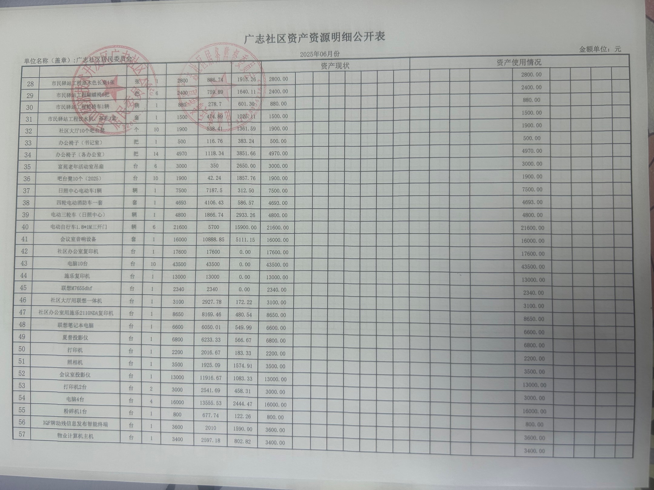 2025年6月份廣志社區(qū)財務公開資料