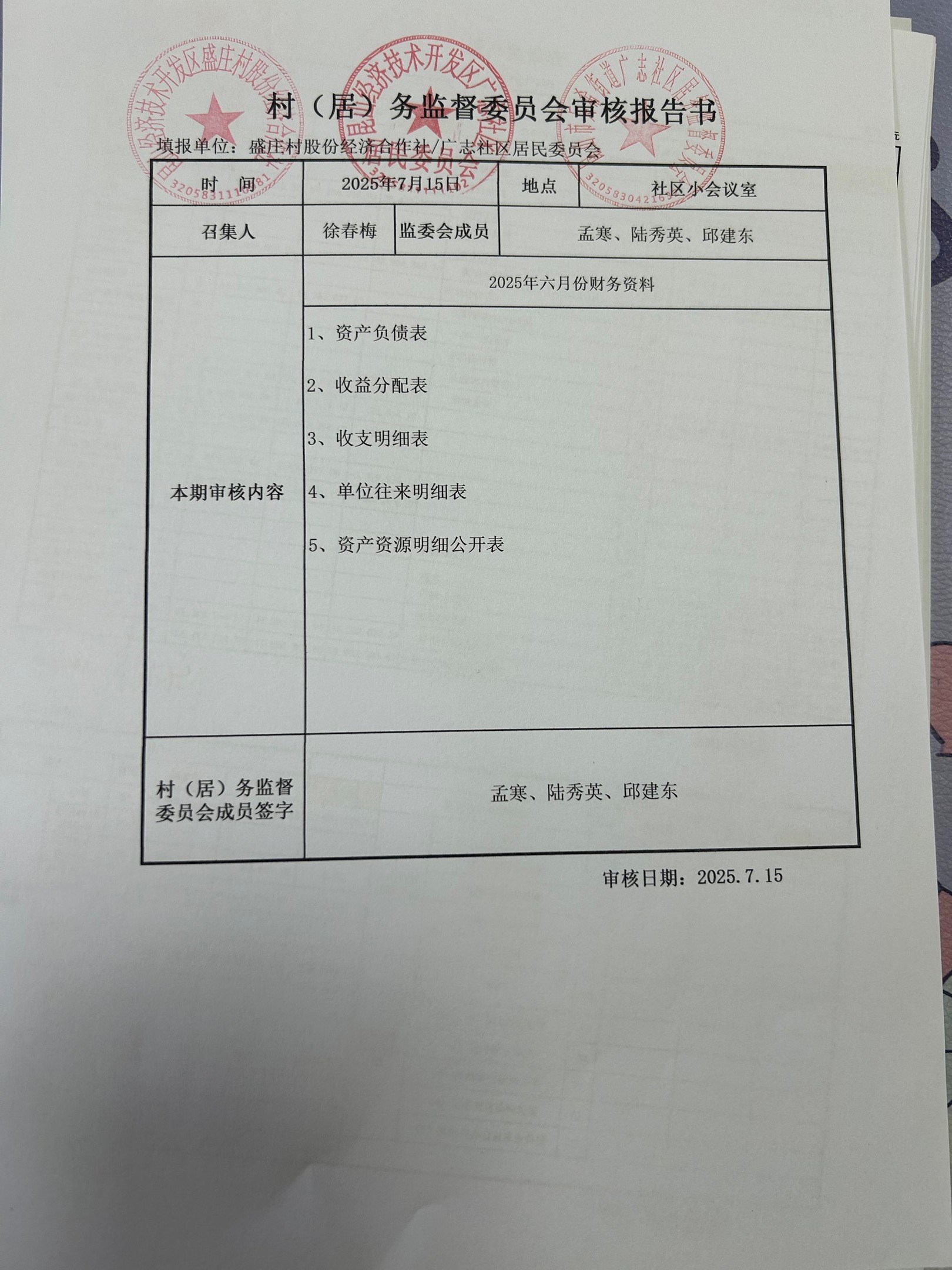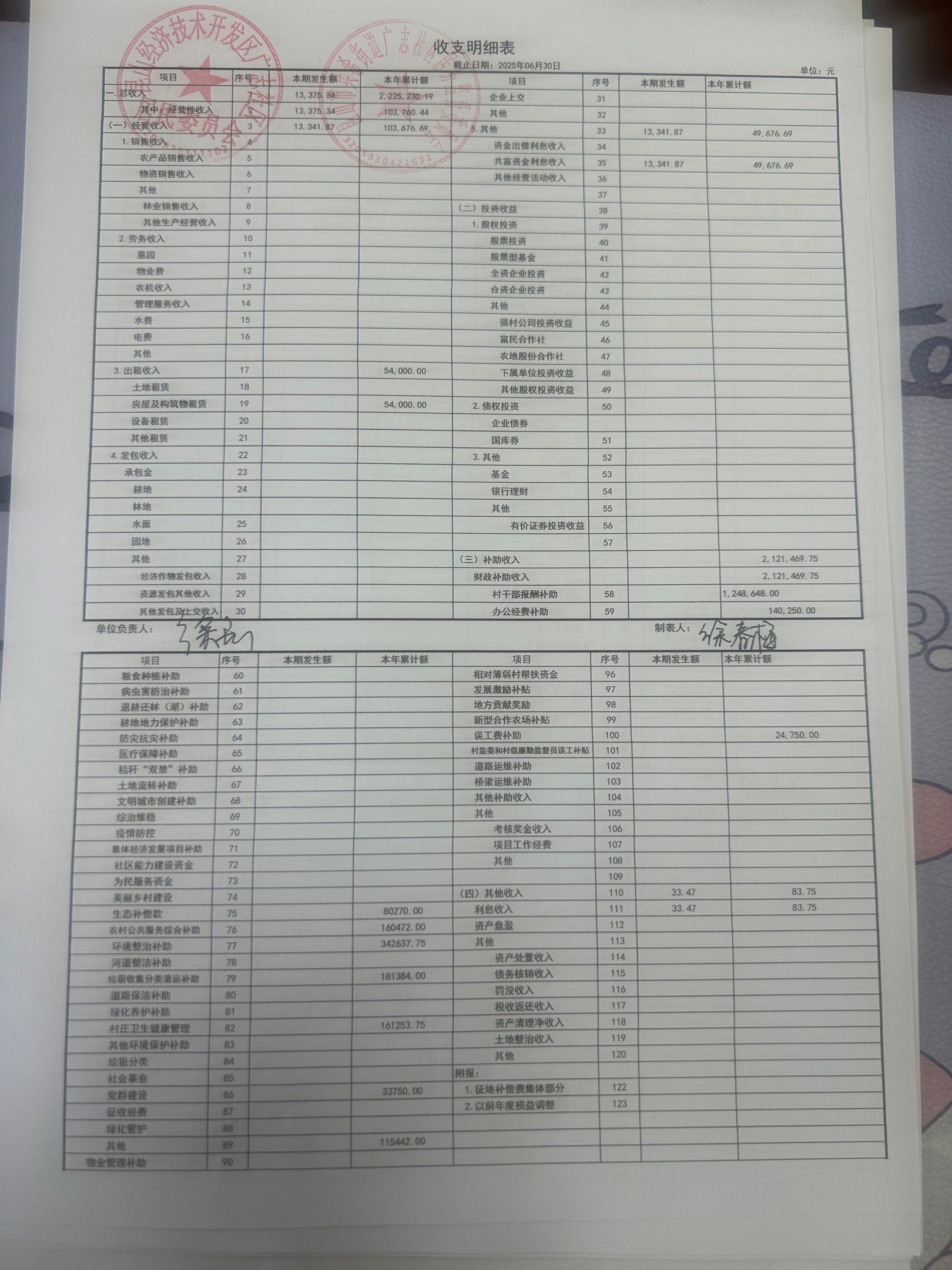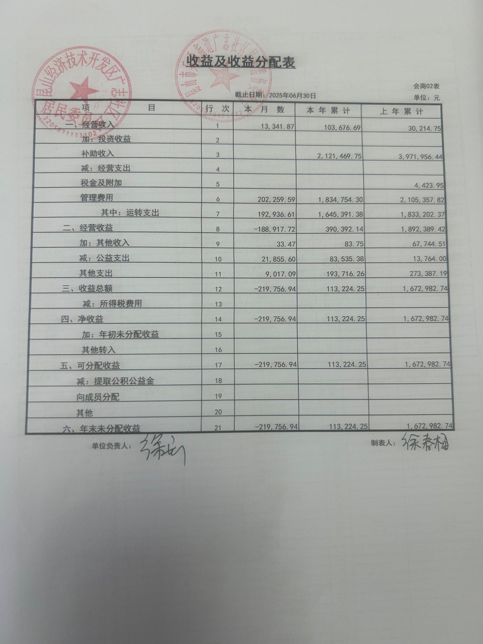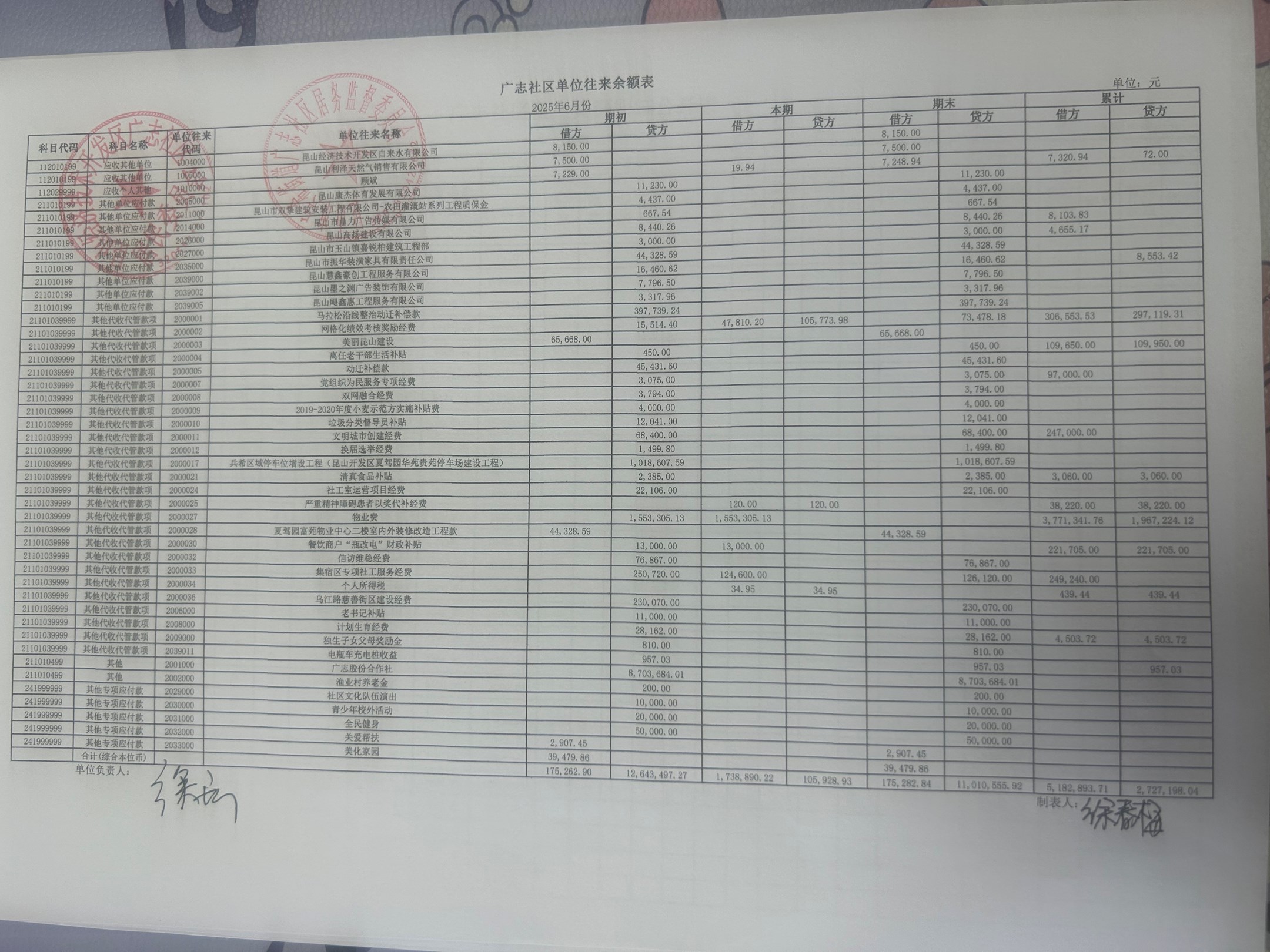 2025年6月份廣志社區(qū)財務公開資料