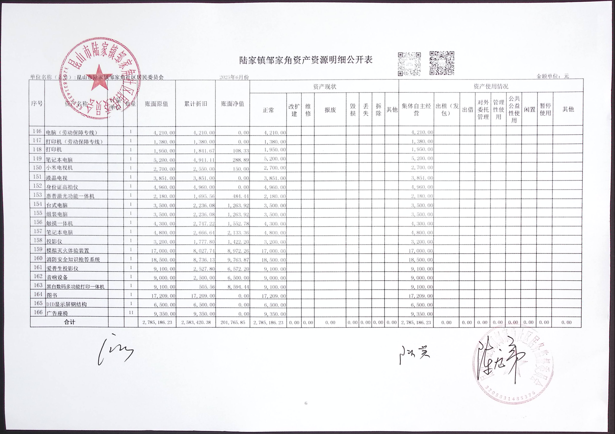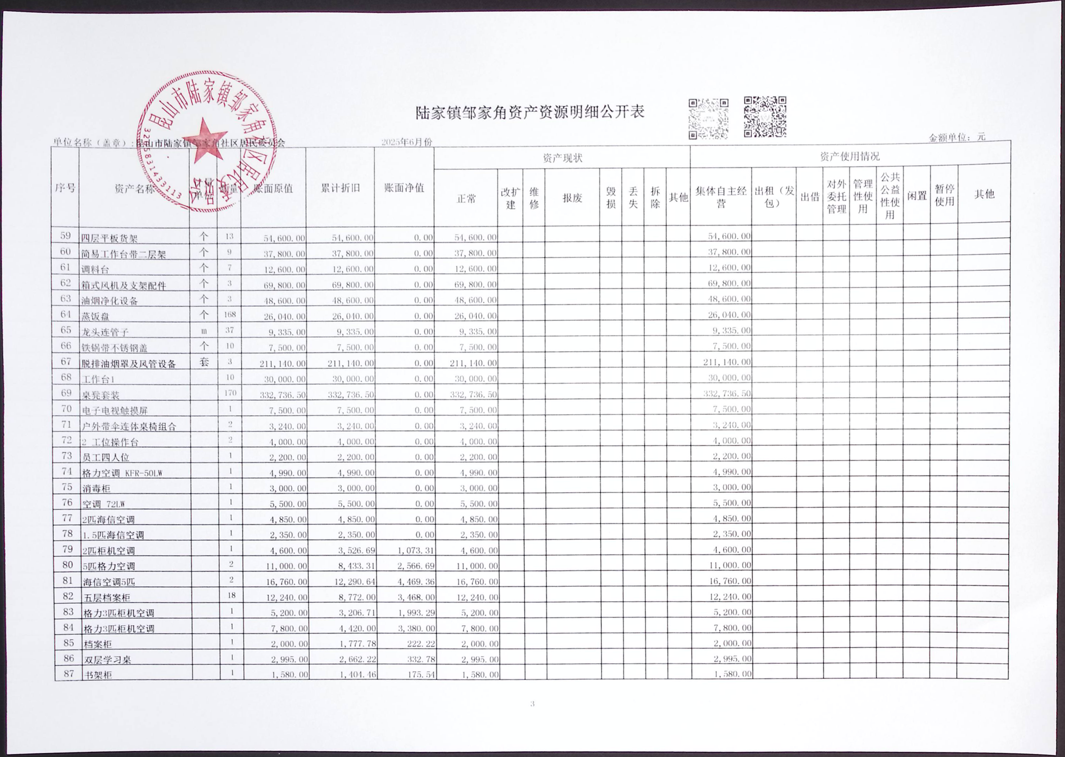 鄒家角社區(qū)居民委員會2025年6月份財務(wù)公開