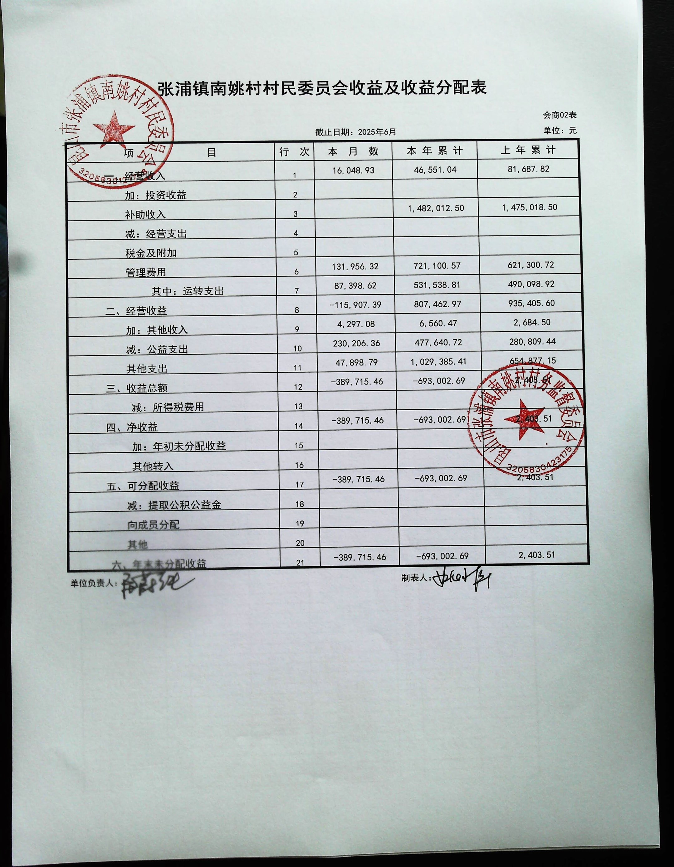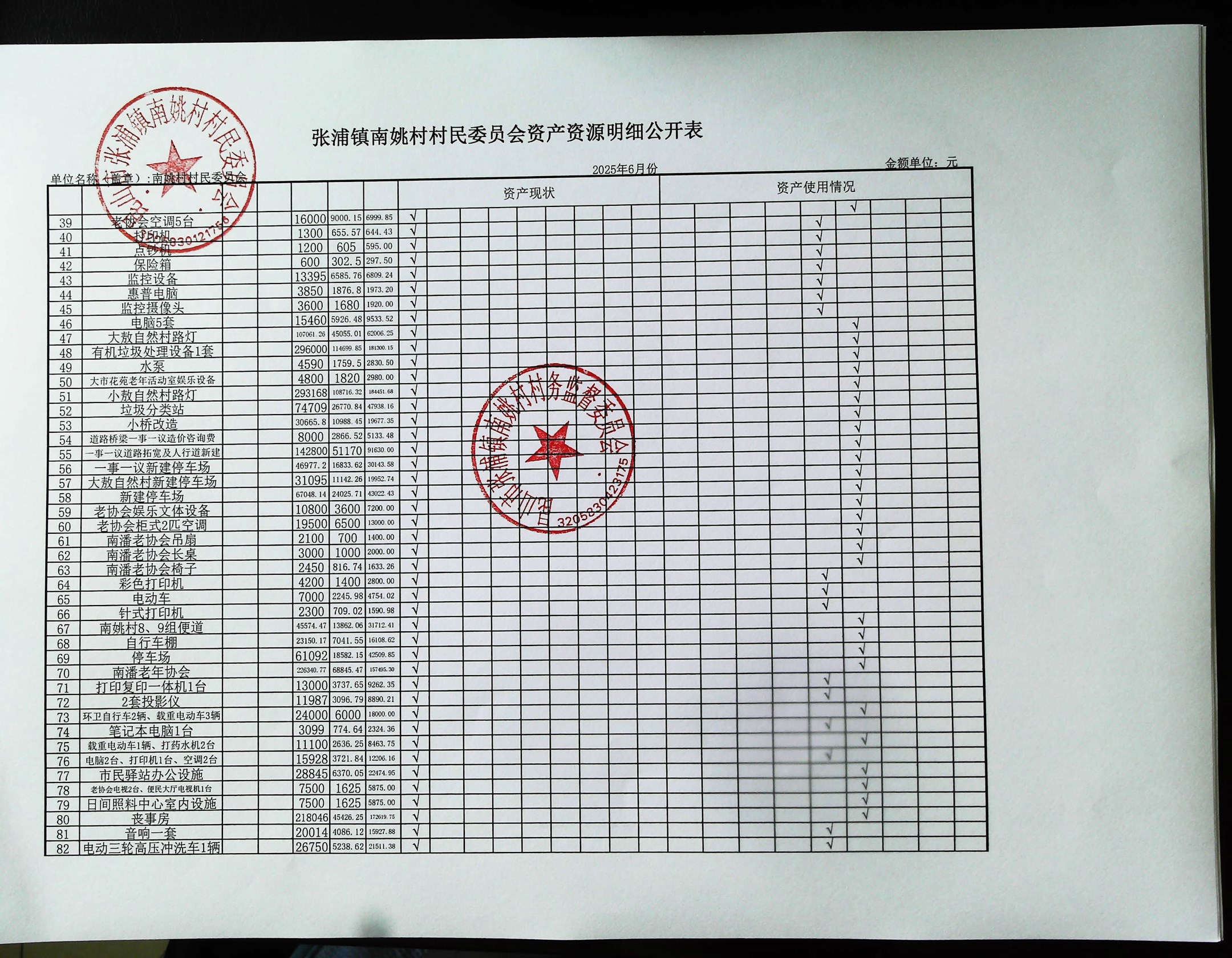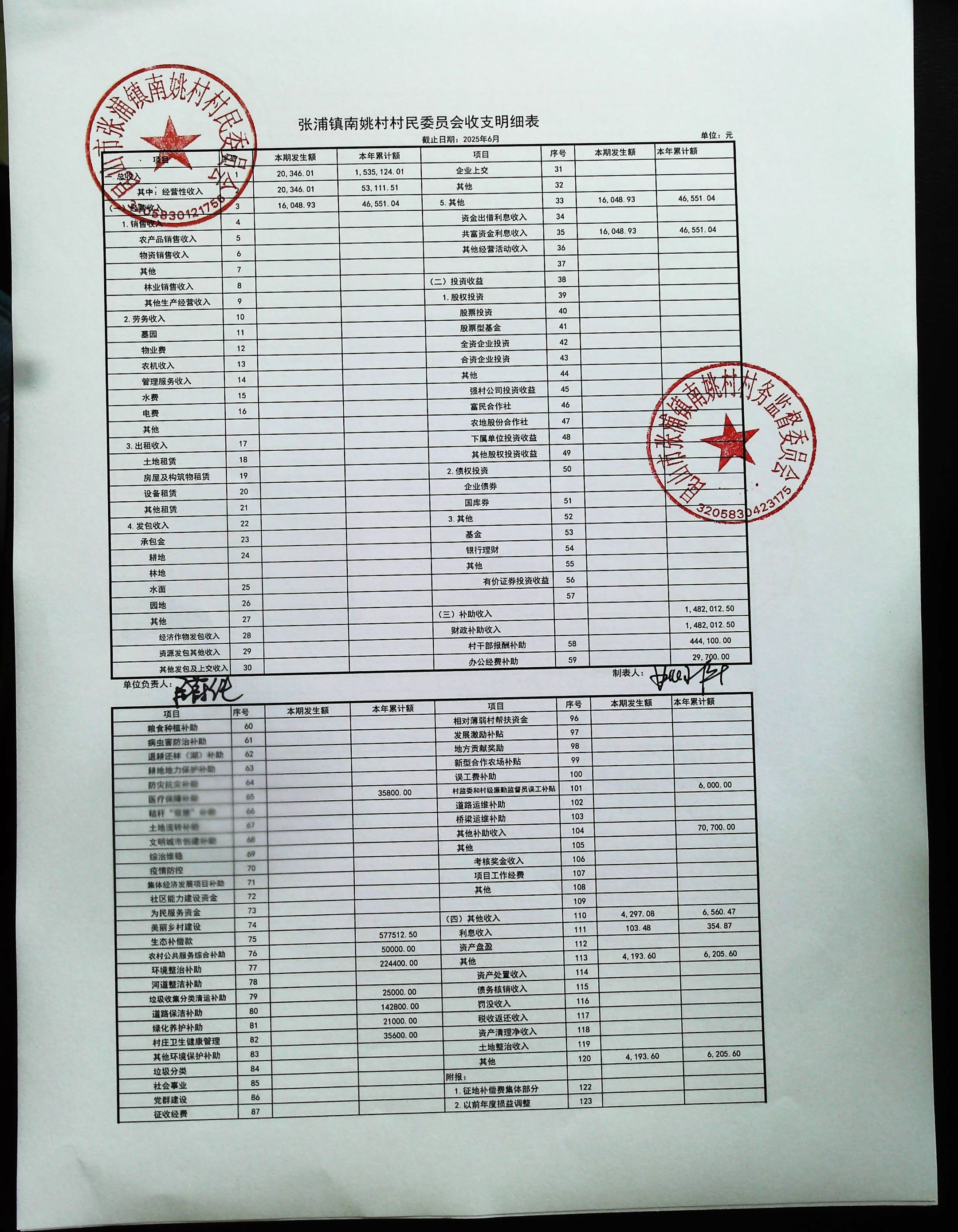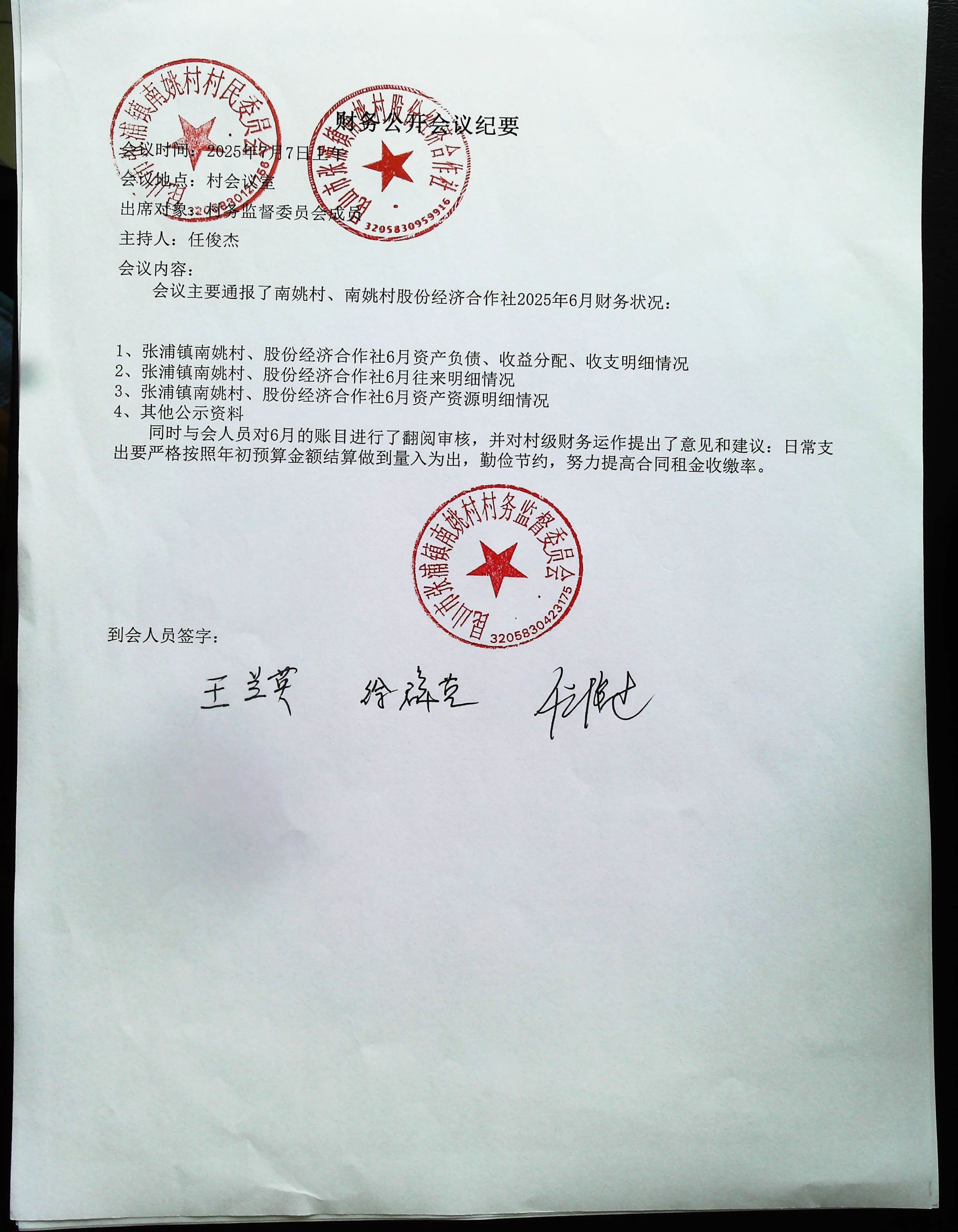 2025年6月南姚村財務(wù)公開