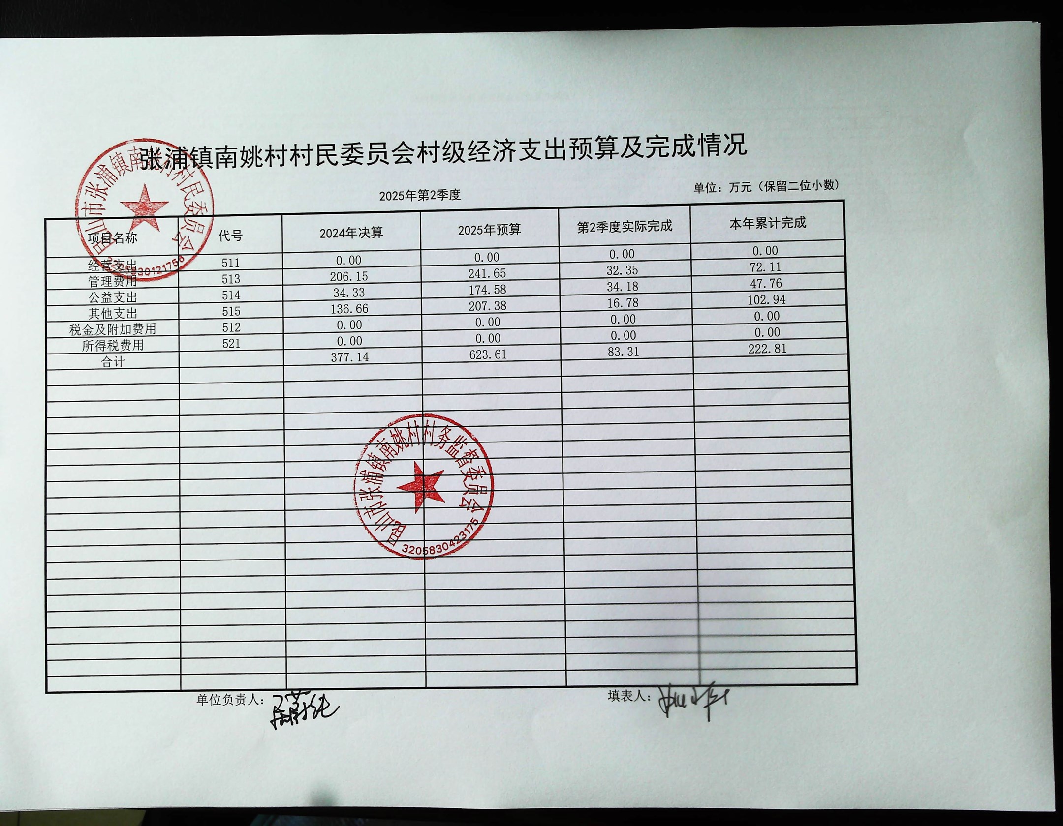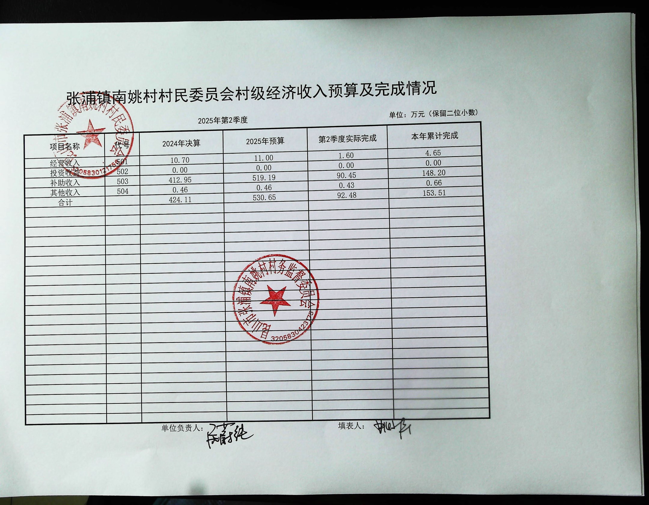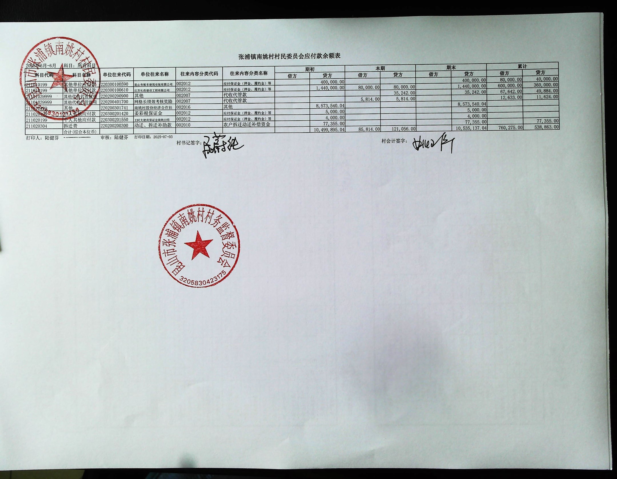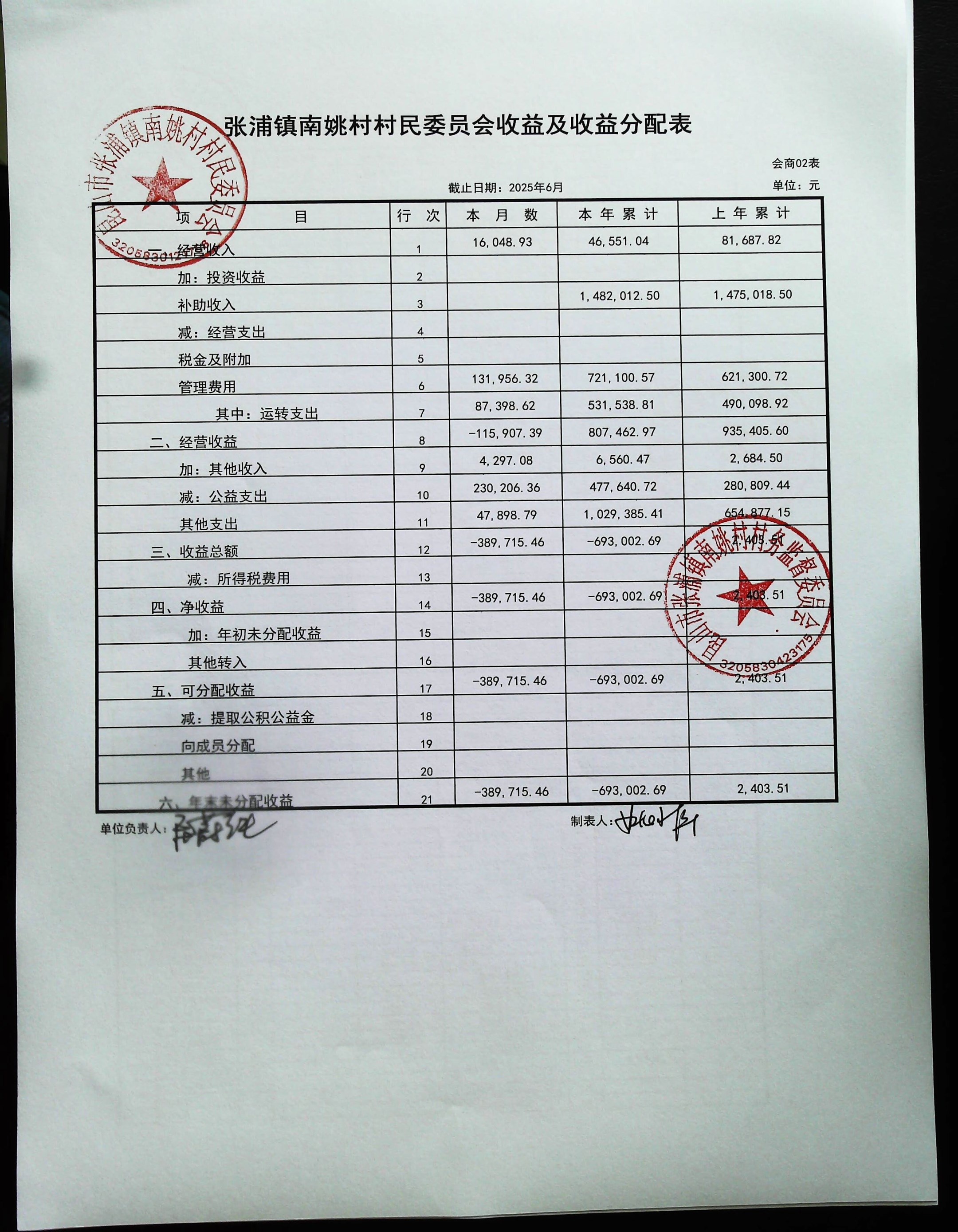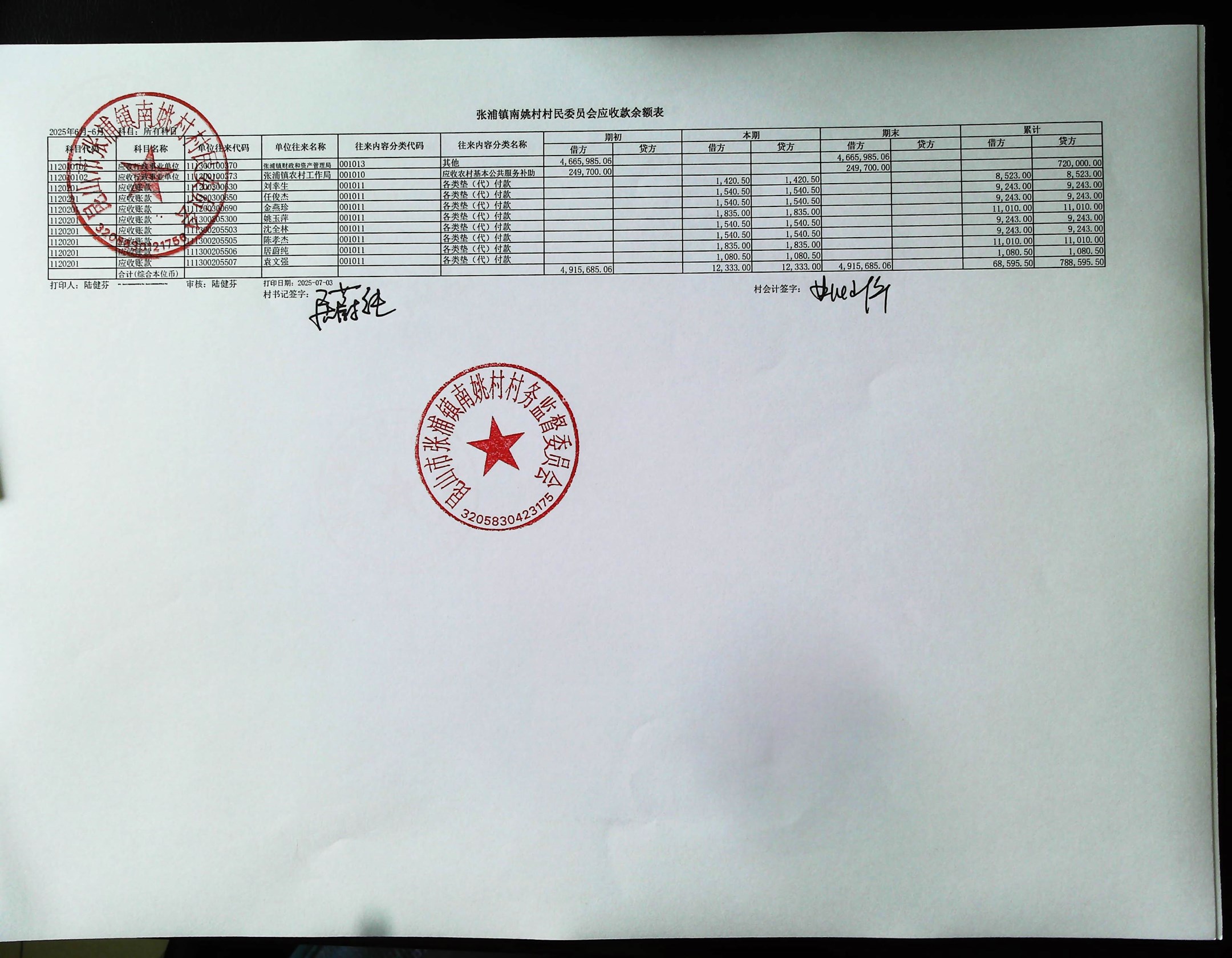 2025年6月南姚村財務(wù)公開