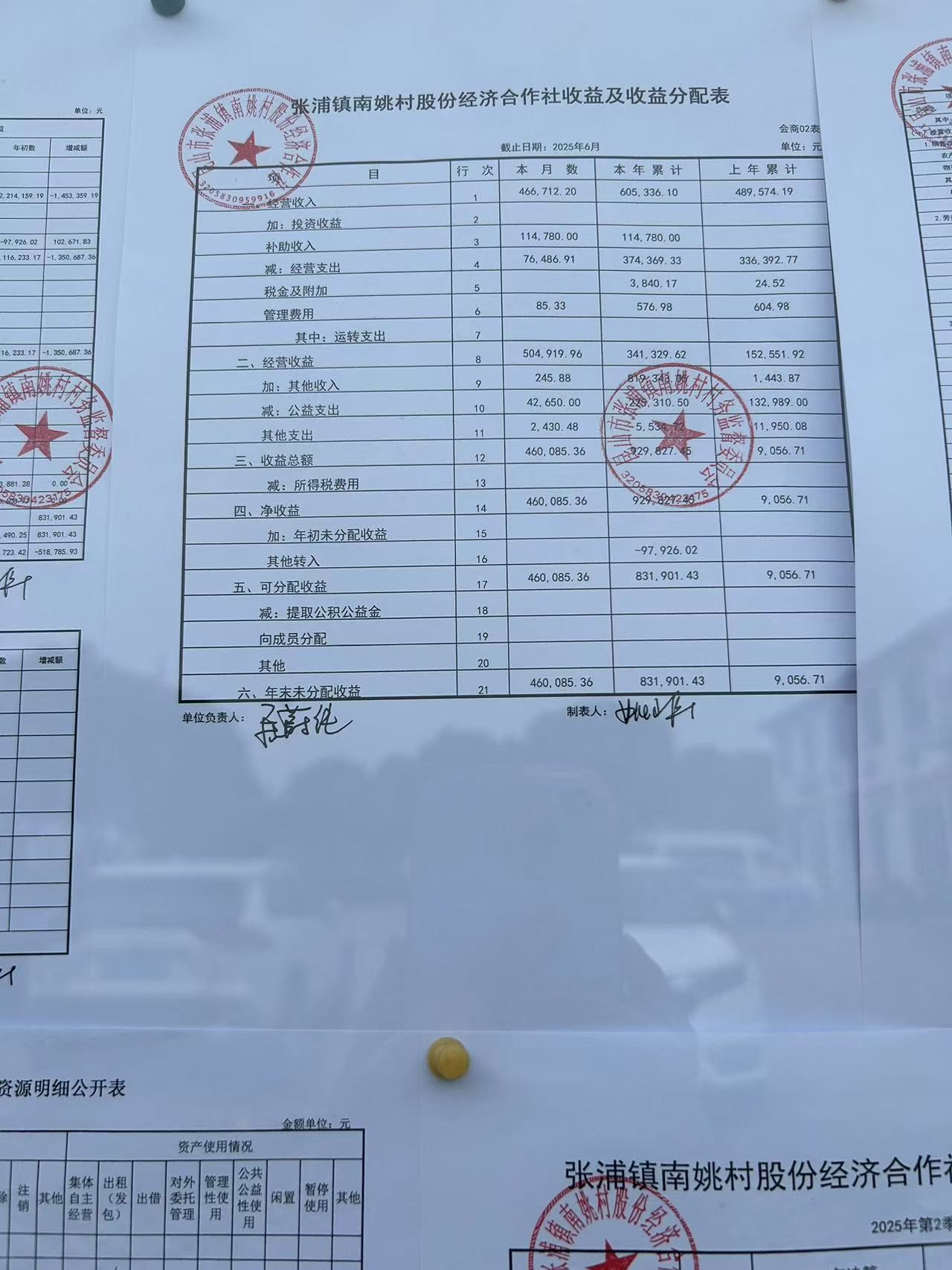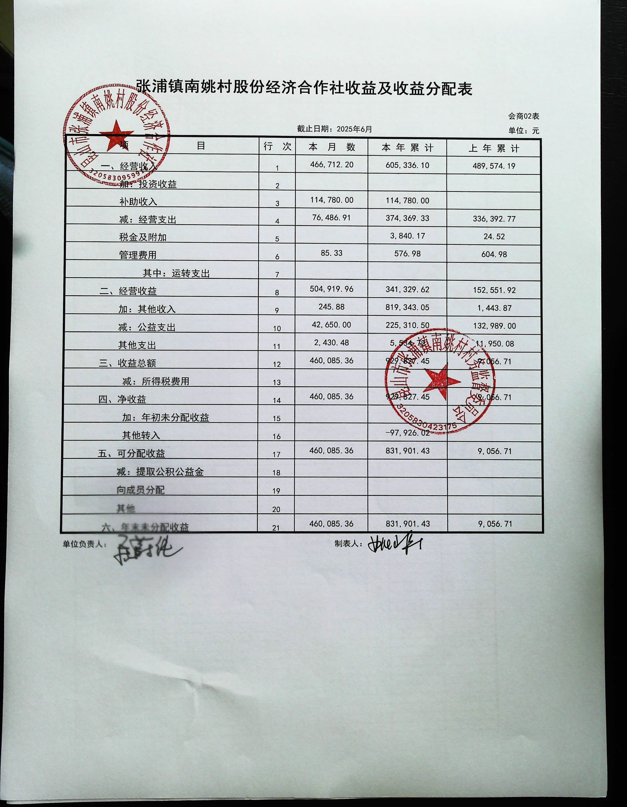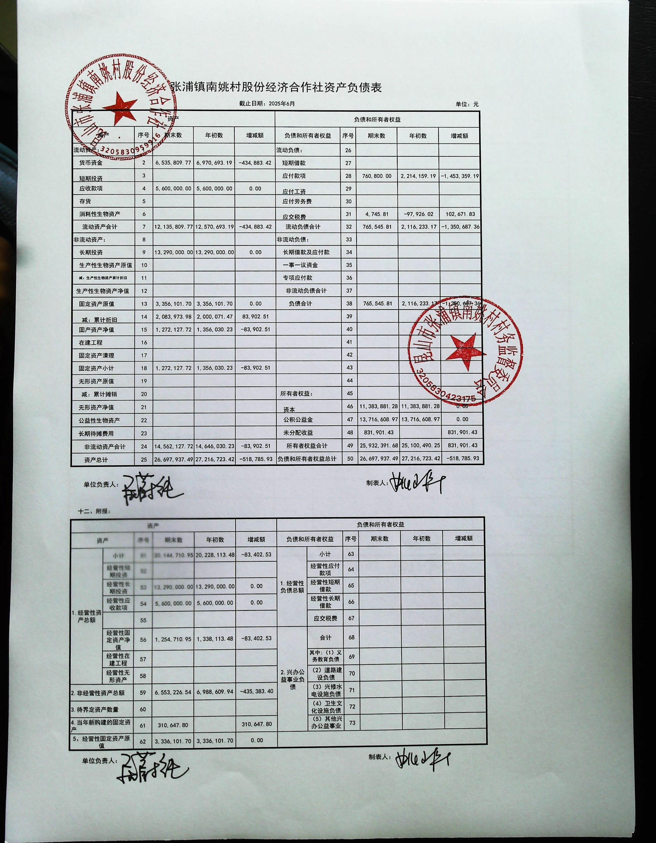 2025年6月南姚村股份經(jīng)濟(jì)財(cái)務(wù)公開