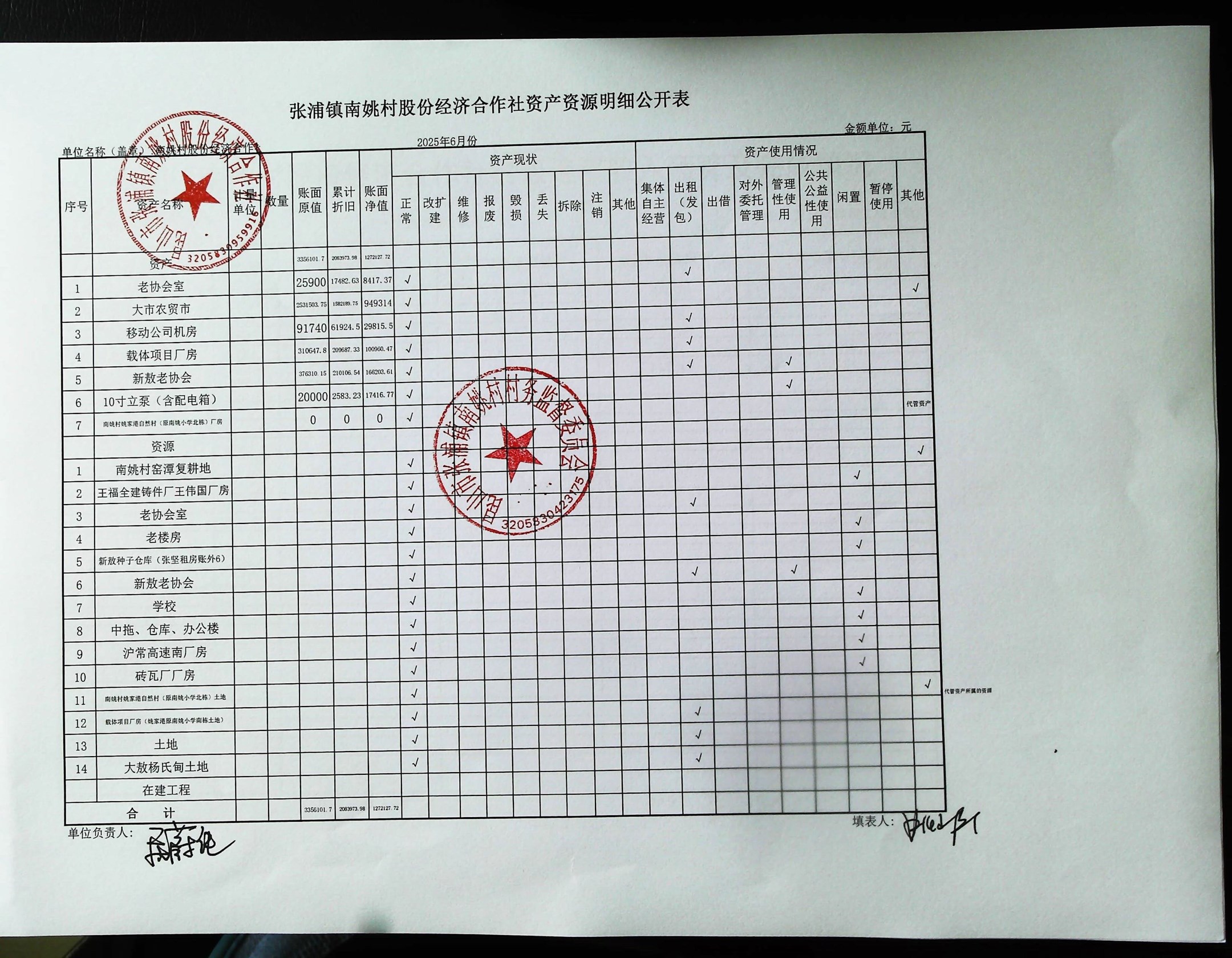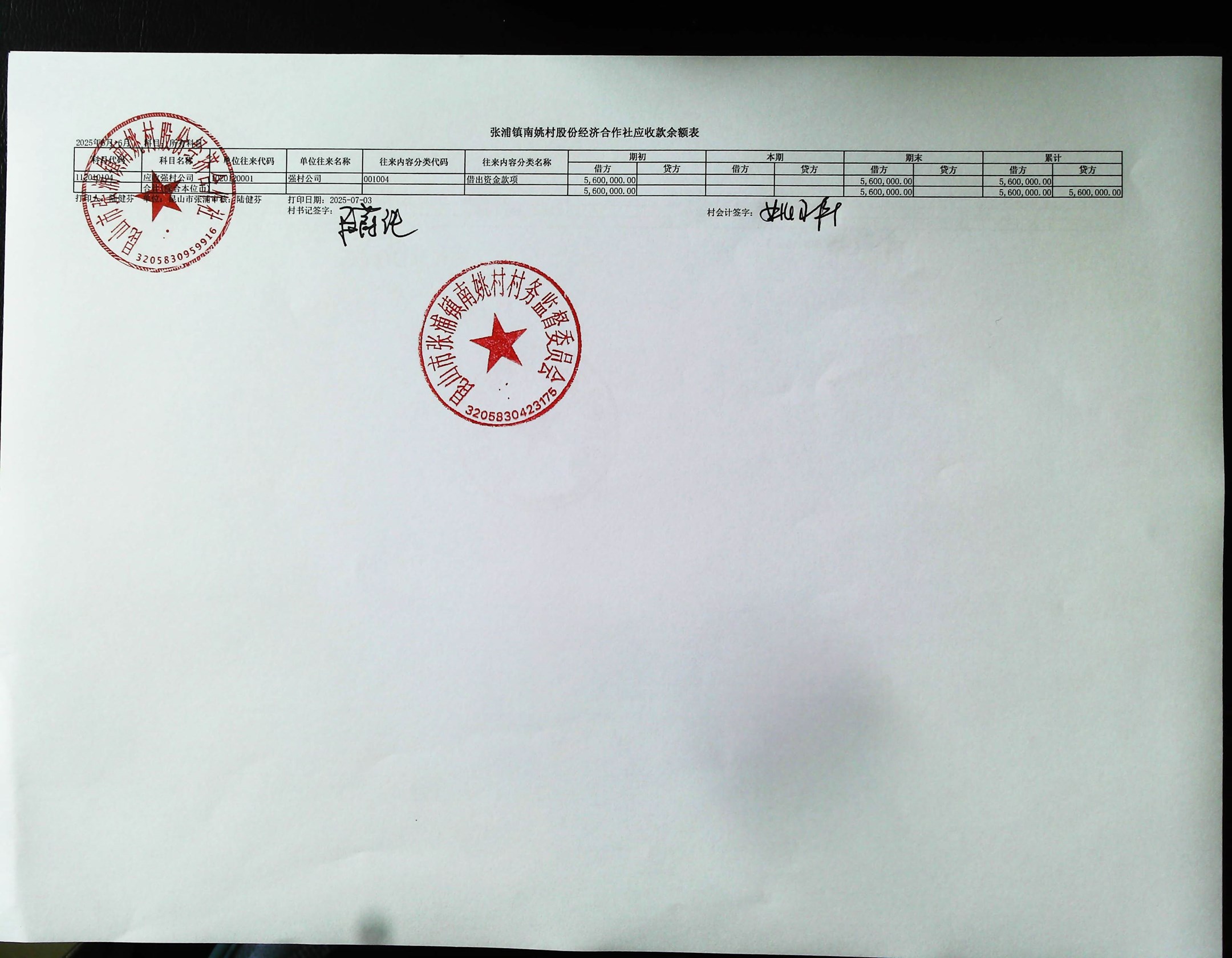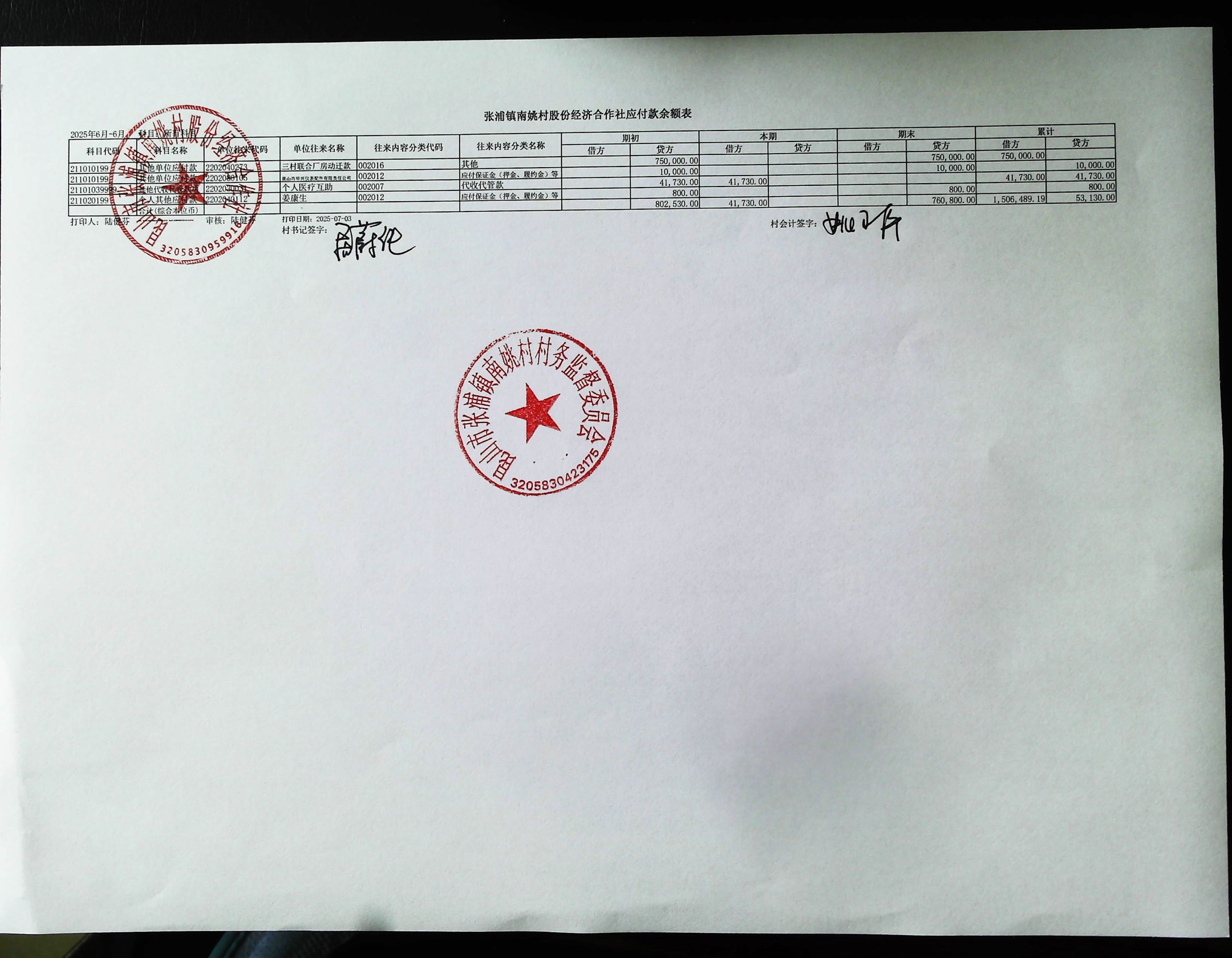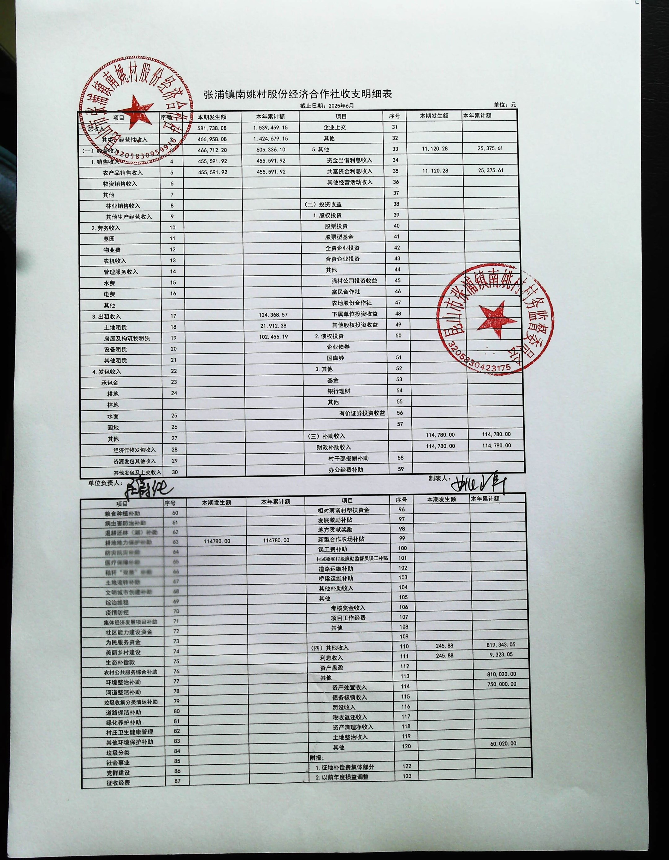 2025年6月南姚村股份經(jīng)濟(jì)財(cái)務(wù)公開