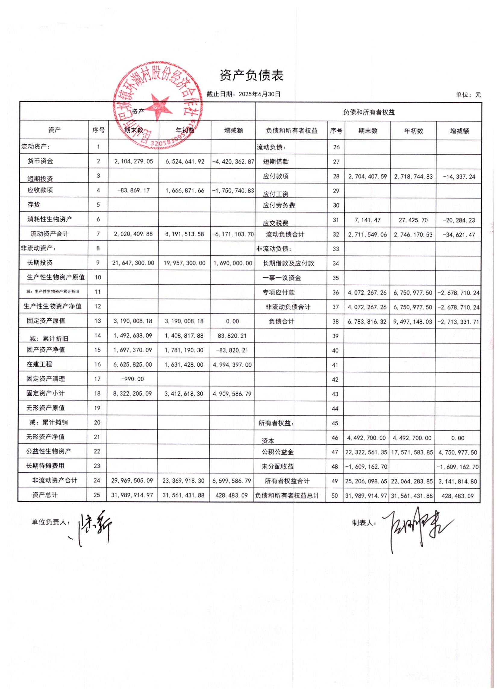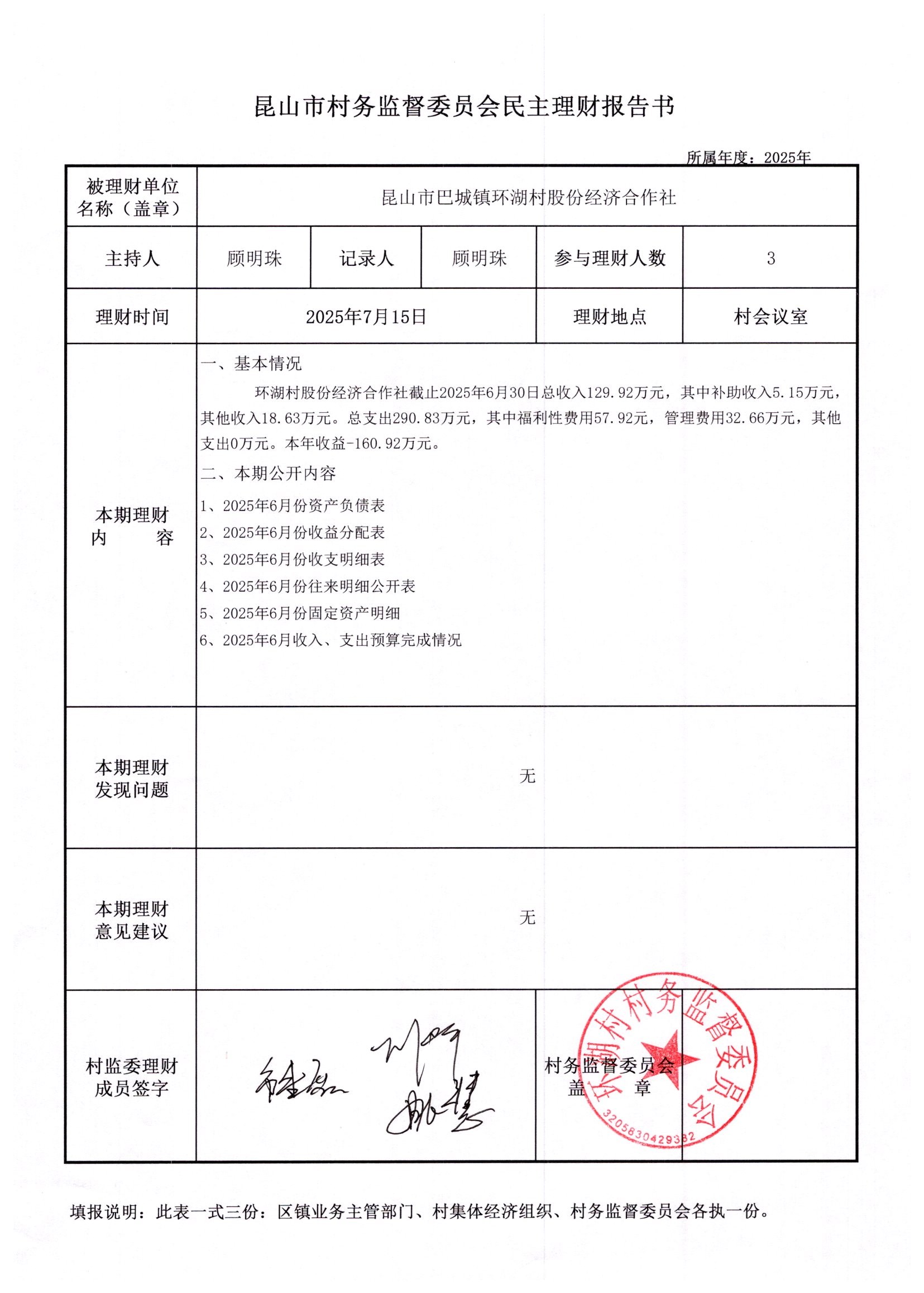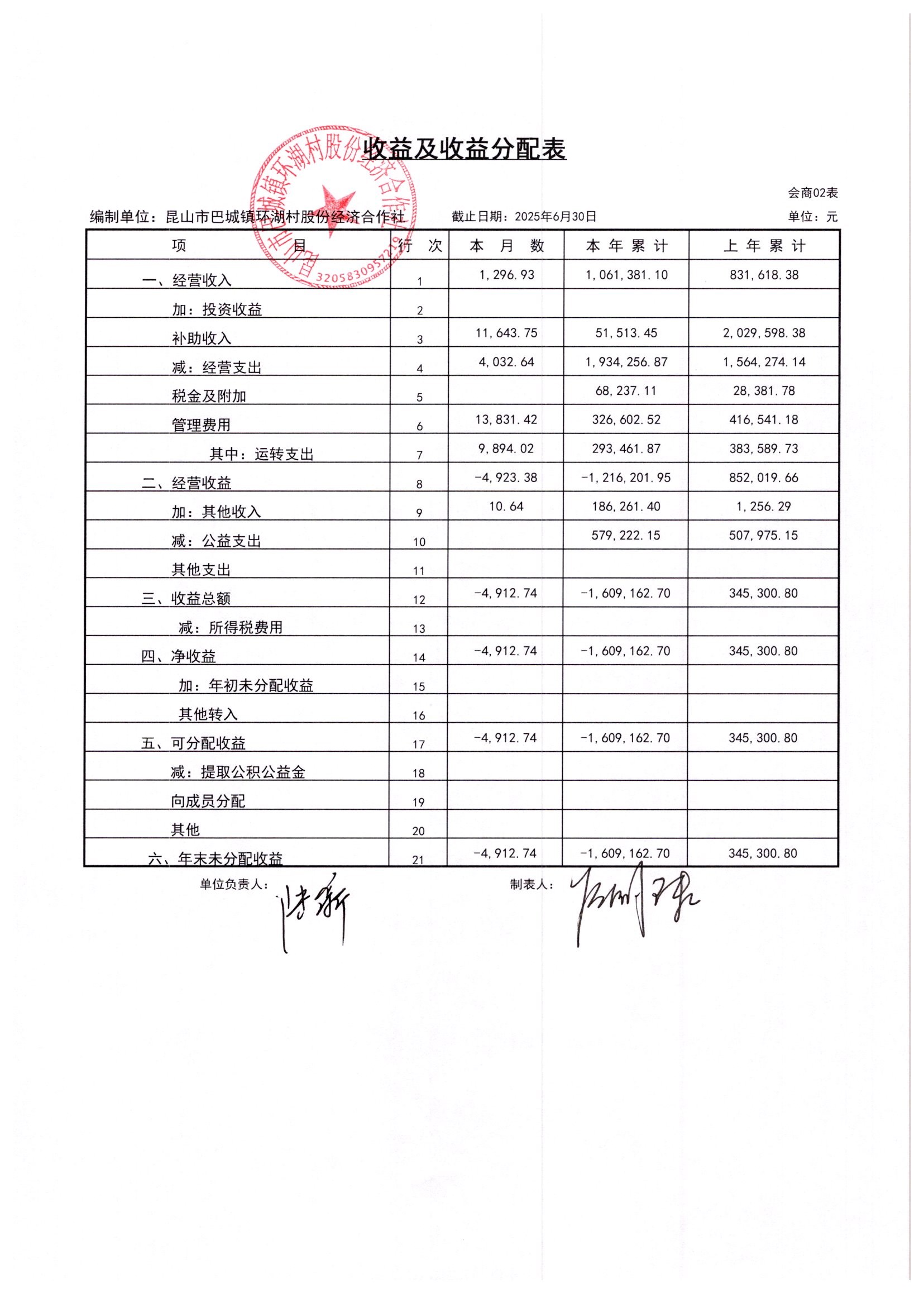 2025年6月環(huán)湖村股份經(jīng)濟(jì)合作社財(cái)務(wù)公開(kāi)