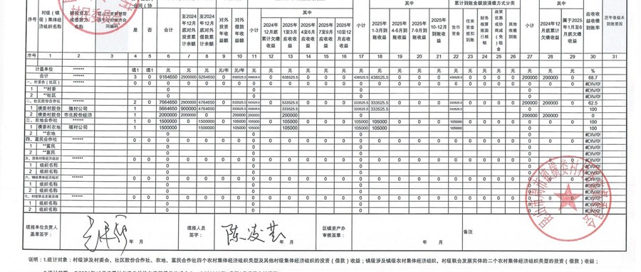 2025年4~6月農(nóng)村集體資產(chǎn)經(jīng)濟合同收繳進度調(diào)查表